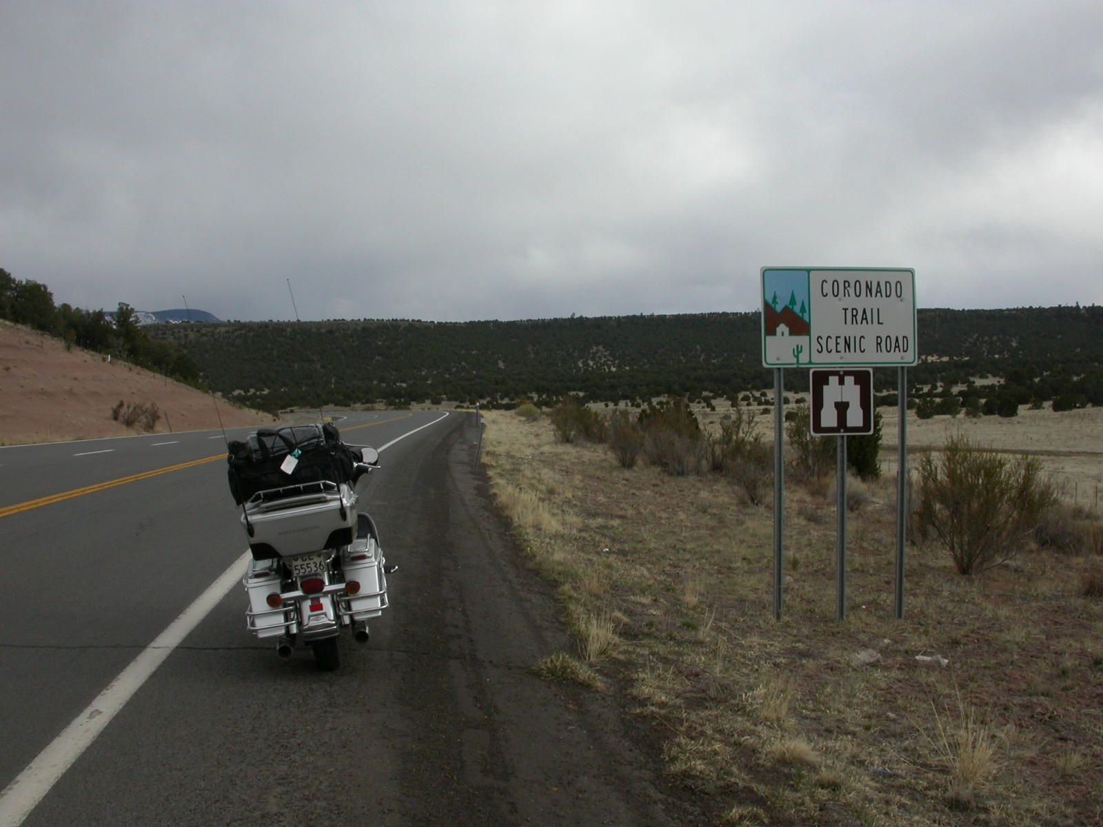 Über Globe erreichte ich anschliessend das Apache Indianer Reservat, welches ich durchqueren musste, um nach Eager, dem Ausgangspunkt des Coronado Trails zu gelangen. Dieser Abschnitt des Trails zwischen Eager und Morenci (HW 191) ist ca 200 Kilometer lang und führt in Nord- / Südrichtung durch den Apache Sitgreaves National Forest auf einer einsamen kurvenreichen Strasse. Hier verliess mich mein Wetterglück, welches ich vermutlich in den letzten vier Wochen zu stark strapaziert hatte, denn es schlug um und ich kam sogar noch mit Schnee in Berührung.