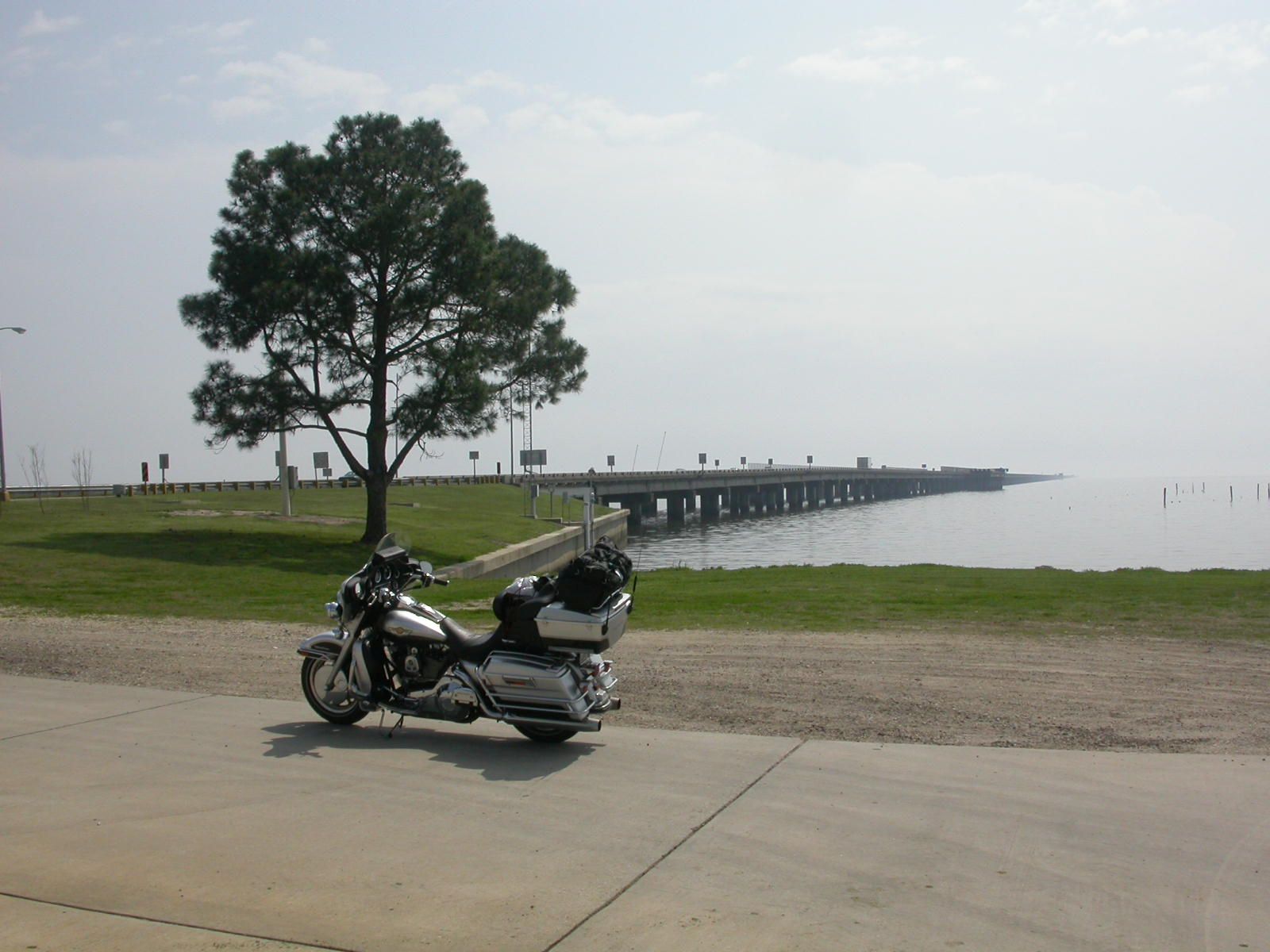Am nächsten Tag war der Mississippi mein ständiger Begleiter. Beim Harley Händler in Baton Rouge fand ich die in Daytona gesehene 100th Anniversary Lederjacke in mener Grösse. Eine ca. 40 Kilometer lange Brücke, die den Lake Pontchartrain überquert, führte mich bei beginnendem Regen nach New Orleans. Meine E-Glide benötigte schon wieder einen Service und so brachte ich sie zum lokalen Händler.