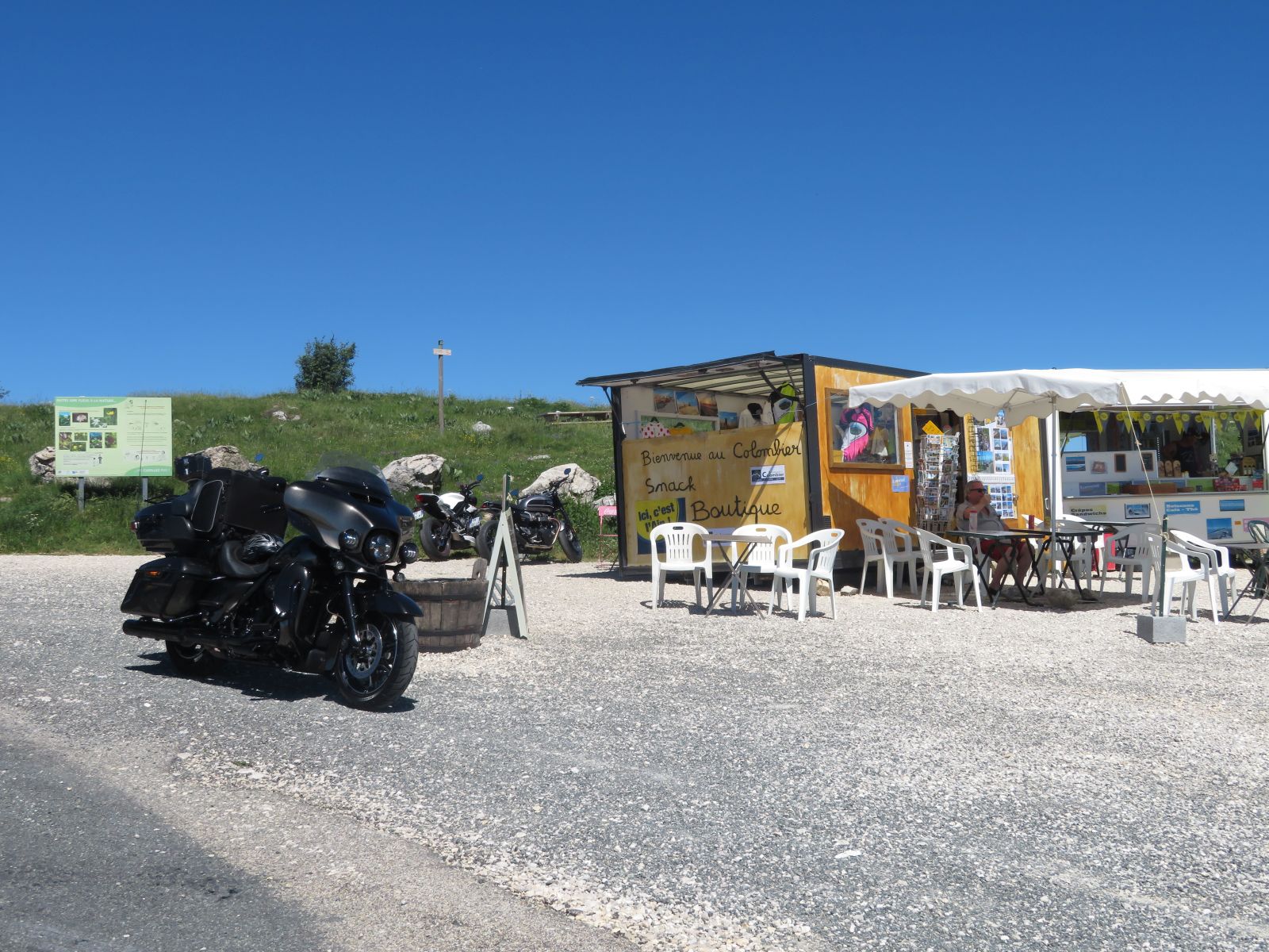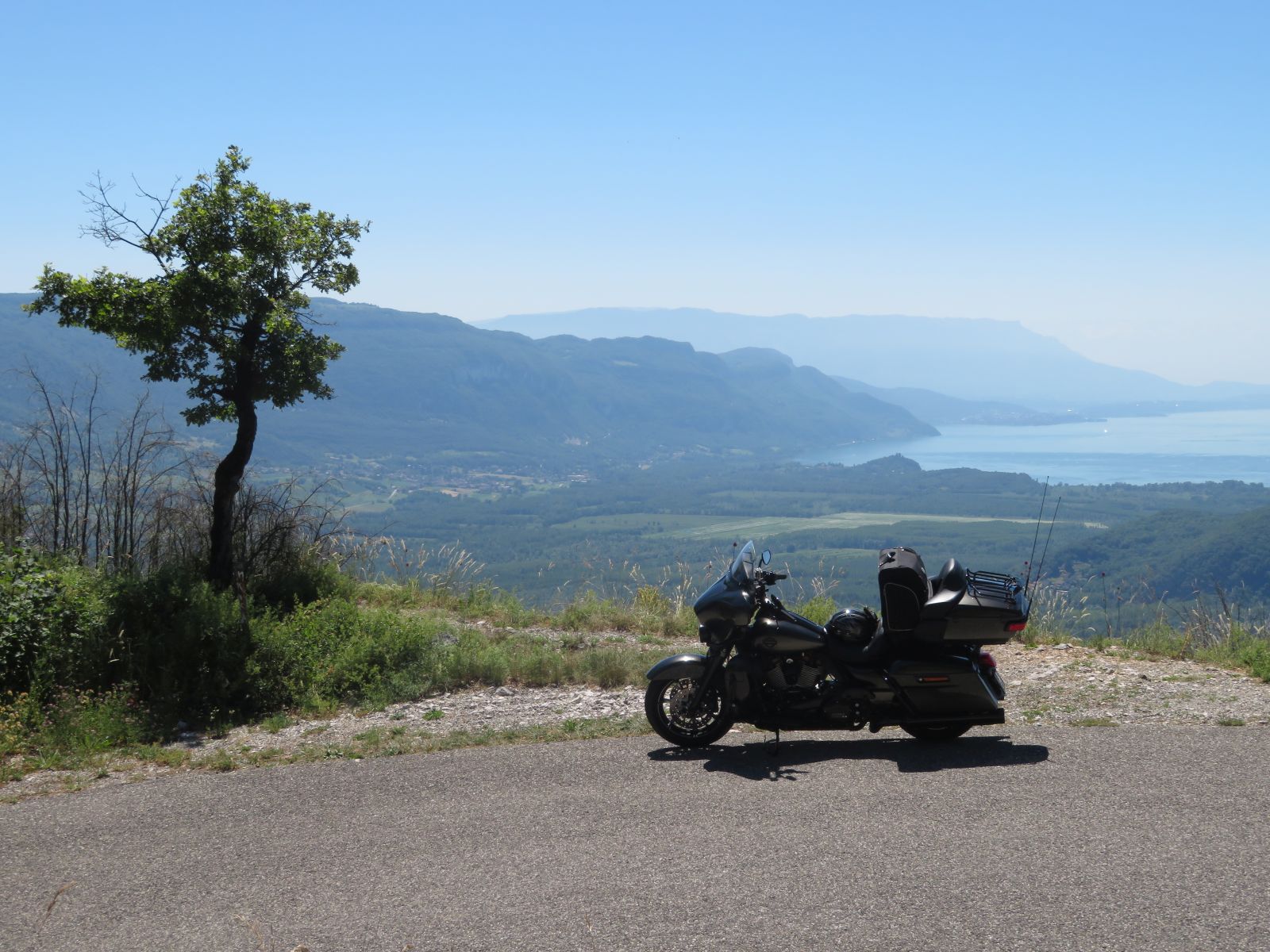 Danach ging es südwärts auf kleinen Nebenstrassen zum Col de la grand Colombier hinauf, wo man eine sensatinelle Aussicht gegen den Mont Banc und Lac du Bouget hat. Weiter führte mich die Route über Krete durch die heiseen Kurven bei den Lacets du Grand Colombier nach Chenaz, einem klenen Dorf am Canal de Saviere.