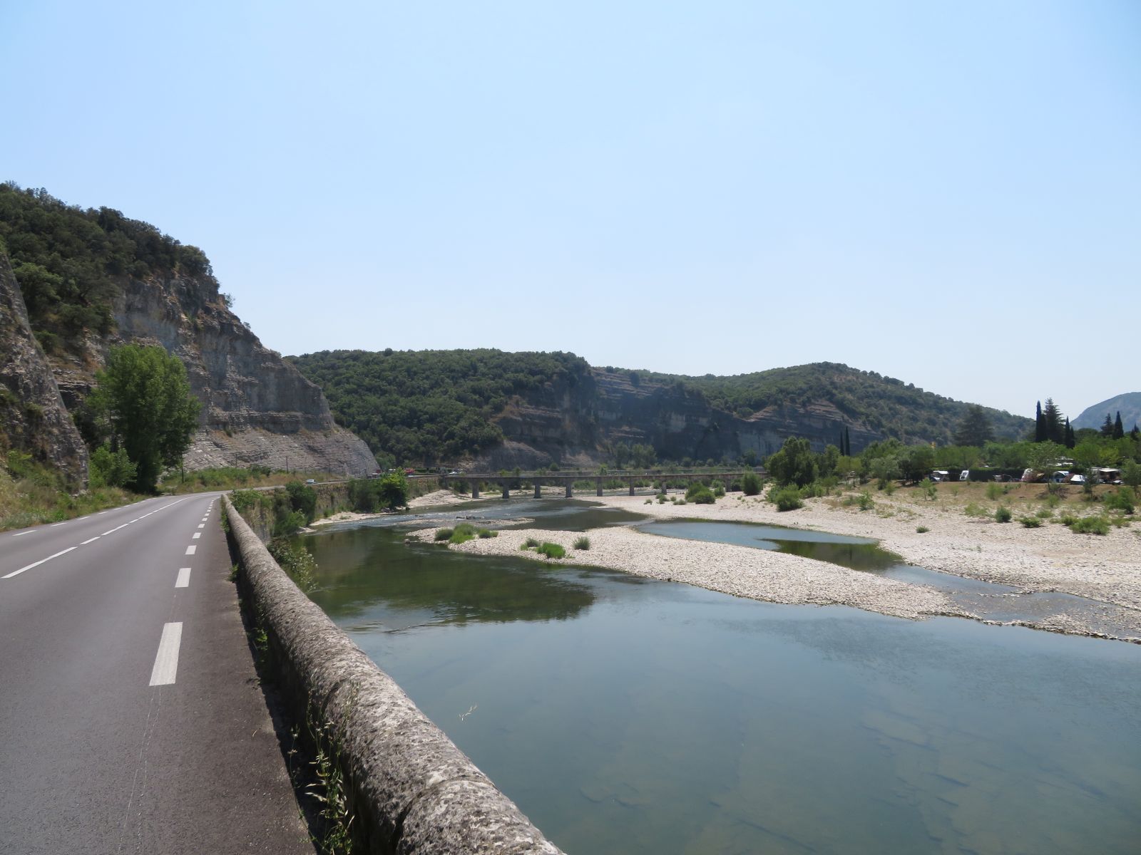 So fuhr ich erstmal westwärts in die Hügel und Pässe der Ardeche hinein und fand da schöne einsame kurvige Strassen. Doch es wurde immer heisser und heisser, so dass ich mich bei Aubenas entschied auf eine witere Runde über noch 6 Pässe zu verzichten und direkt in Hotel Belvedere in der Ardechschlucht fuhr.