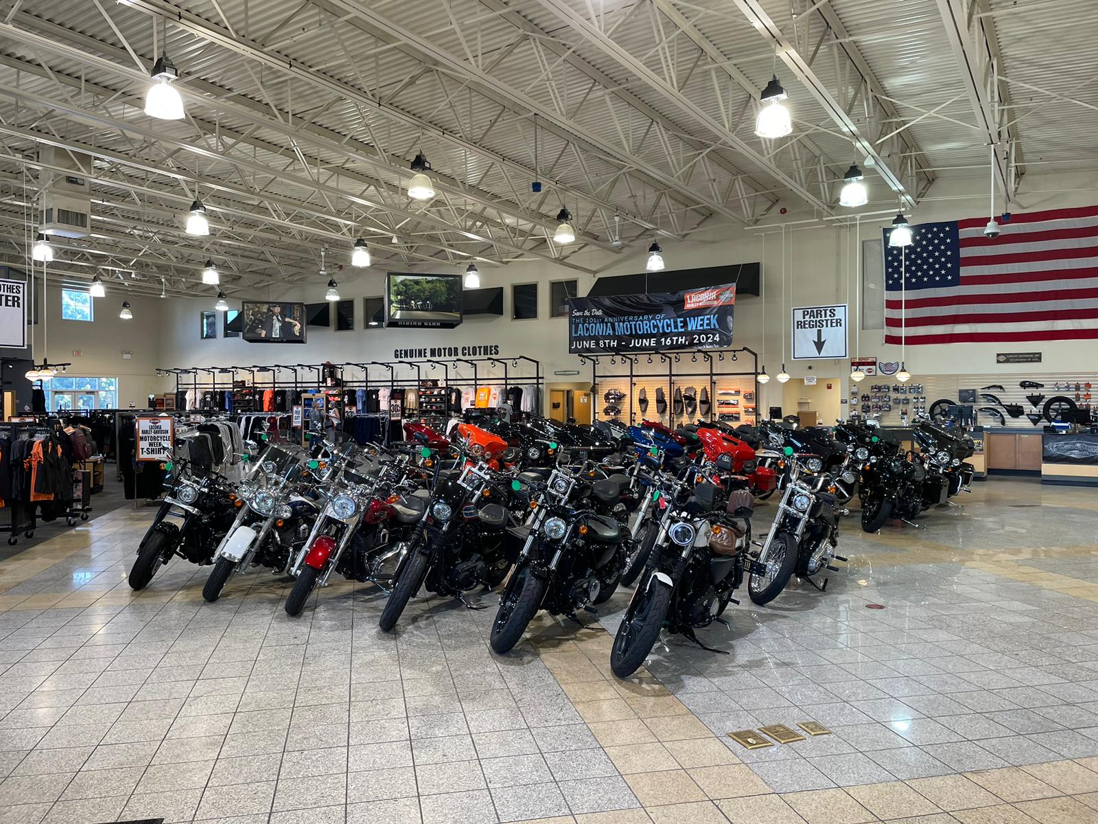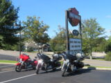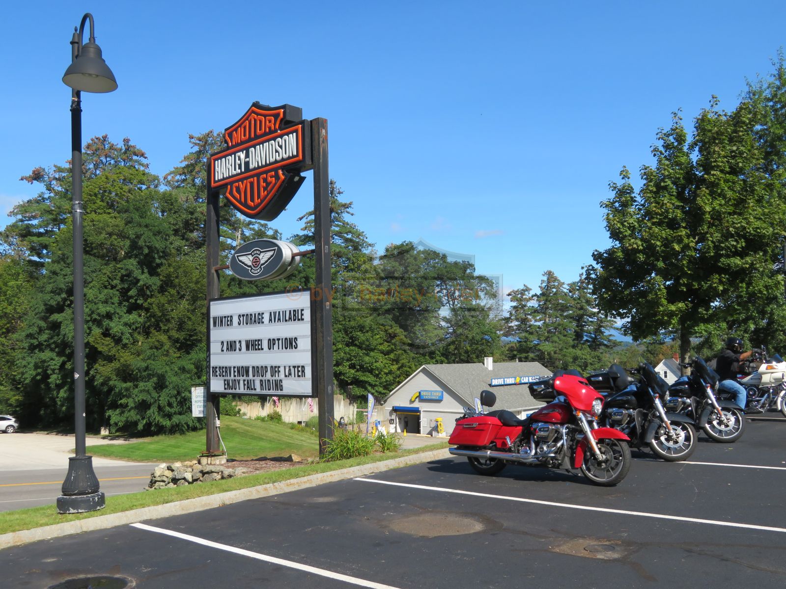 Als Erstes stand heute der traumhafte Lake Winnipesaukee auf dem Programm. Doch vorher stoppte uns ein Bar&Shield Schild vom HD Händler in Laconia, den wir doch besuchen mussten. Danach ging es an den See wo wir Kaffeepause machten. Vom See selber war leider nicht viel zu sehen, da wir erst an seinem Nordende auf ihn stiessen und die Kaffeepause im Dorfkern machten.