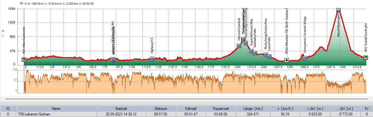 Bei einem weiteren HD Händler in Conway konnte ich mein 3xx-tes T-Shirt kaufen und dann ging es etwas hektisch weiter, denn Ecki wollte noch zum Mount Washington hoch fahren, da sind aber die Besuchszeiten begrenzt.