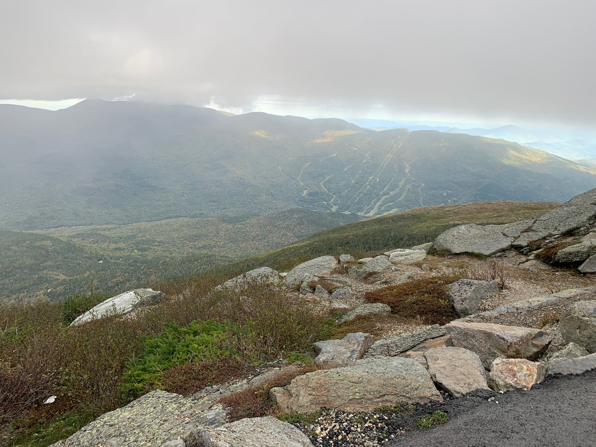 Wir erreichten noch rechtzeitig die Zahlstelle des Mount Washington und ich dachte eigentlich wir verschieben diese Bergfahrt auf Morgen, denn man sah knapp auf die halbe Höhe und weiter oben war alles im Nebel resp. Wolken.