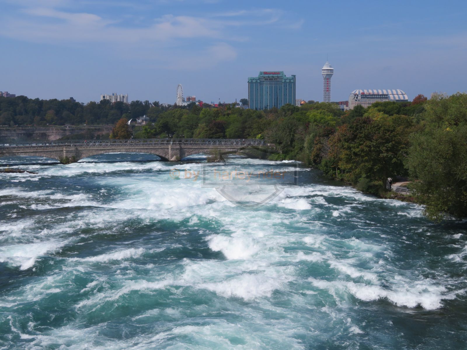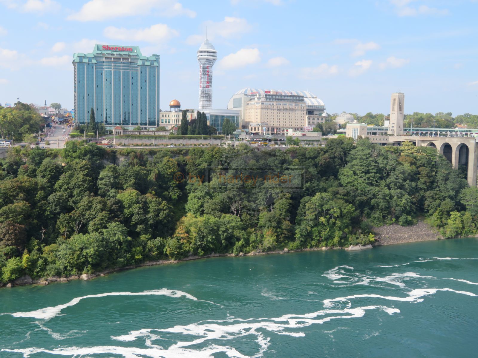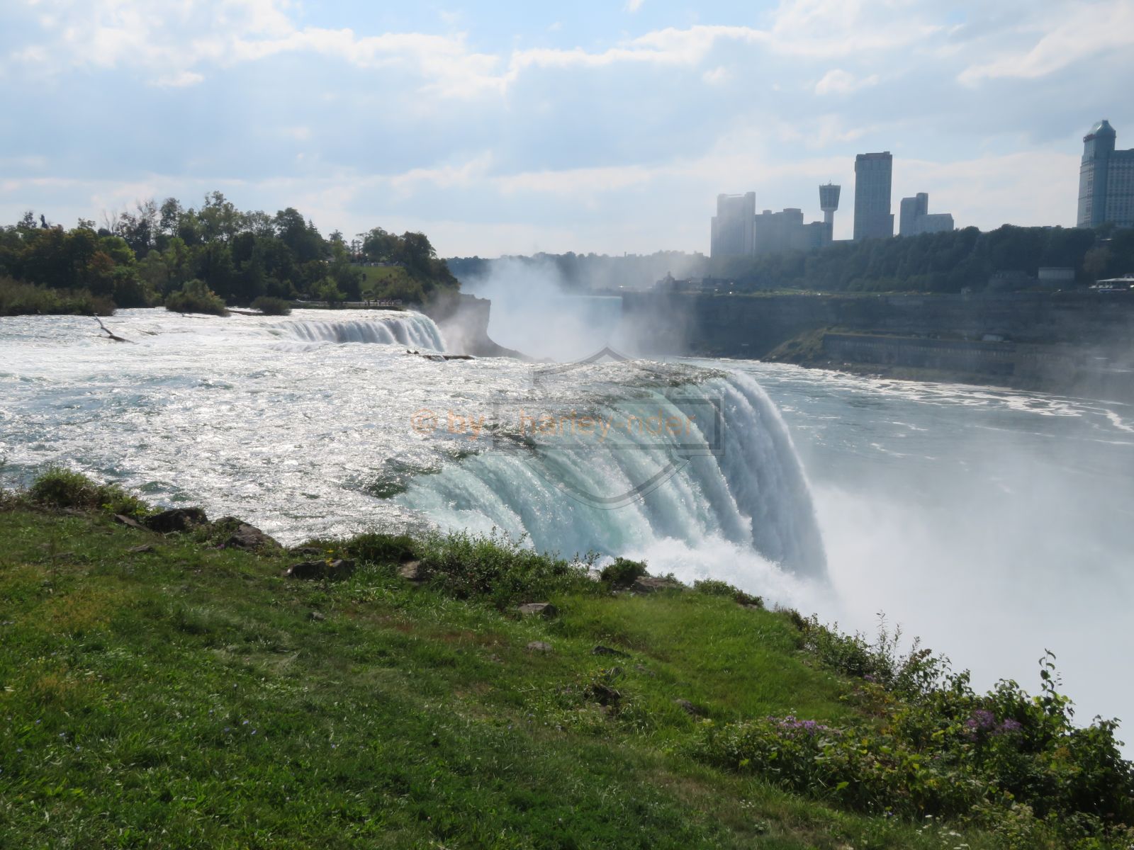 Zuerst ging es also über die Brücke auf die kanadische Seite und auf die Uferstrasse von wo aus man den Fällen direkt gegenüber war und schöne Aufnahmen machen konnte.