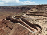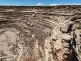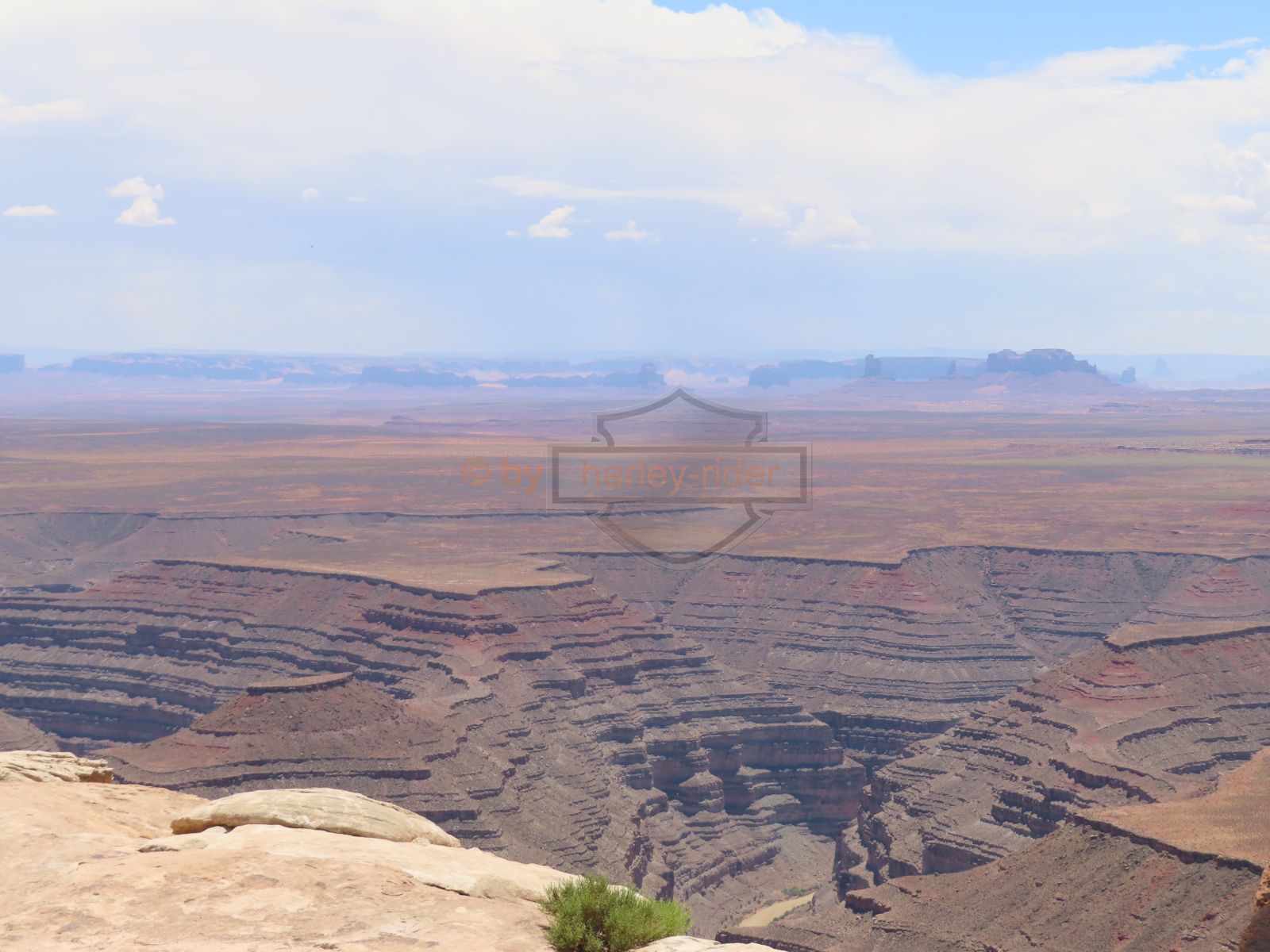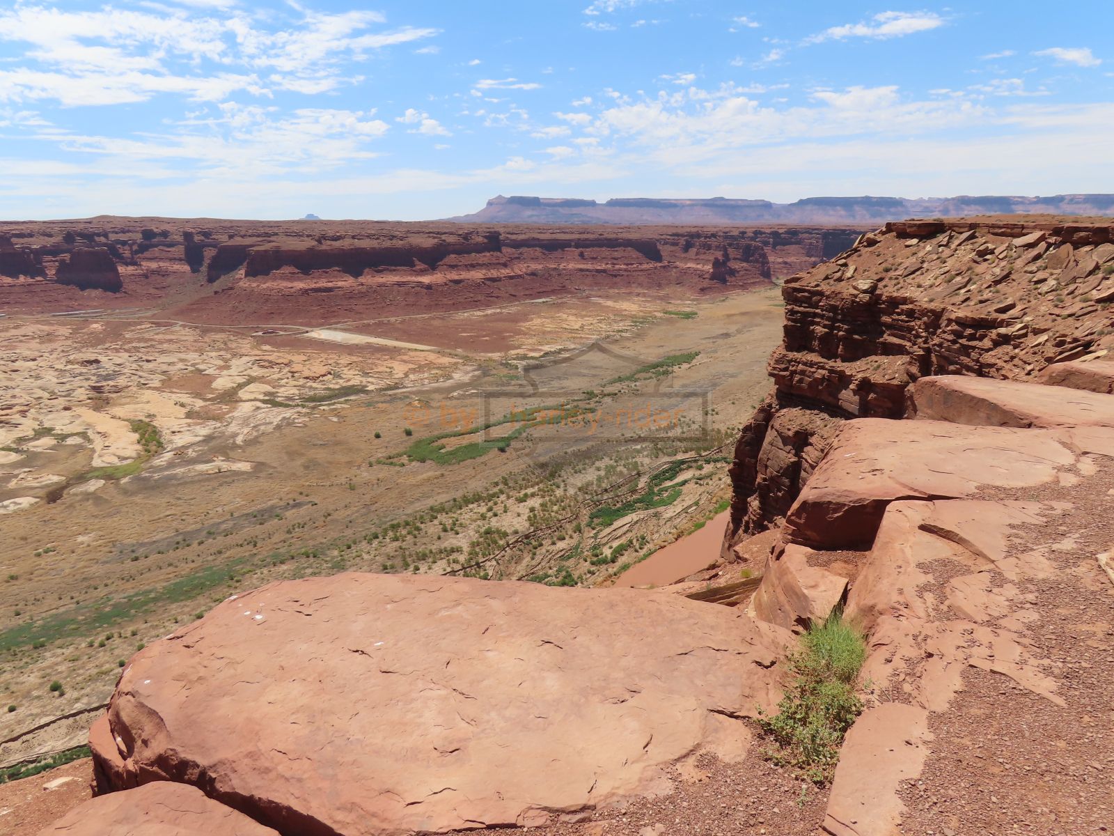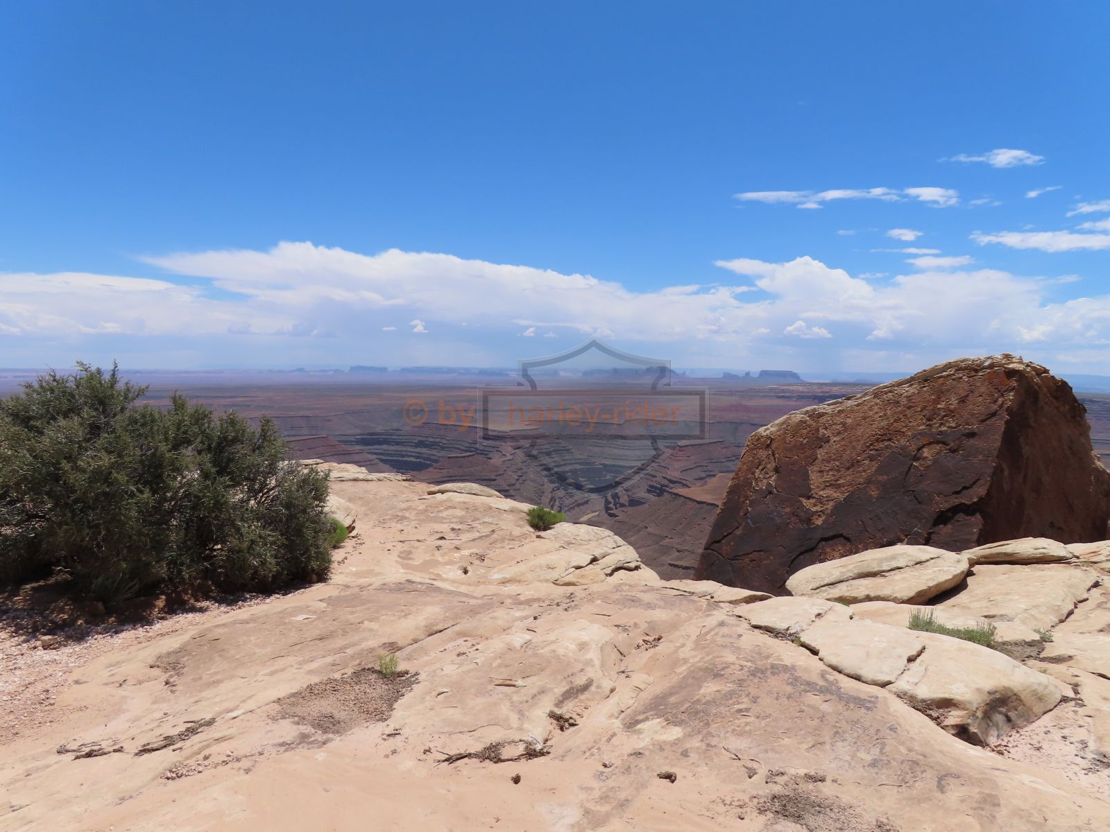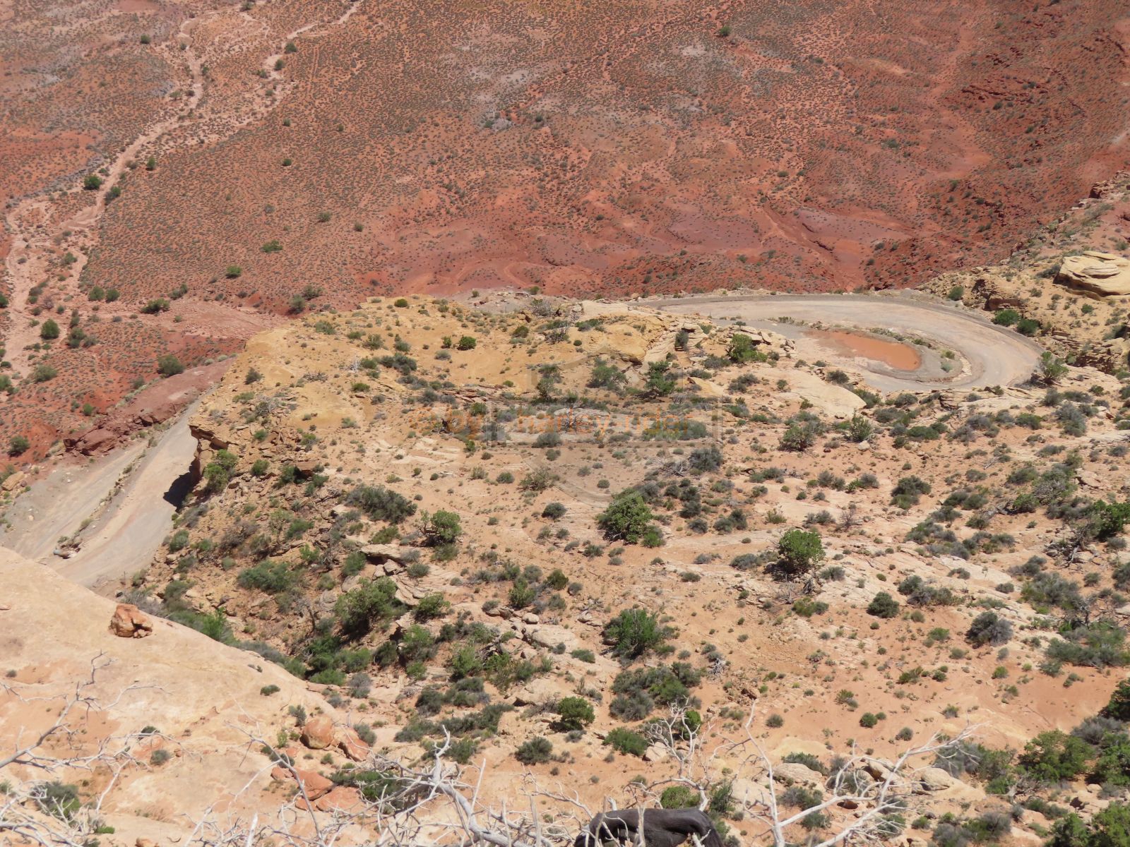 Den Moki Dugway bin ich schon vor über 20 Jahren mit meiner Jubiläums Ultra gefahren und habe diese Gravel Road doch in einem massiven besseren Zustand in Erinnerung. Ich musste zum Teil mit dem Jeep den besten Pfad durch das, auf die Strasse geschwemmte, Geröll suchen und hätte hier aktuell nicht mit einer Harley hochfahren wollen.