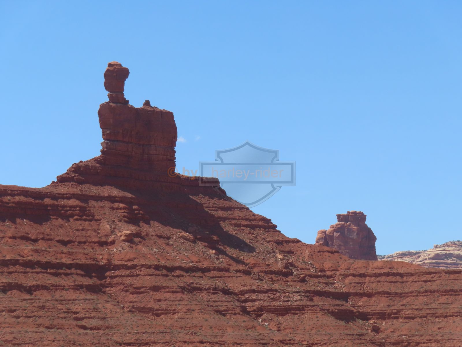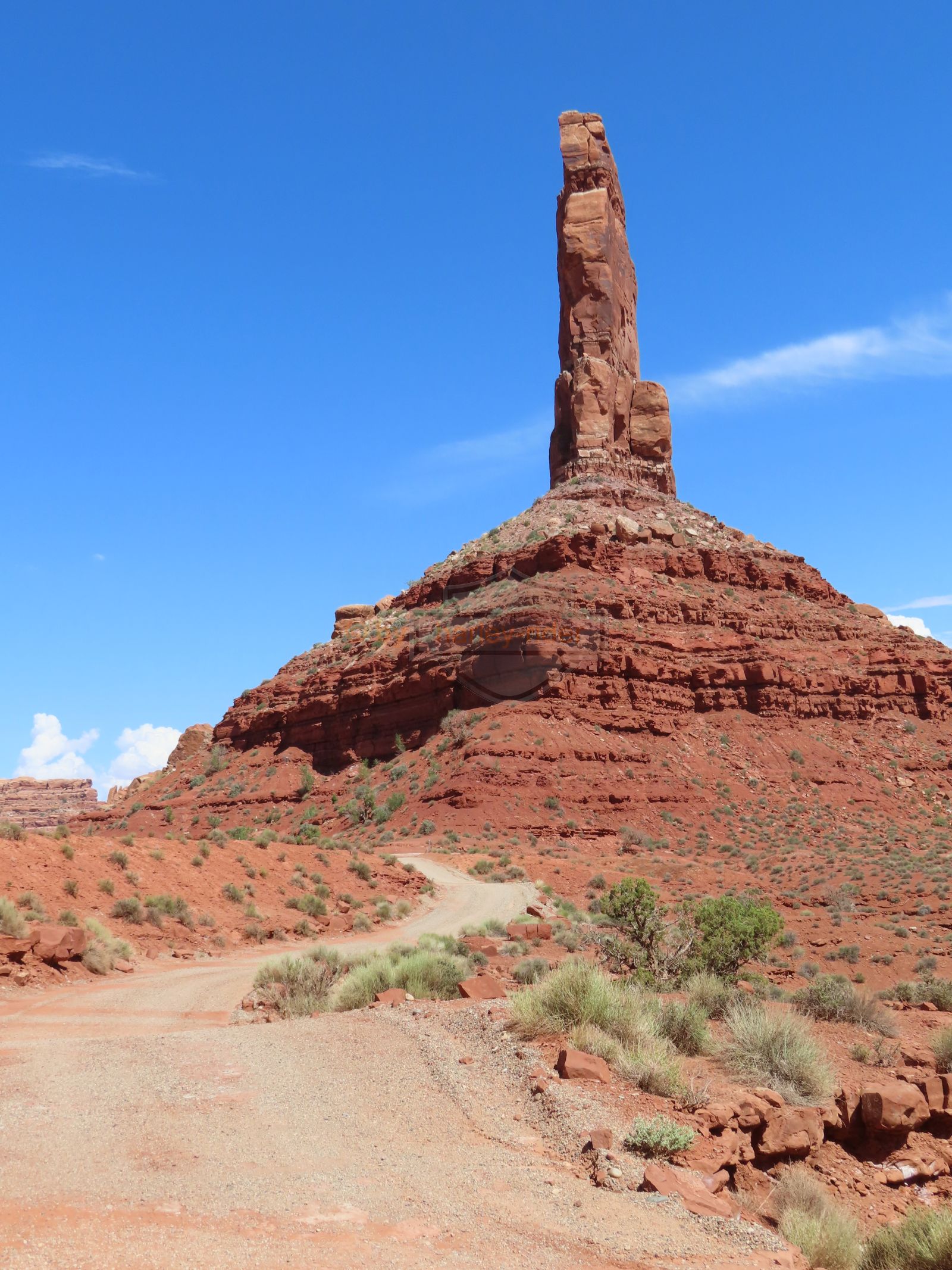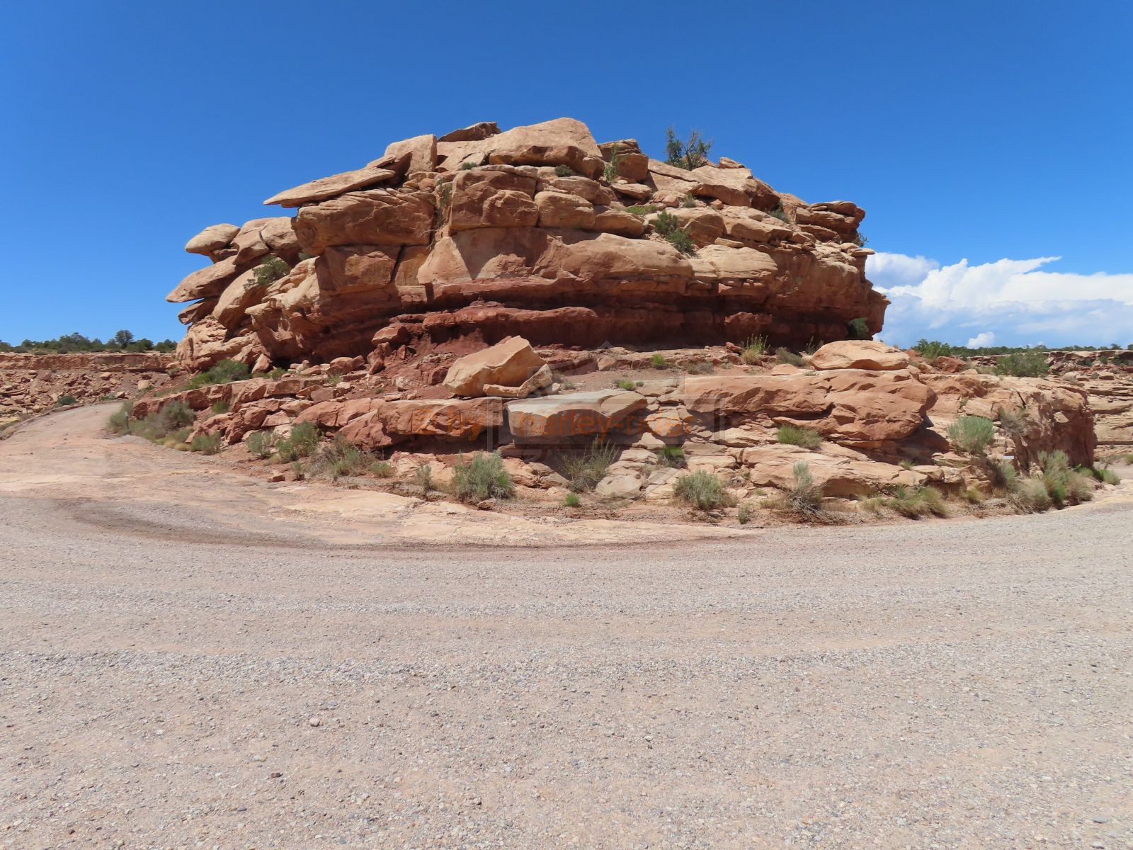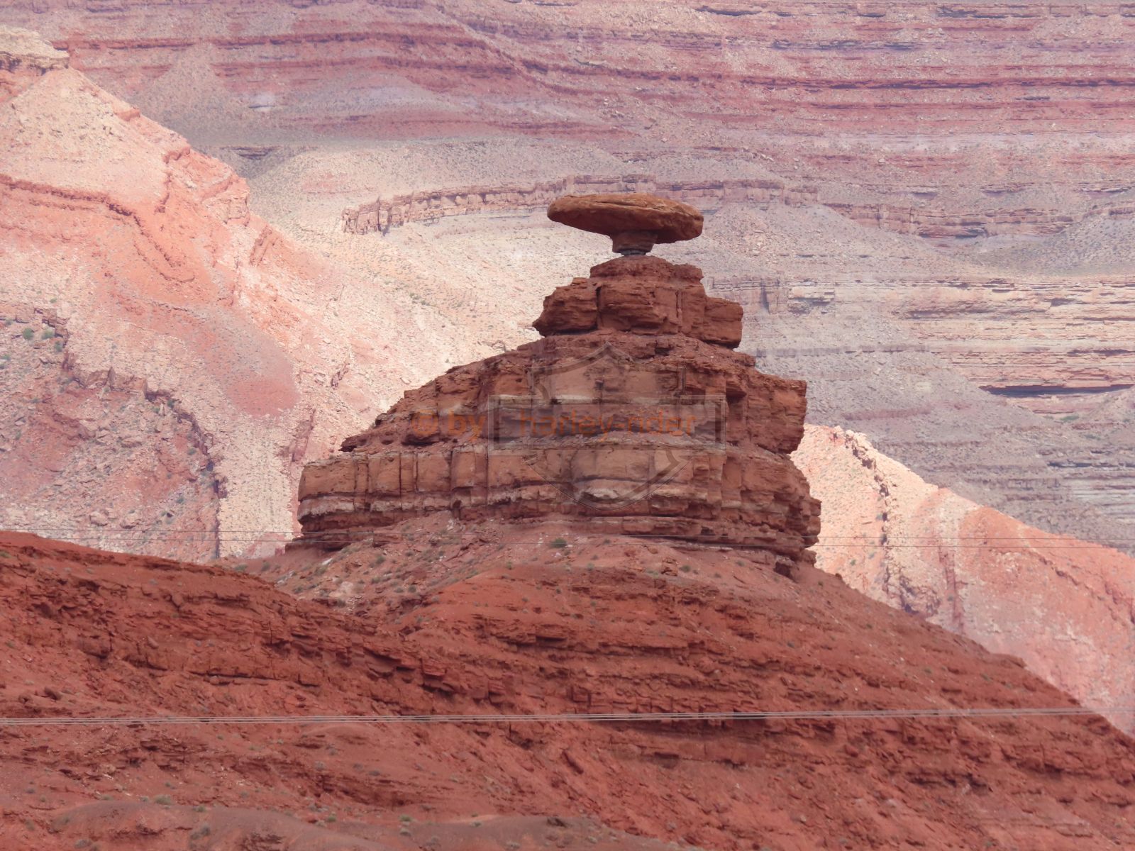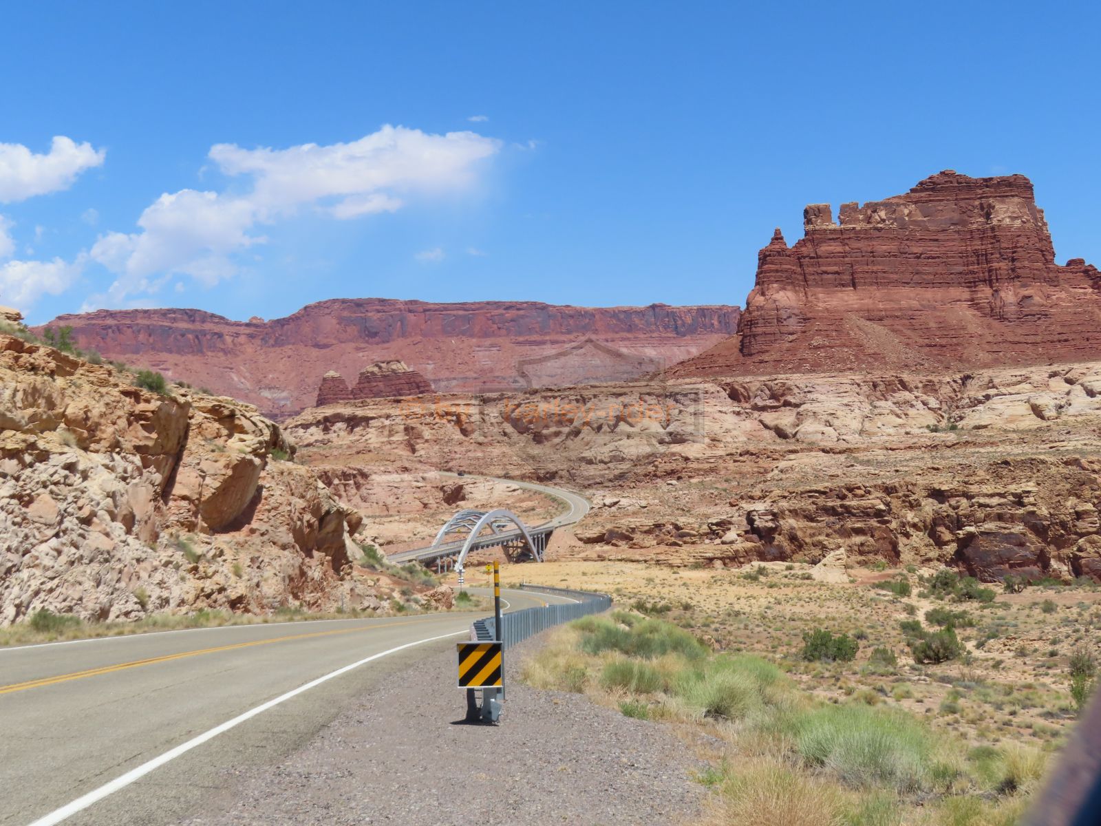 Den Moki Dugway bin ich schon vor über 20 Jahren mit meiner Jubiläums Ultra gefahren und habe diese Gravel Road doch in einem massiven besseren Zustand in Erinnerung. Ich musste zum Teil mit dem Jeep den besten Pfad durch das, auf die Strasse geschwemmte, Geröll suchen und hätte hier aktuell nicht mit einer Harley hochfahren wollen.