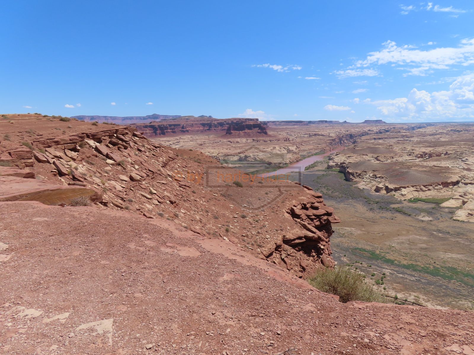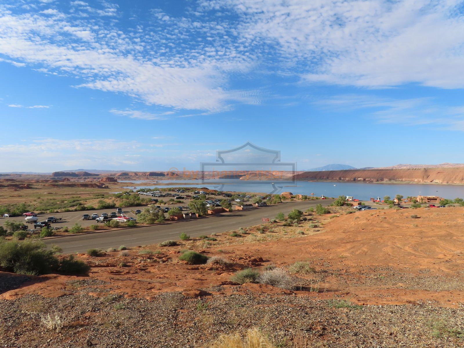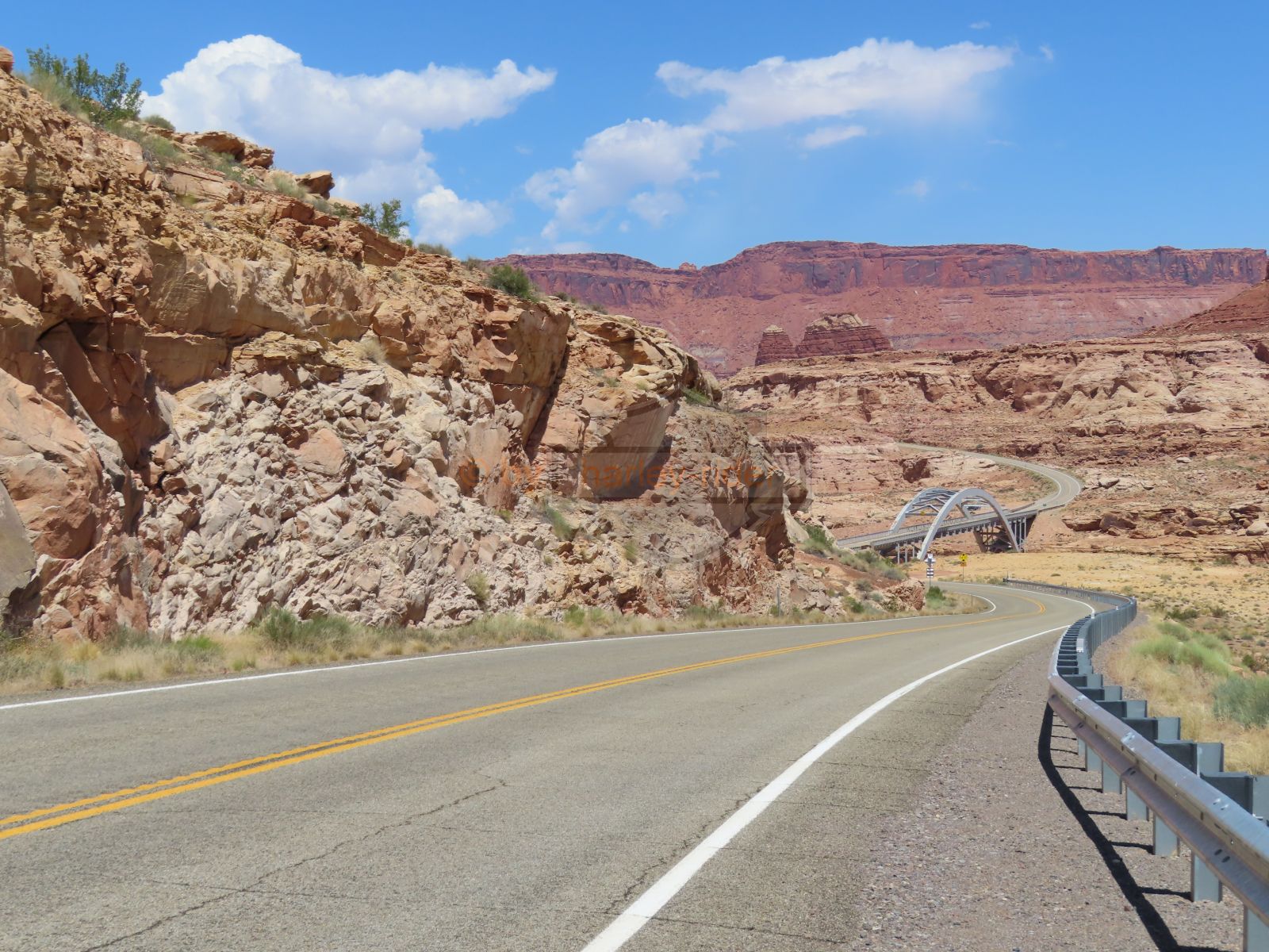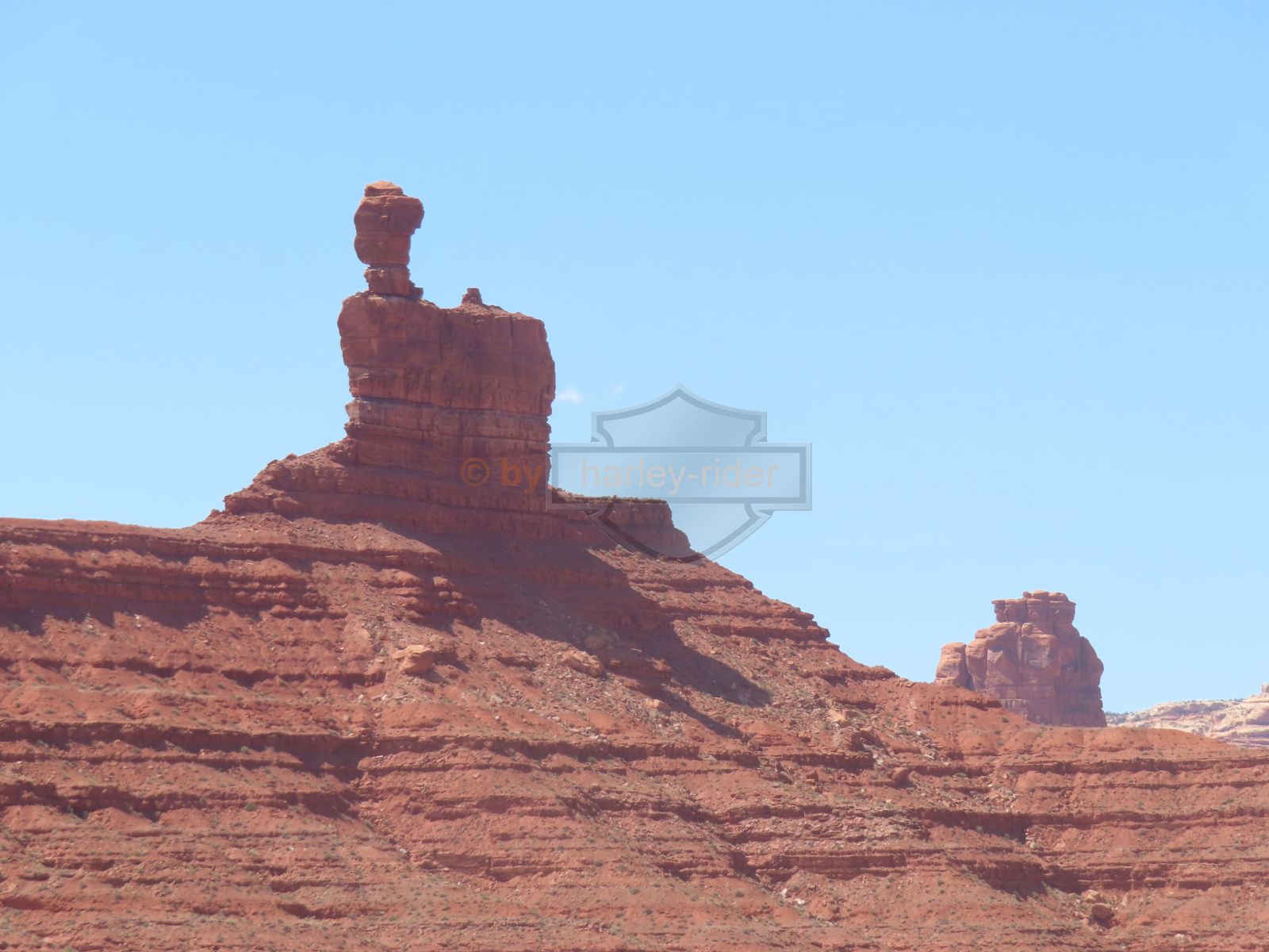 Den Moki Dugway bin ich schon vor über 20 Jahren mit meiner Jubiläums Ultra gefahren und habe diese Gravel Road doch in einem massiven besseren Zustand in Erinnerung. Ich musste zum Teil mit dem Jeep den besten Pfad durch das, auf die Strasse geschwemmte, Geröll suchen und hätte hier aktuell nicht mit einer Harley hochfahren wollen.