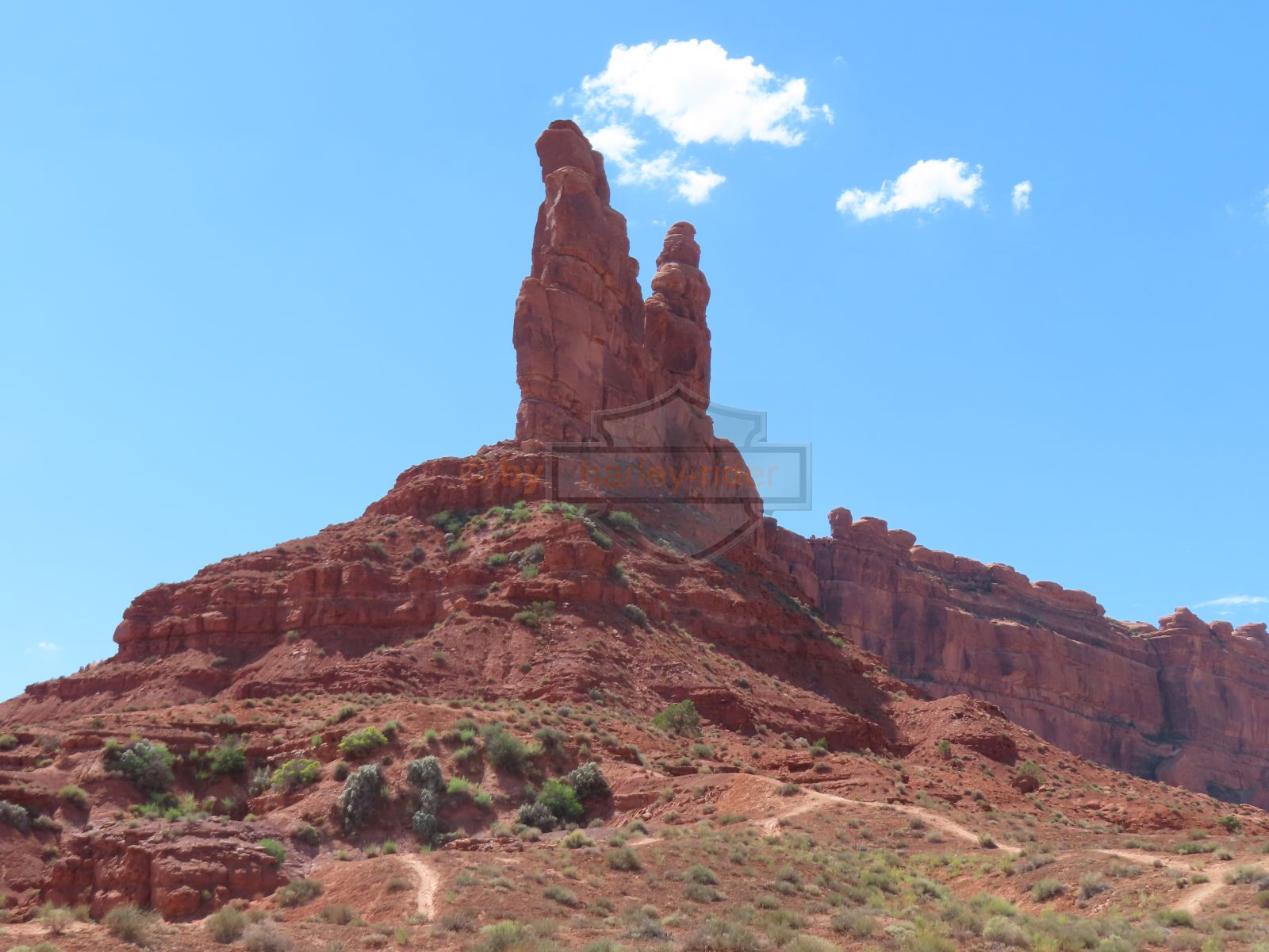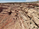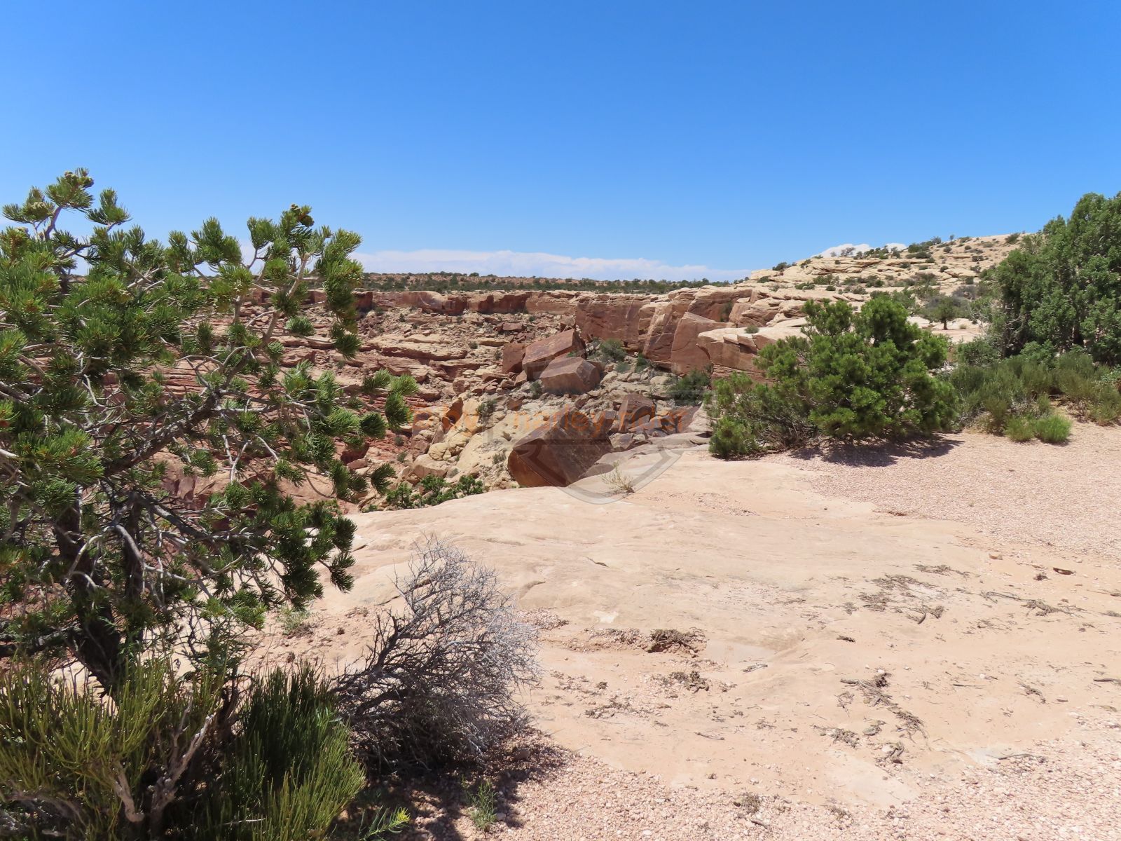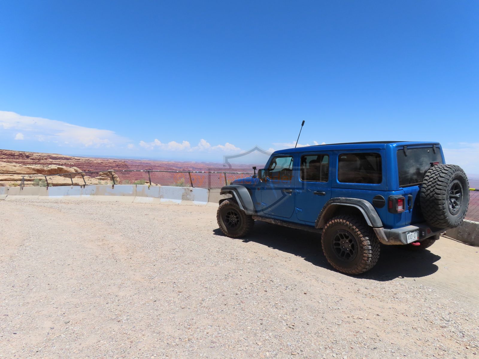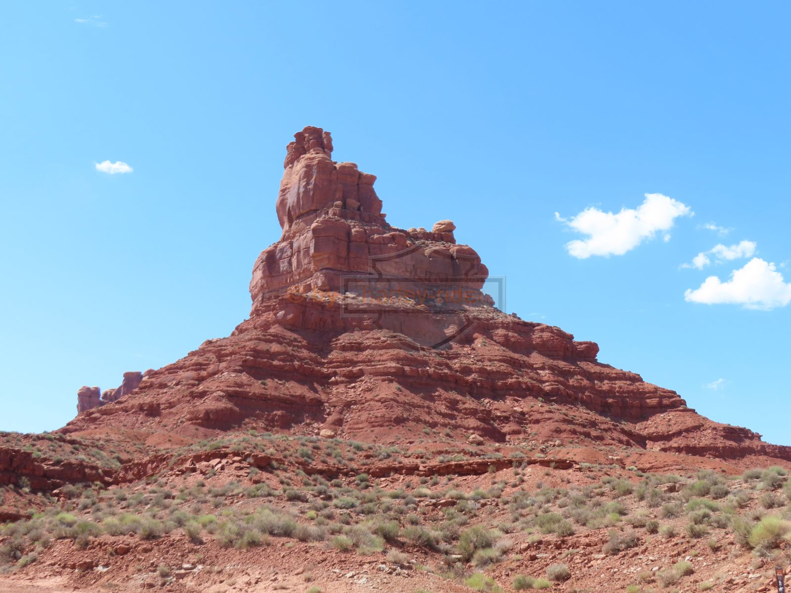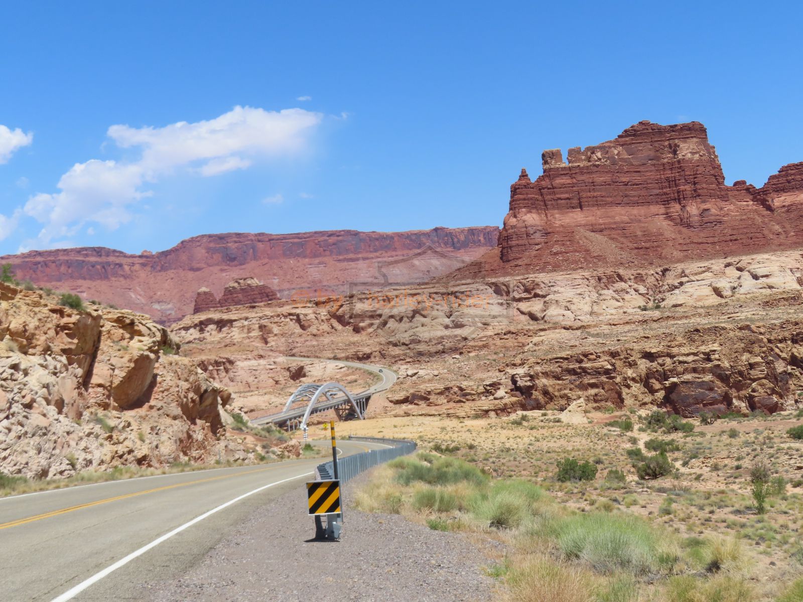 Den Moki Dugway bin ich schon vor über 20 Jahren mit meiner Jubiläums Ultra gefahren und habe diese Gravel Road doch in einem massiven besseren Zustand in Erinnerung. Ich musste zum Teil mit dem Jeep den besten Pfad durch das, auf die Strasse geschwemmte, Geröll suchen und hätte hier aktuell nicht mit einer Harley hochfahren wollen.