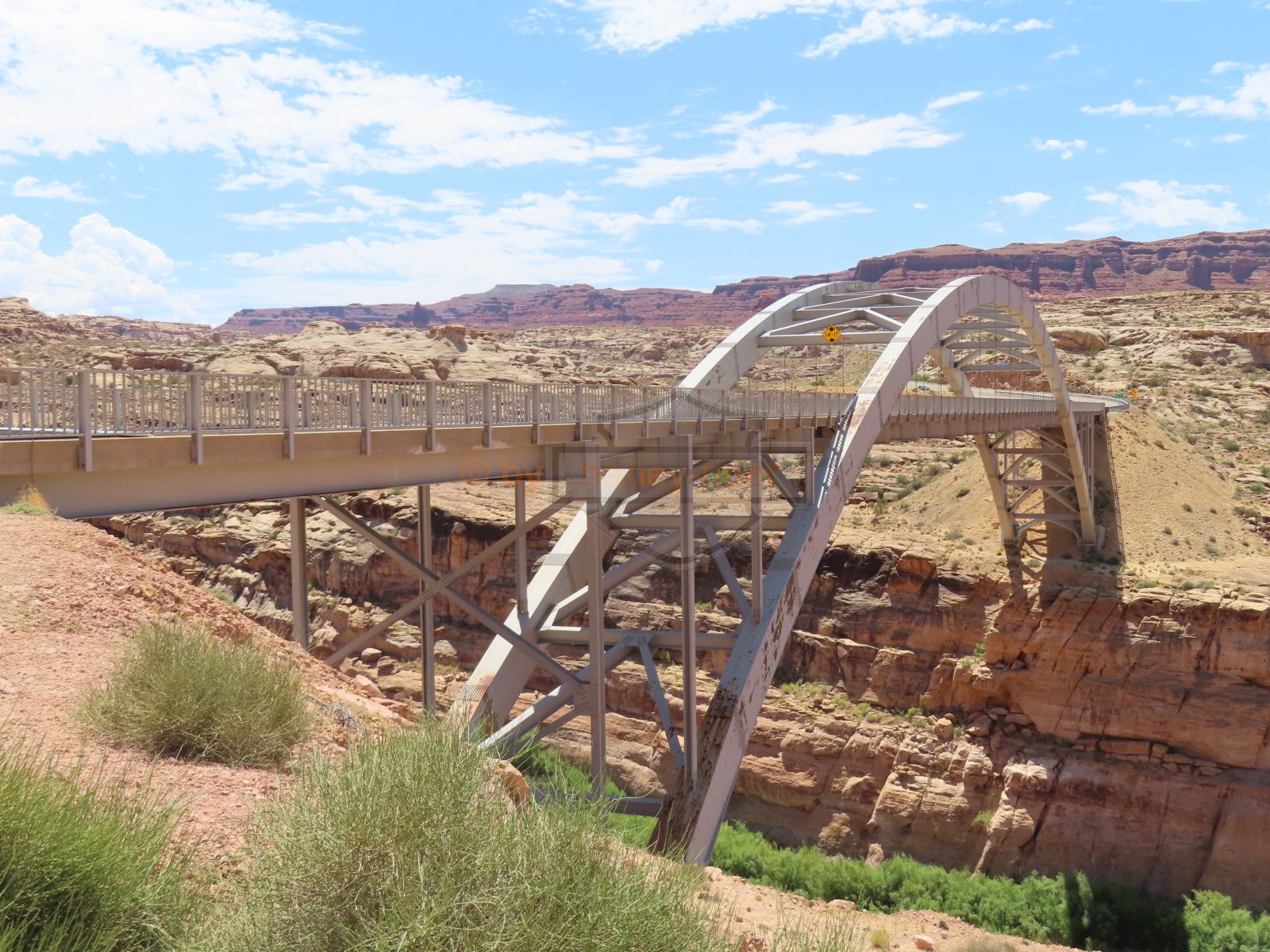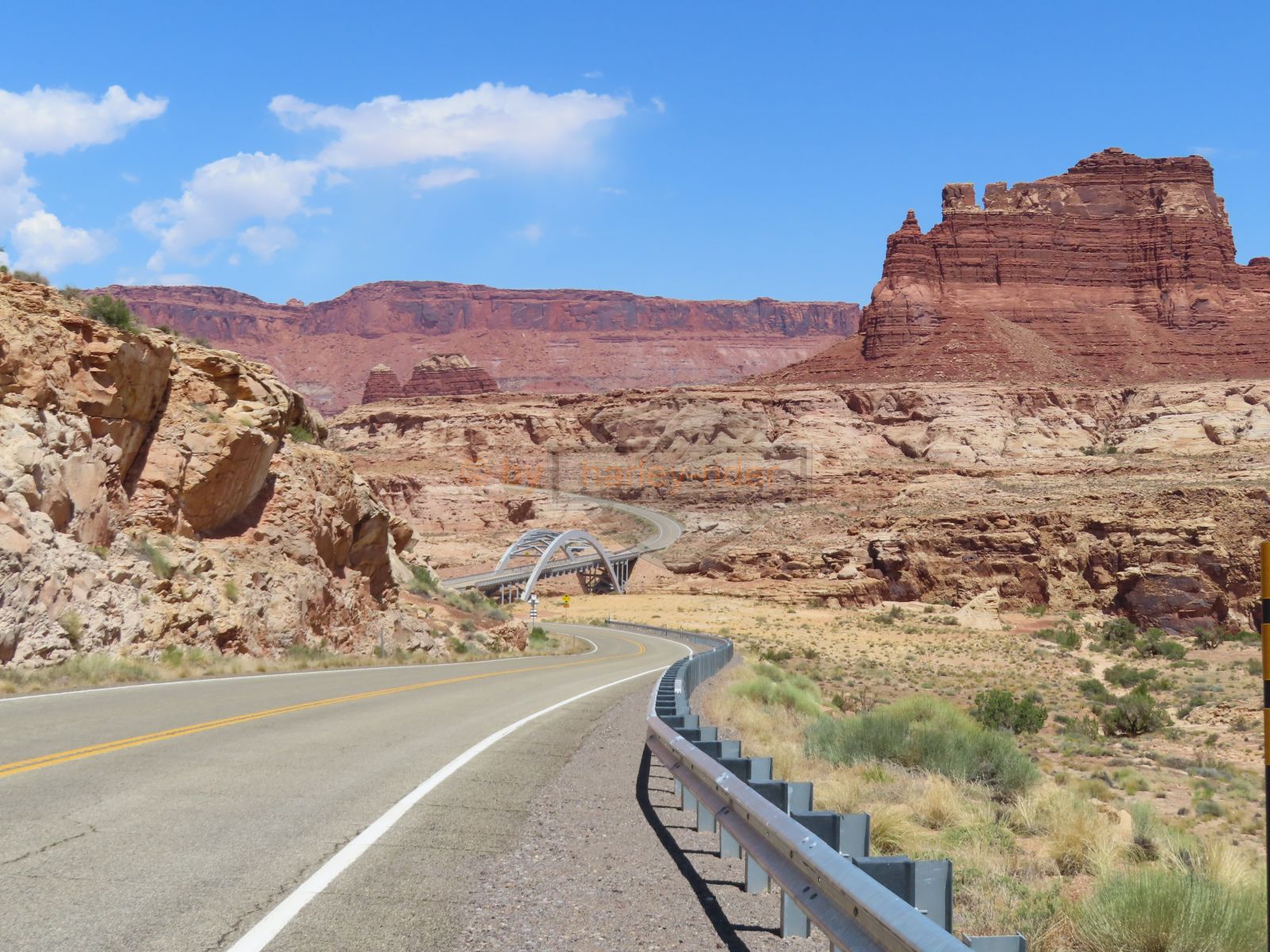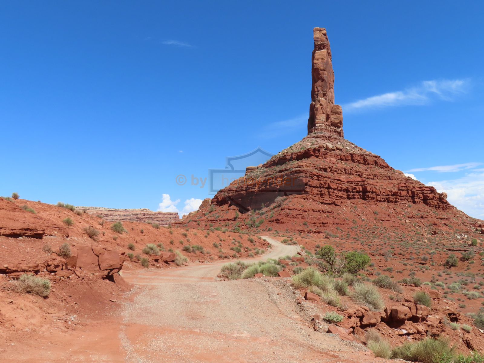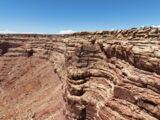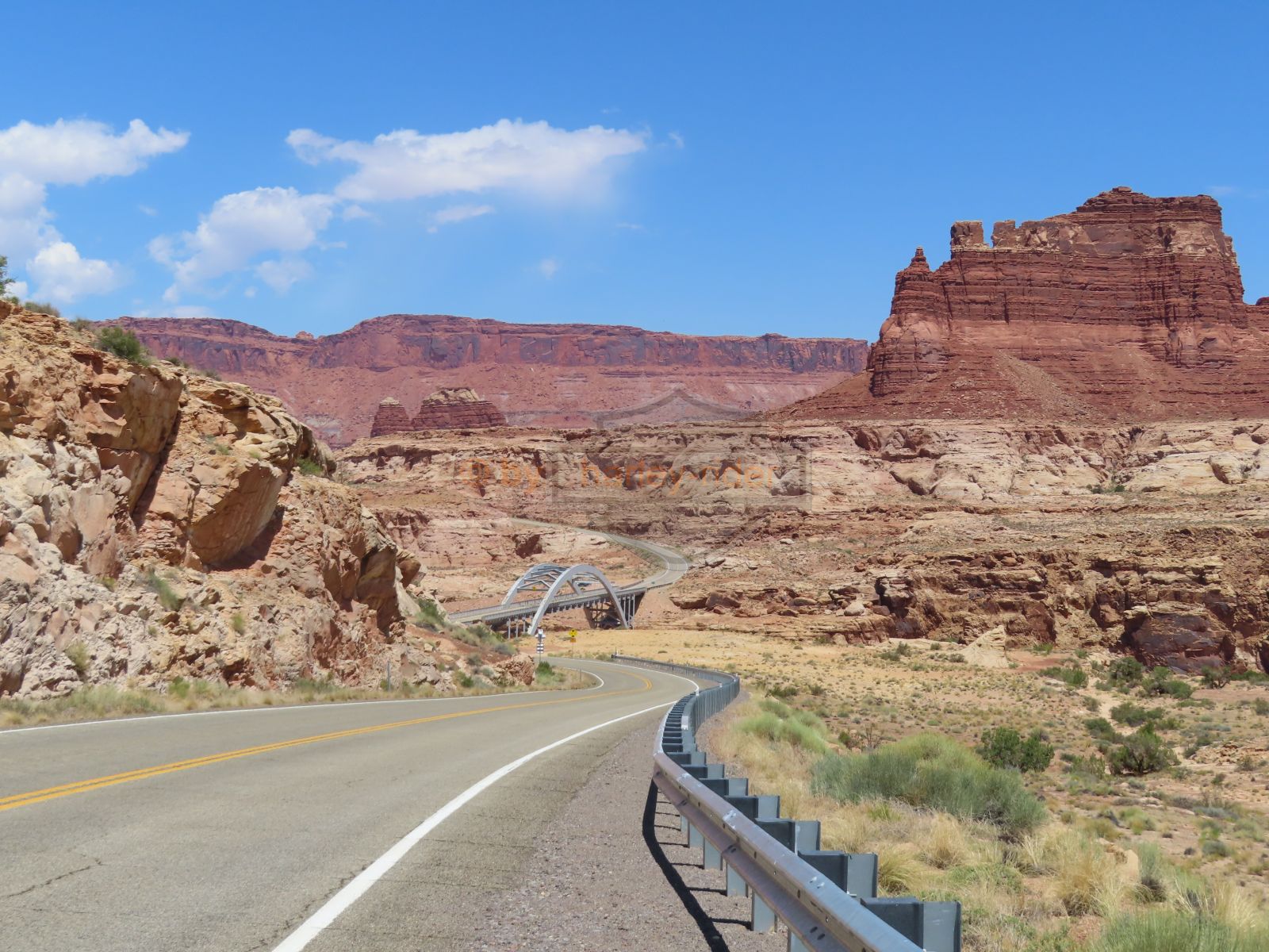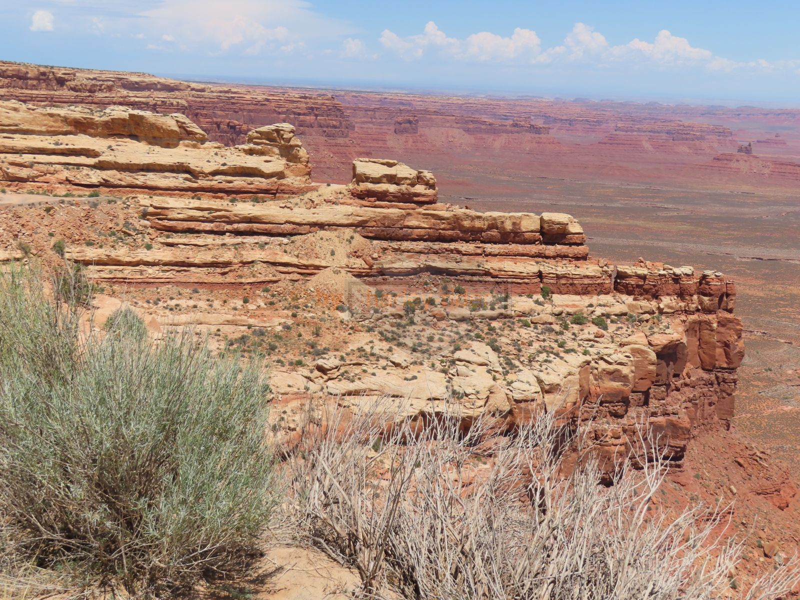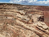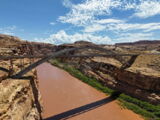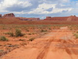 Auf der Weiterfahrt ging es über den Colorado mit seiner berühmten Brücke und weiter zum Moki Dugway. Unterwegs liess ich das Natural Bridge Monument links liegen, fuhr aber zuerst noch zum Muley Point hinaus. Schon hier sah man, dass ein rechtes Gewitter gewütet hatte und die Strasse war zum Teil sehr schlammig.