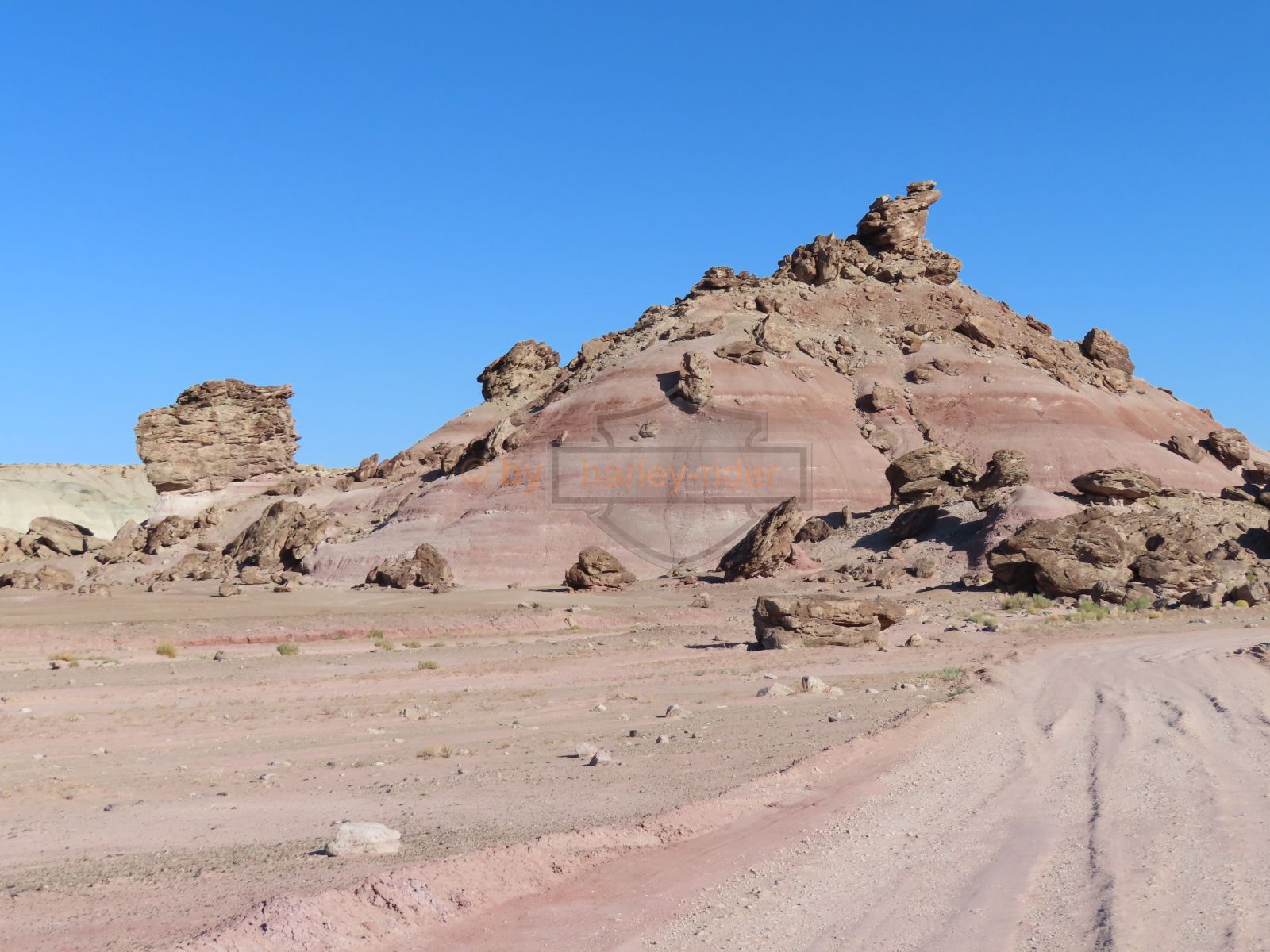 Beim Frühstück empfahl mir der Kellner noch zwei Orte vor meiner Weiterfahrt zu besuchen. Zum Einen gibt es in Hanksville eine alte Gesteinsmühle, zum Andern die Fahrt durch diee Mond-/Marslandschaft zu der Mars Wüstenforschungsstation.