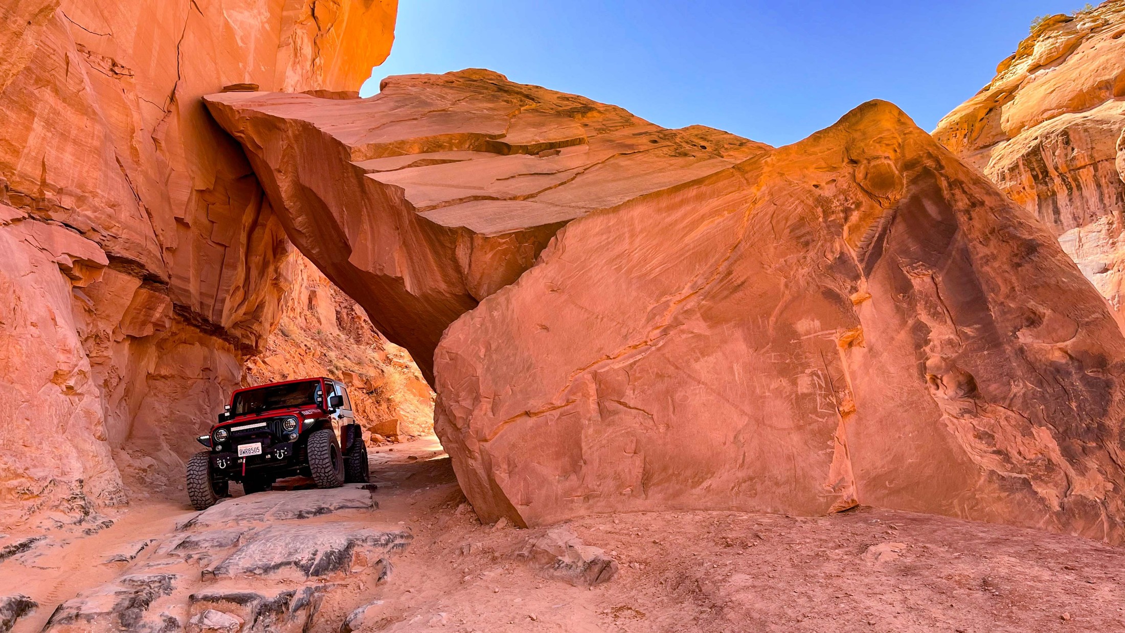 Mit der Einstellung 'Du hast das für dieses Gelände passende und gut ausgerüstete Fahrzeug gemietet, or dir sind da schon hunderte durchgefahren' ging es los. Mit dosiertem Gasgeben und bremsen schaffte ich alle Hindernisse und kam am Marlboro Point an.