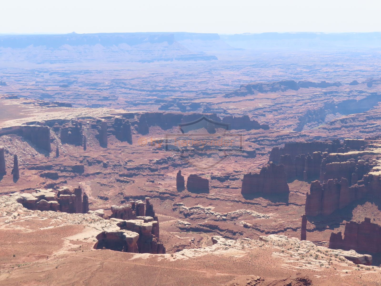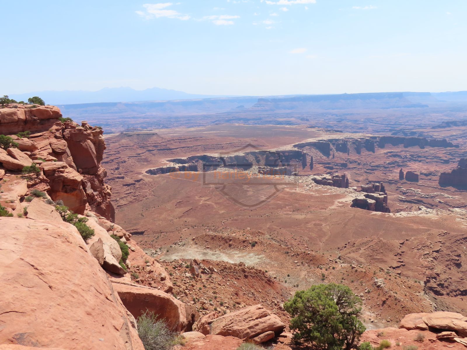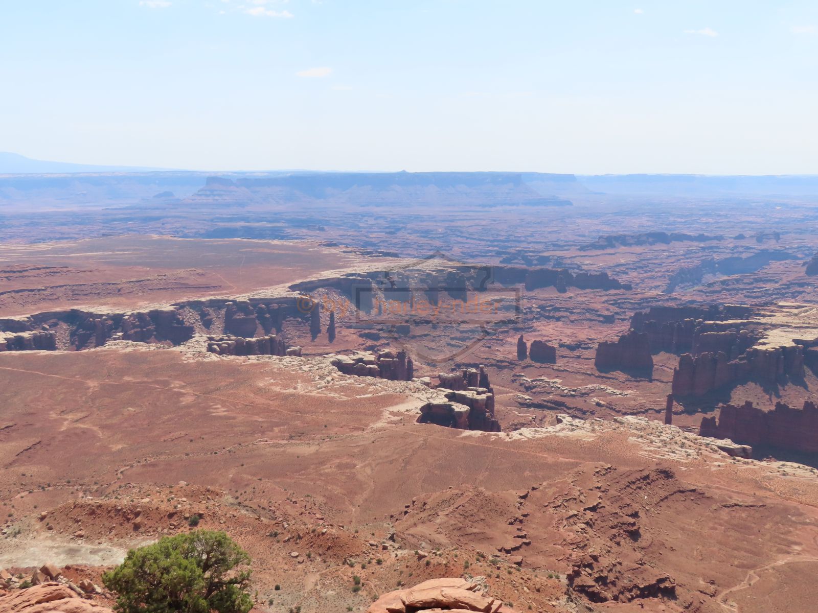 Im Canyonland wollte ich als erstes den Mesa Arch besuchen, was mit einer kleinen Wanderung verbunden war. Als 'nichtmehr Hicker' war es mir aber dann doch zu weit und zu steil hinunter, so dass ich den Arch aus Distanz fotografierte und dann weiterfuhr. Die weiteren Aussichtspunkte 'Green River' und 'Grand View' waren dann in massiv kürzerer Distanz erreichbr und von den grandiosen Aussichten habe ich extra Panoramas erstellt.