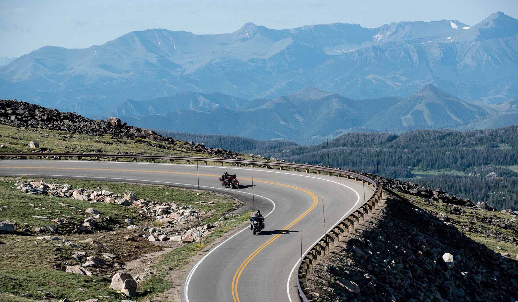 Heute geht es hoch hinaus! Auf über 3.700 Höhenmeter klettern wir mit unseren Harleys auf den Beartooth Pass und fahren danach ein gutes Stück durch den Yellowstone Nationalpark