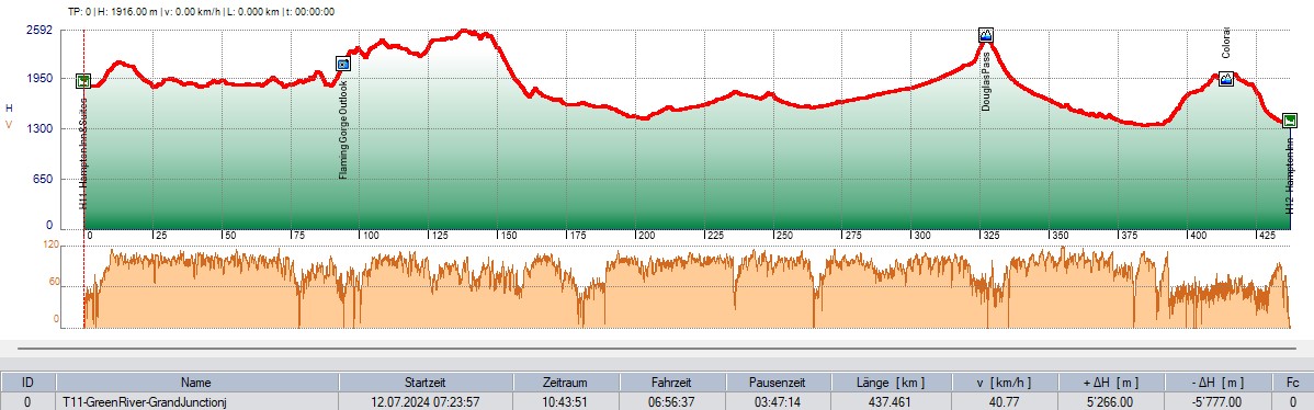 Eine abwechslungsreiche Tagesetappe durch den Red Canyon zum Flaming Gorge und durch den atemberaubenden Colorado Monument National Park führt uns ins historische Städtchen Grand Junction.