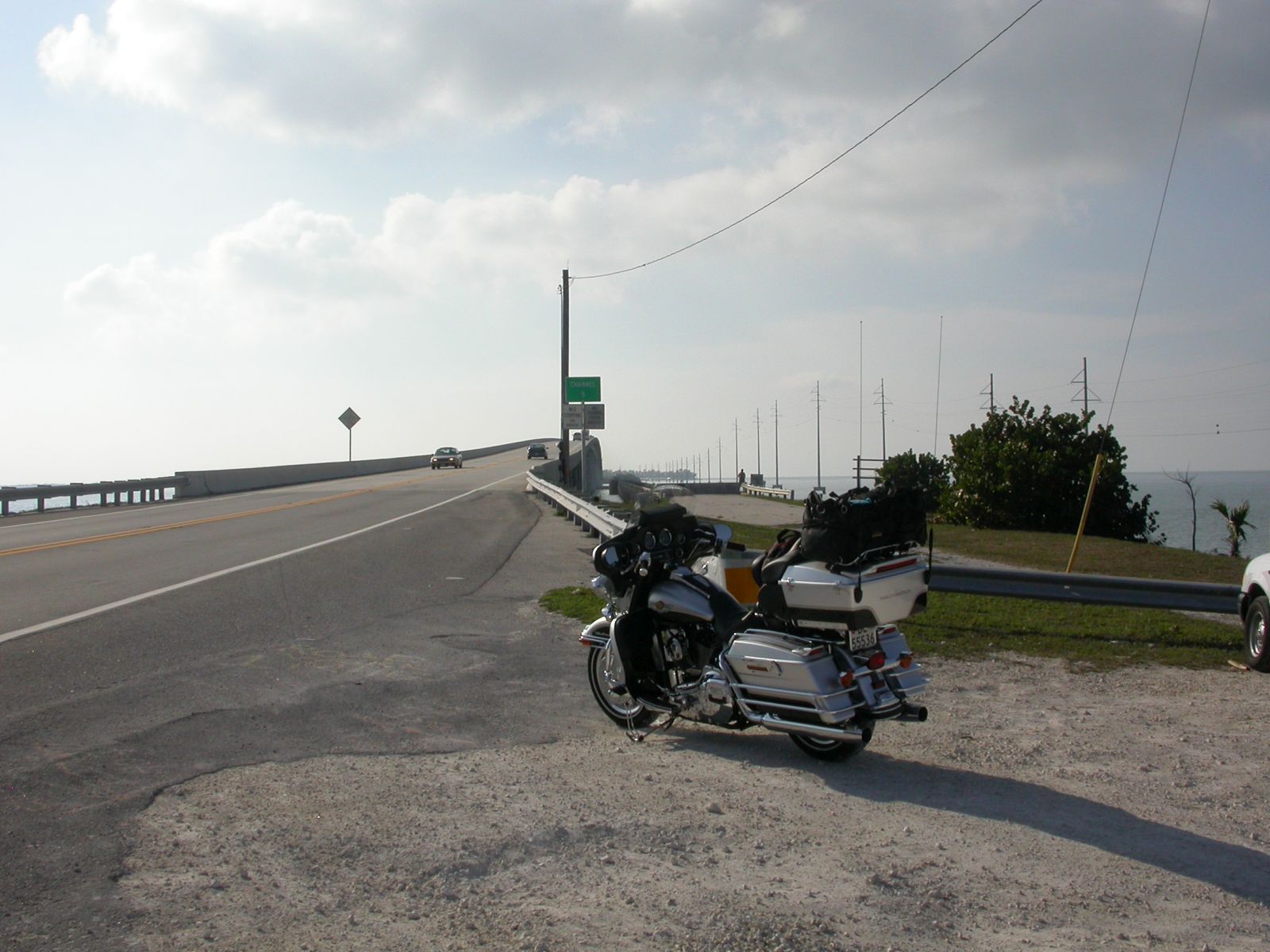 Bis zur HD Filiale im Süden von Miami fuhr ich über die Interstate. Nach dem obligaten Halt mit T-Shirt kaufen begann dann der ca. 200 km lange Ride über mehr als 40 Brücken, die die einzelnen Inseln der Keys verbinden nach Key West. Nach dem Hotelbezug beeilte ich mich über die Duval-Street an die Küste zu kommen. Ich war recht spät dran, konnte aber doch noch die letzten Minuten eines unvergesslichen Sonnenuntergangs erleben. Danach war Nachtessen angesagt und anschliessend war Party in den durch Hemingway bekannten Bars und Clubs angesagt.