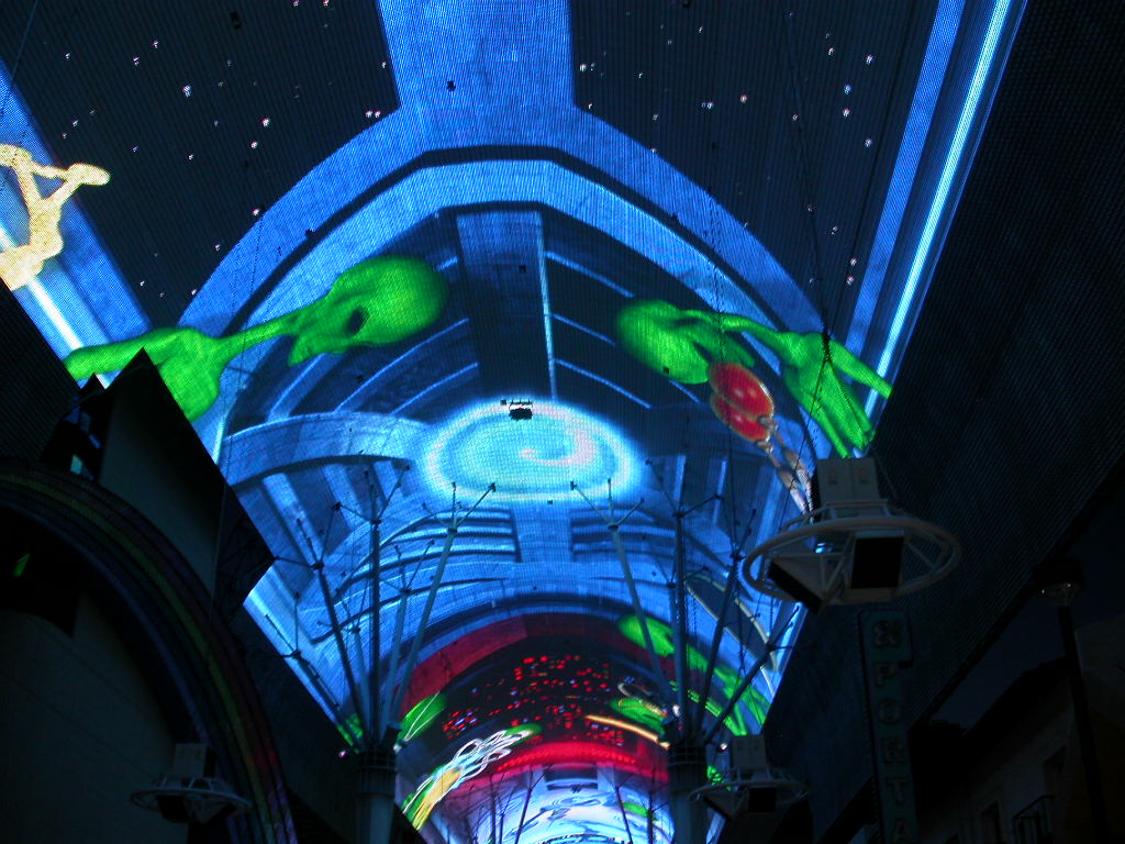 Am Abend besichtigten einige den Strip mit seinen imposanten Casino- und Hotelbauten mit entsprechender Beluchtung und öffentlichen Shows, die die Spieler anlocken sollen. Ich zog es vor nach Downtown ins 'alte' Las Vegas zu fahren und den Abend dort zu geniessen. Ich finde es angenehmer hier im meiner Meinung nach gemütlicheren Teil dieser 'Wüstenoase' bei Strassenmusik und der Licht- / Musikshow in der grossen Halle zu verweilen.