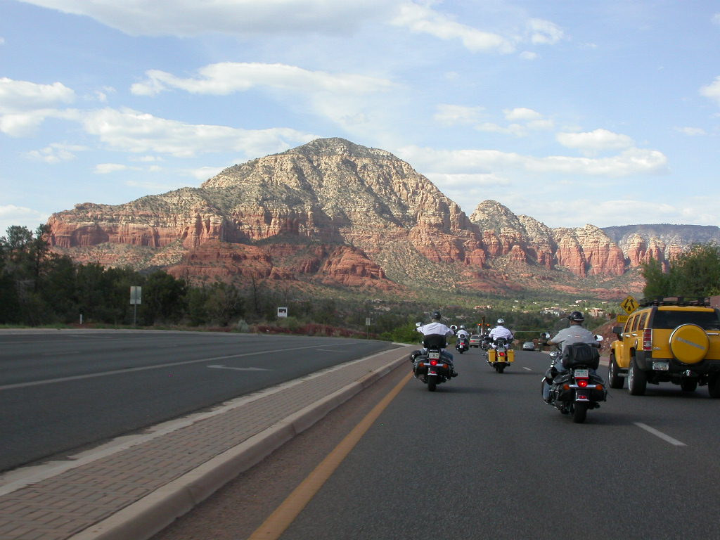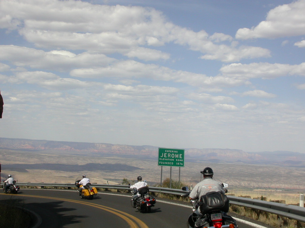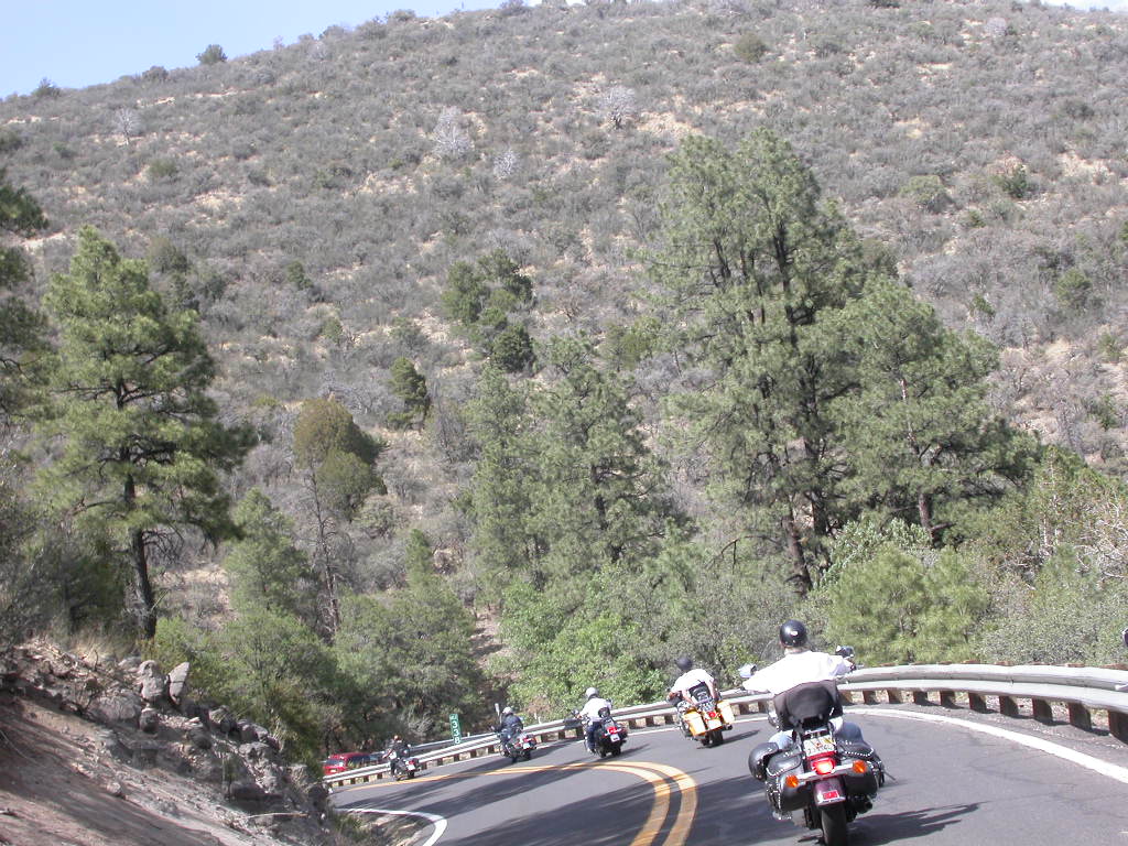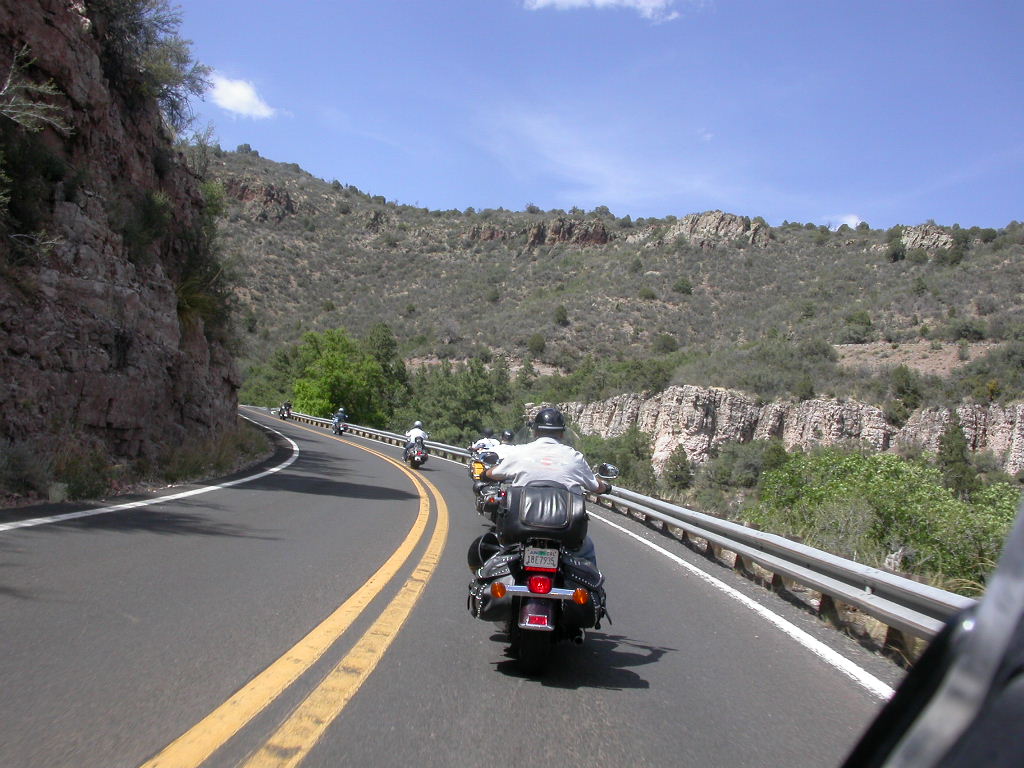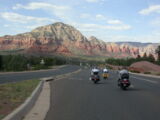 Danach flogen wir weiter tief Richtung Prescott und dann über eine schöne kurvenreiche Strecke Richtung Jerome kurz vor Sedona. Leider war hier dann gegenüber dem freien Jagen kollektives Gruppenfahren im 'Bergaufbremsertempo' angesagt, was dem Spass an dieser schönen Strecke doch etwas den Reiz nahm, dasselbe galt trotz Nachfrage zum freien Fahren auch für die Strecke von Sedona durch den malerischen Oak Creek Canyon nach Flagstaff. Bei zwei Kreuzungen wo man rechts abbiegen muss, könnte man sich ja verfahren ...