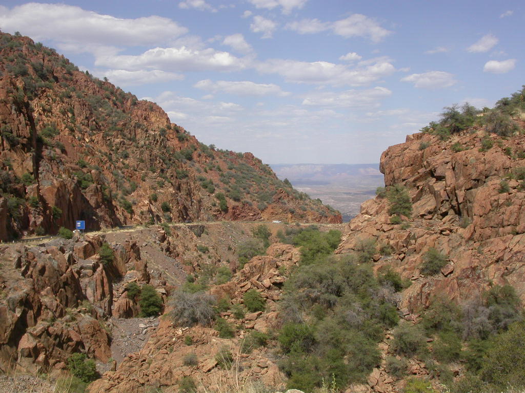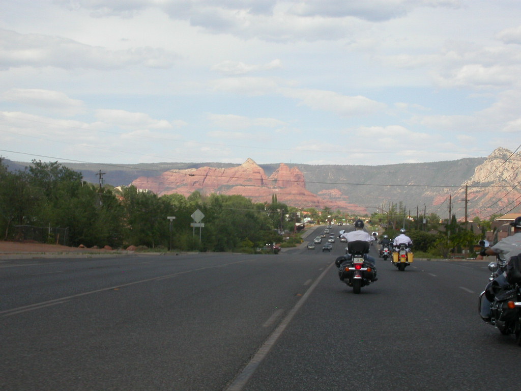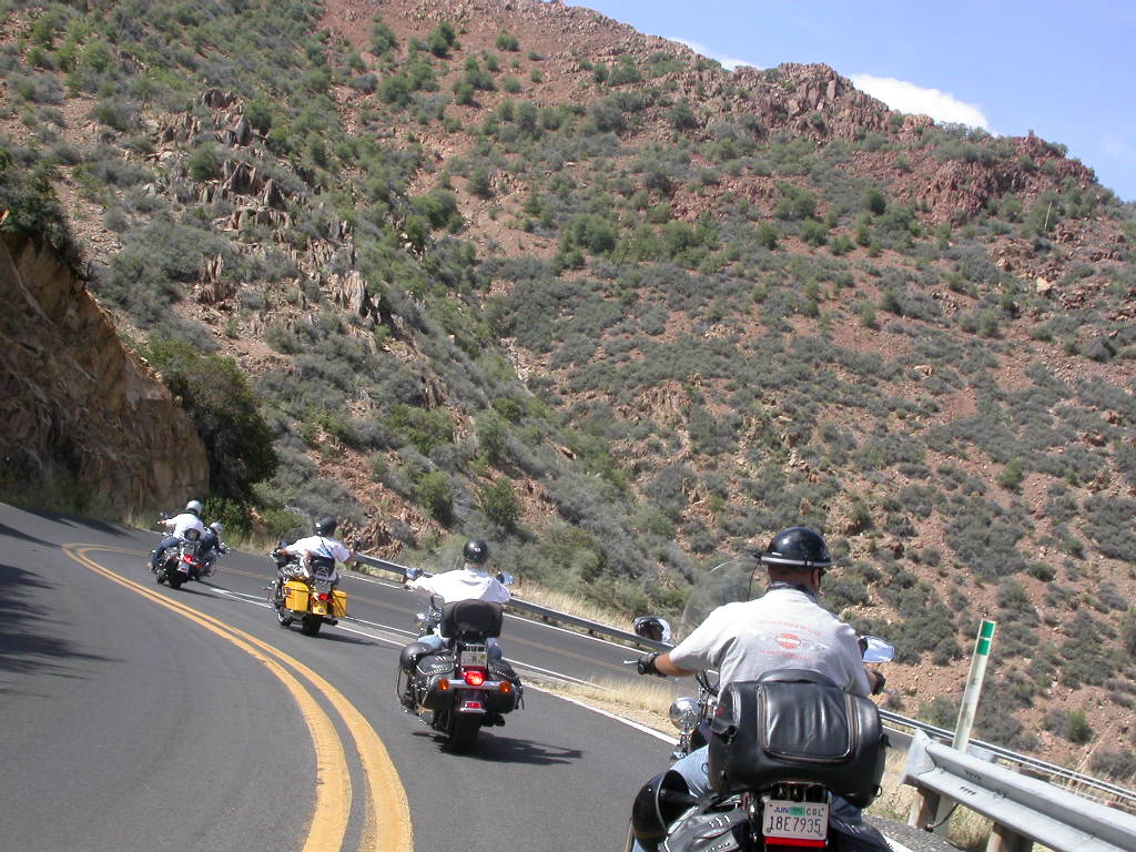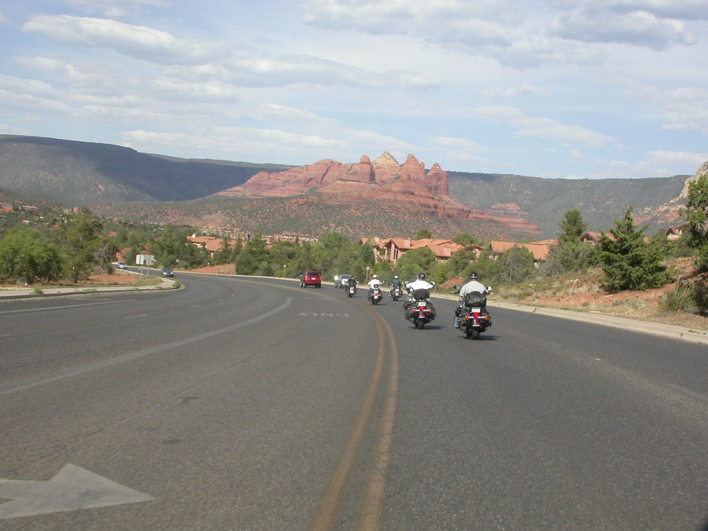 Danach flogen wir weiter tief Richtung Prescott und dann über eine schöne kurvenreiche Strecke Richtung Jerome kurz vor Sedona. Leider war hier dann gegenüber dem freien Jagen kollektives Gruppenfahren im 'Bergaufbremsertempo' angesagt, was dem Spass an dieser schönen Strecke doch etwas den Reiz nahm, dasselbe galt trotz Nachfrage zum freien Fahren auch für die Strecke von Sedona durch den malerischen Oak Creek Canyon nach Flagstaff. Bei zwei Kreuzungen wo man rechts abbiegen muss, könnte man sich ja verfahren ...