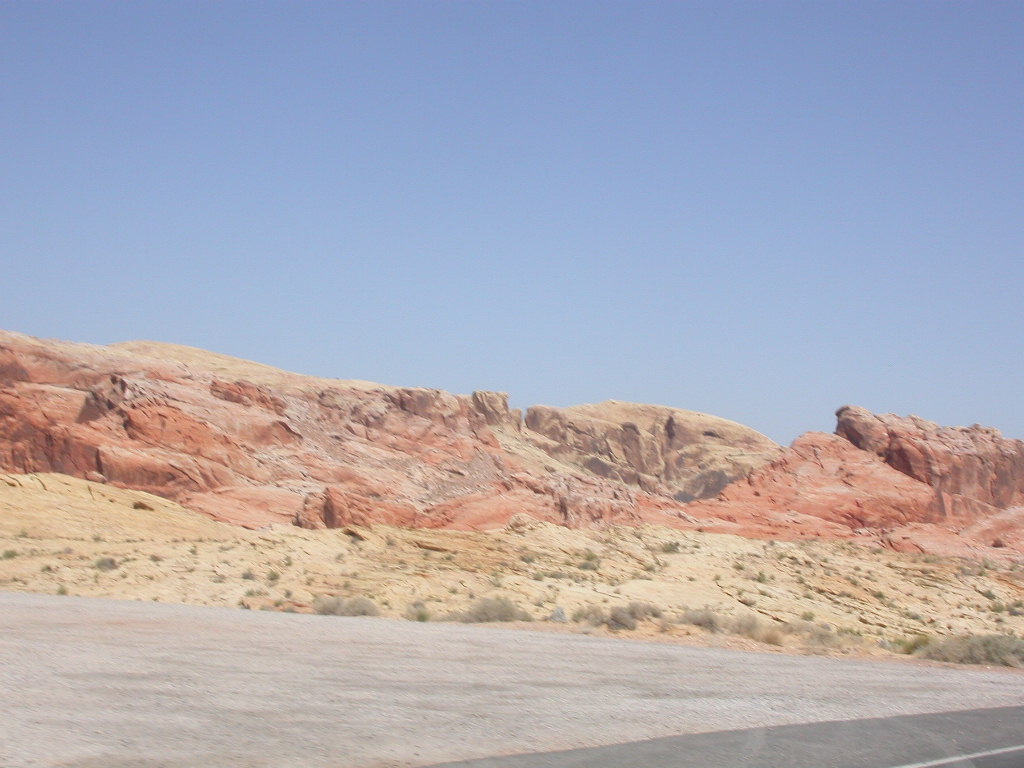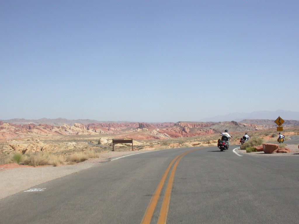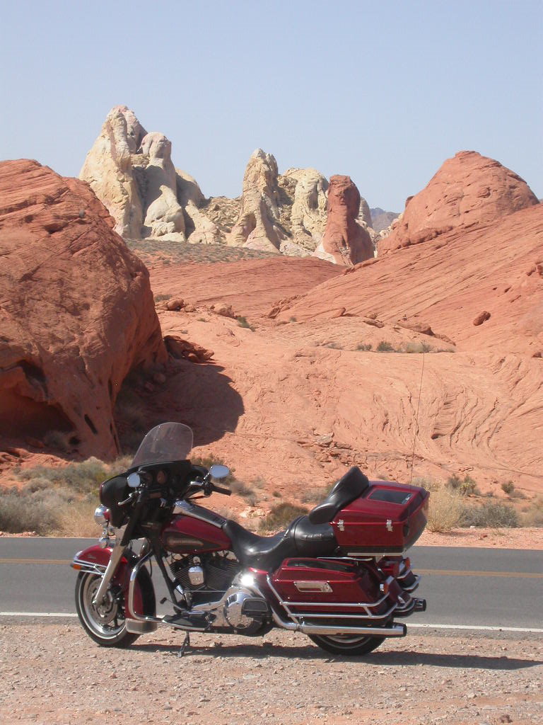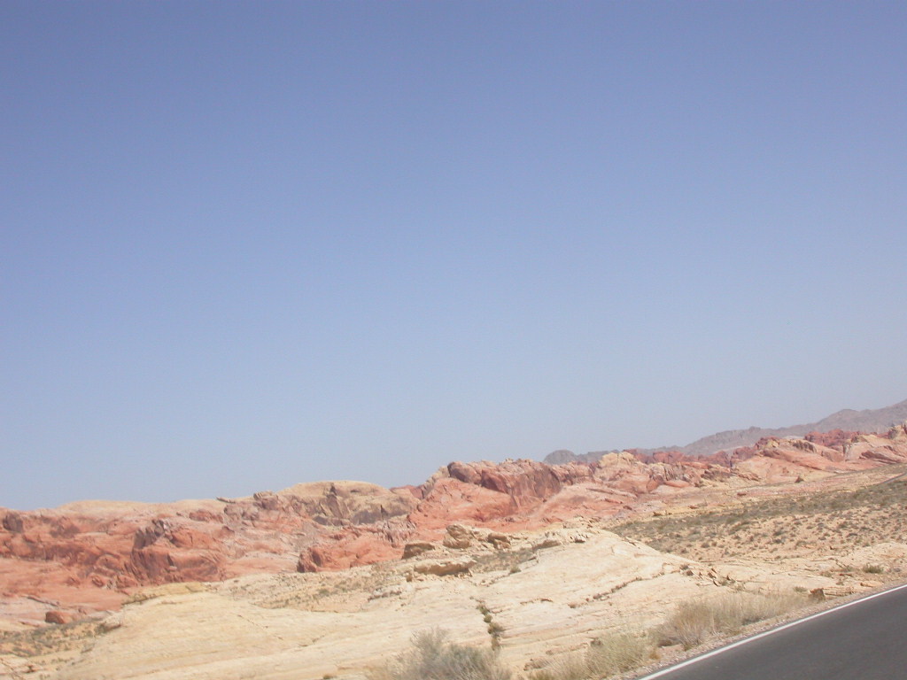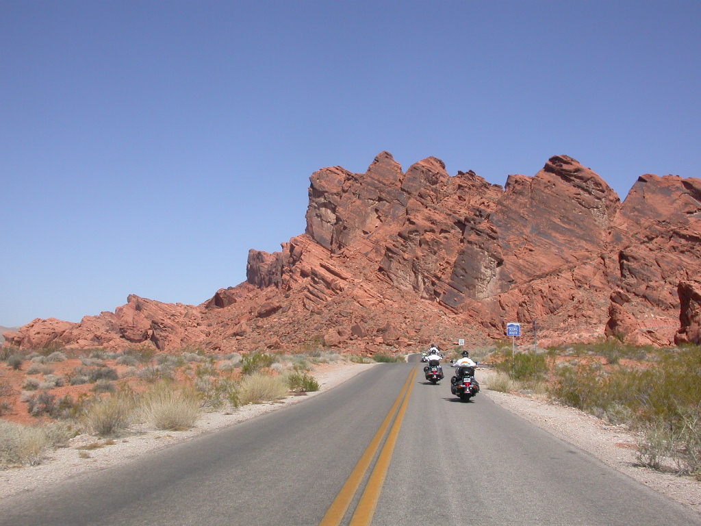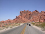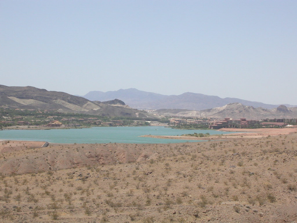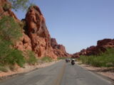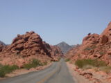 Wir entschlossen uns also trotz der zu erwartenden Hitzefahrt schon zu starten und durchfuhren als erstes das Valley of Fire. Einfach grandios diese roten Felsformationen, die sich links und rechts der Strasse auftürmen. Nach der Fahrt entlang des Lake Mead durchfuhren wir noch kurz die 'Millionärssiedlung' Lake Las Vegas.