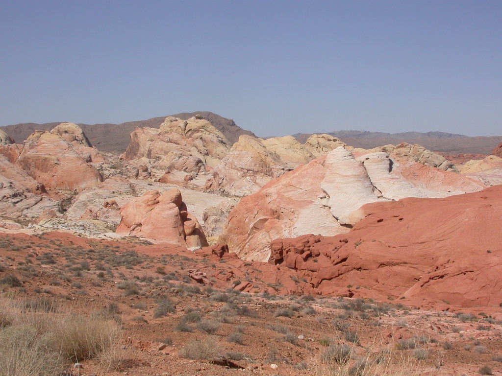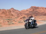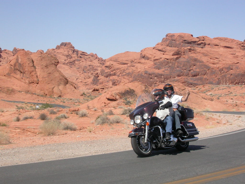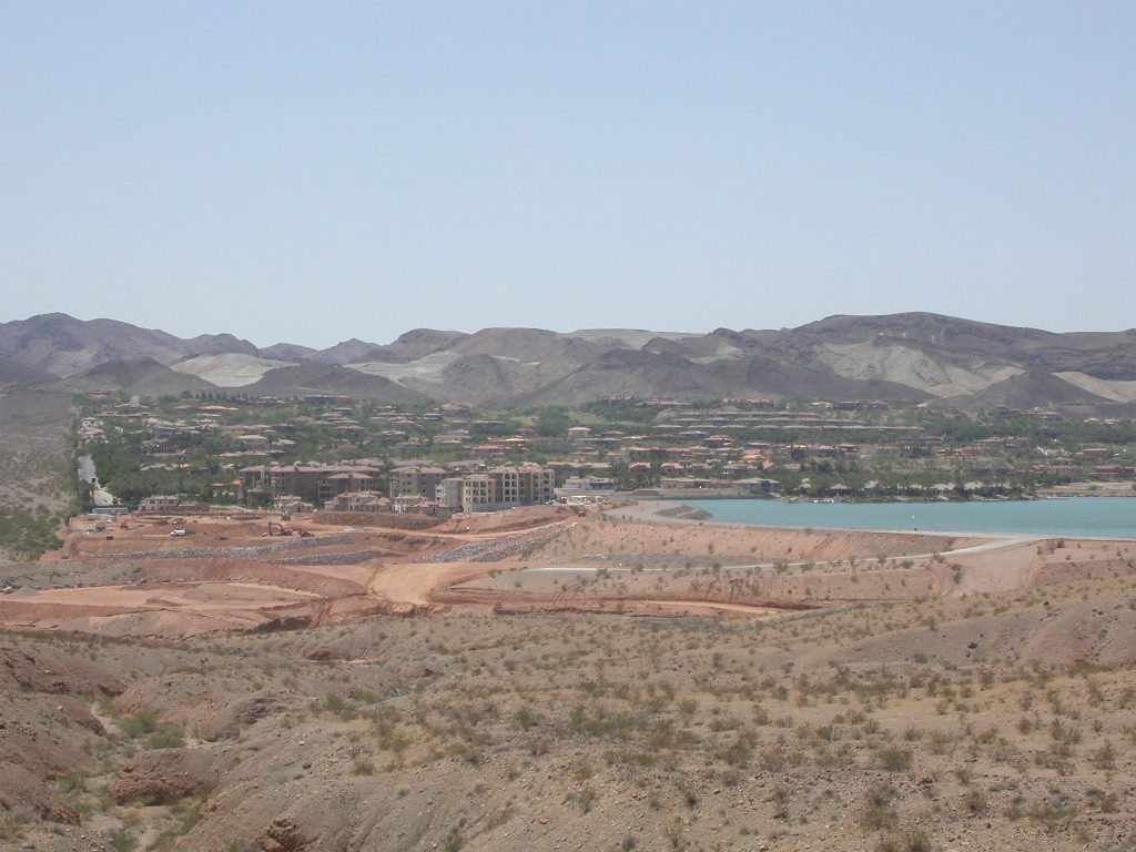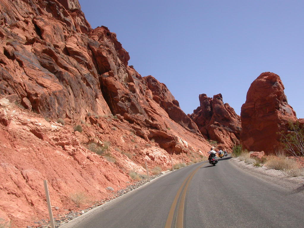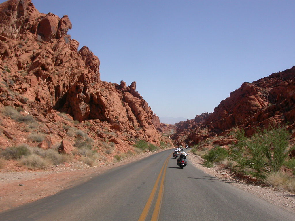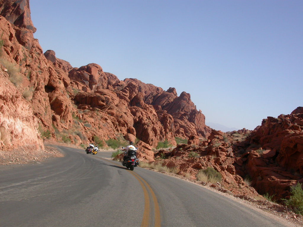Wir entschlossen uns also trotz der zu erwartenden Hitzefahrt schon zu starten und durchfuhren als erstes das Valley of Fire. Einfach grandios diese roten Felsformationen, die sich links und rechts der Strasse auftürmen. Nach der Fahrt entlang des Lake Mead durchfuhren wir noch kurz die 'Millionärssiedlung' Lake Las Vegas.