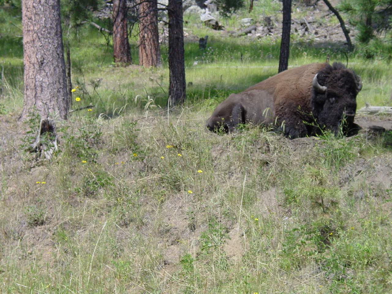 Zuerst besuchten wir das Crazy Horse Memorial. Hier bauen (sprengen) die Indianer für ihren Häuptling eine Gedenkstätte, die um ein Vielfaches grösser als Mt. Rushmore werden soll. Anschliessen war Genussfahren durch den Custer State Park angesagt, und dort gingen wir auf die Suche der Bisons. Wir hatten es schon bald aufgegeben sie zu finden, doch auf einmal waren sie da. Auf der Rückfahrt nach Hill City schauten wir noch kurz bei den vier ehemaligen Präsidenten der Staaten vorbei.
