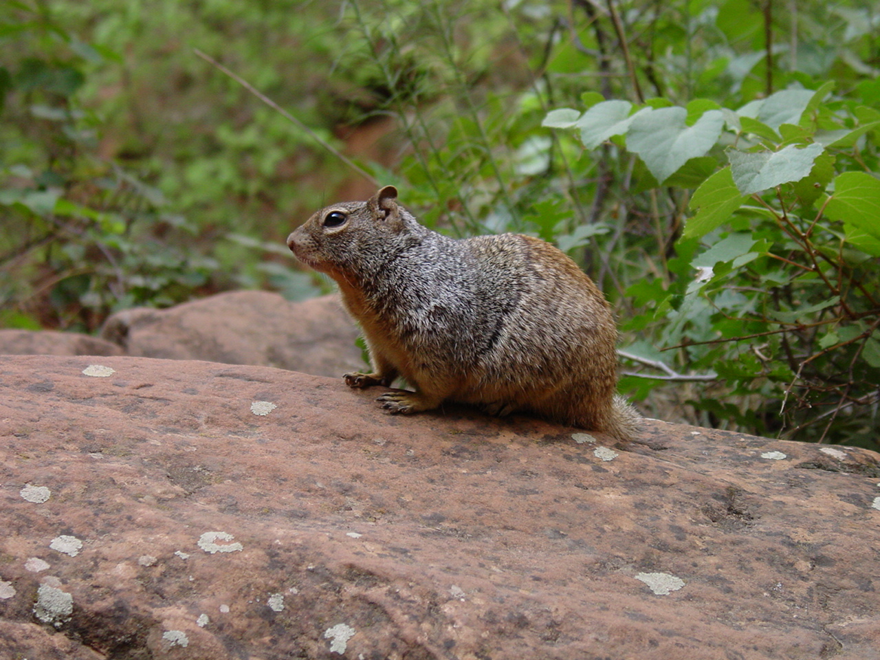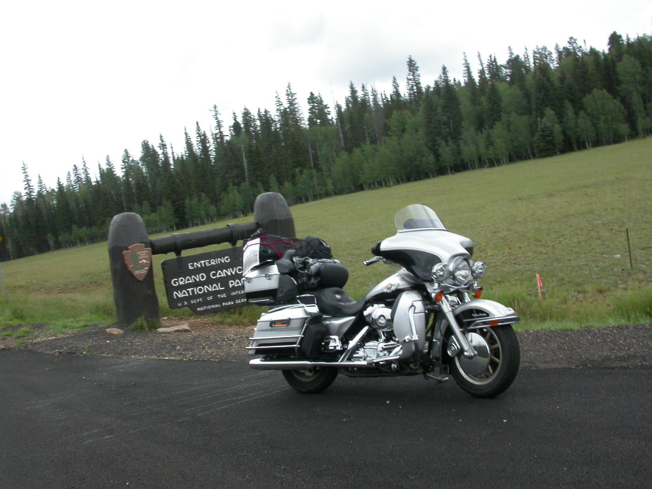 Da dies aber auf englisch geschrieben stand und von 'privat Car' die Rede war, nahmen wir an, dass das für uns nicht gilt und fuhren auf leerer Strasse in den Zion Park. Ab und zu begegnete uns der Bus mit den andern Besuchern und der Chauffeur winkte / grüsste uns immer höflich. Oder wollten sie uns mit ihren Handzeichen auf unser verbotenes Fahren hinweisen ? Egal, wir fuhren weiter und nach der Besichtigung ging's weiter Richtung Süden übers Kaibab Plateau zum Grand Canyon.