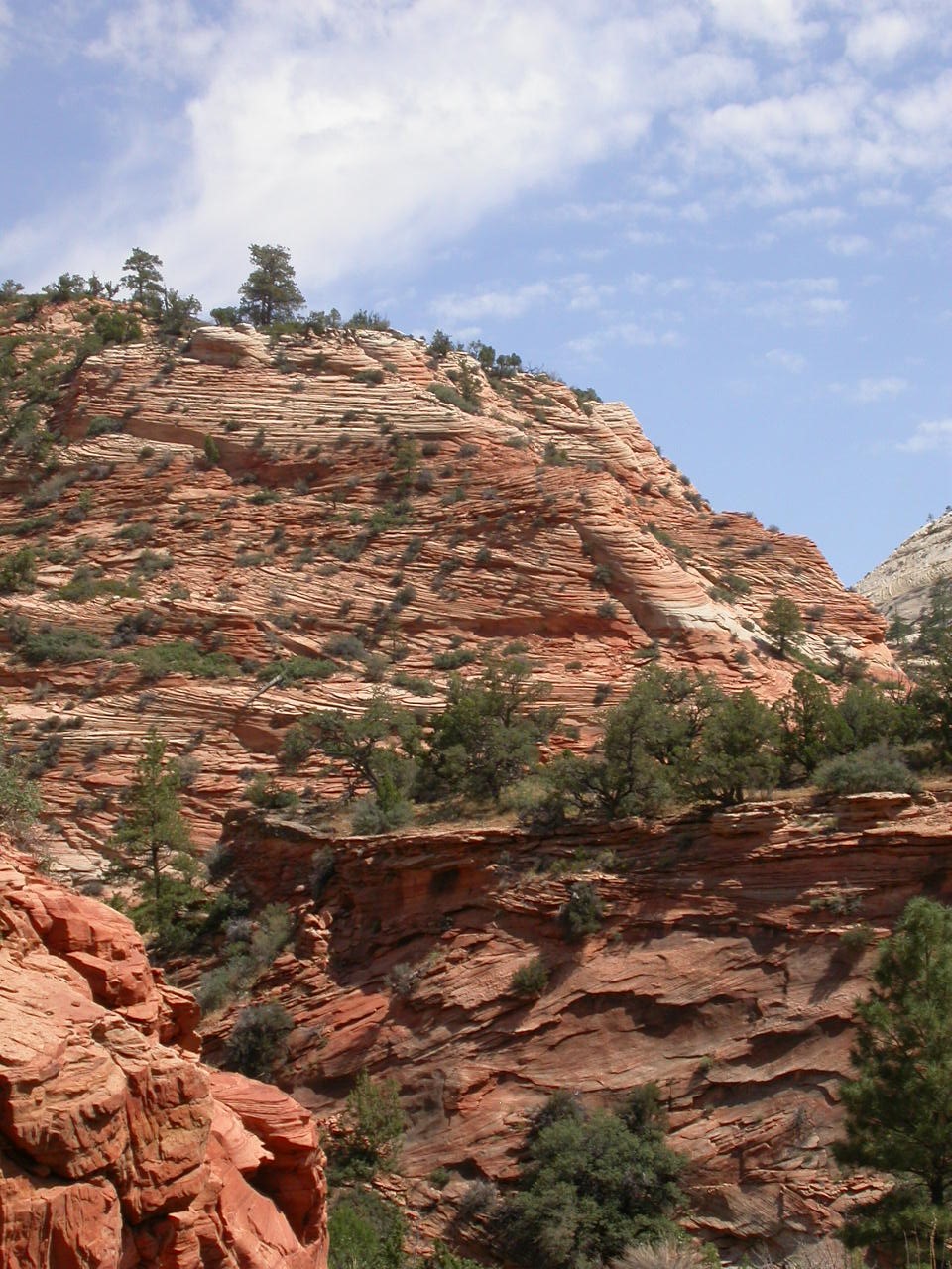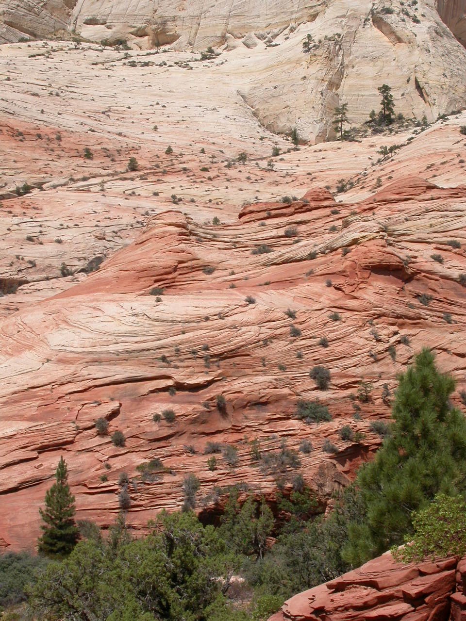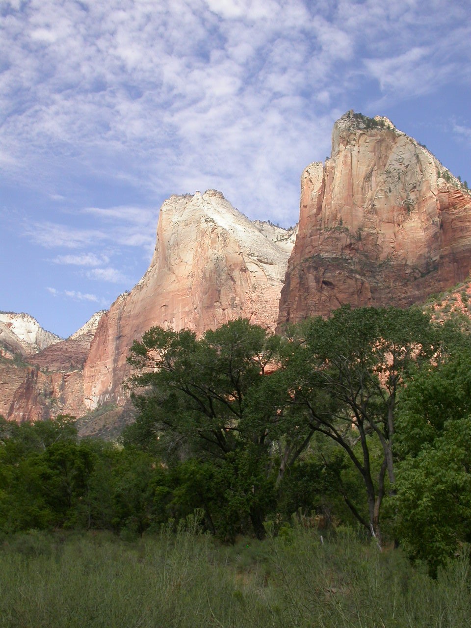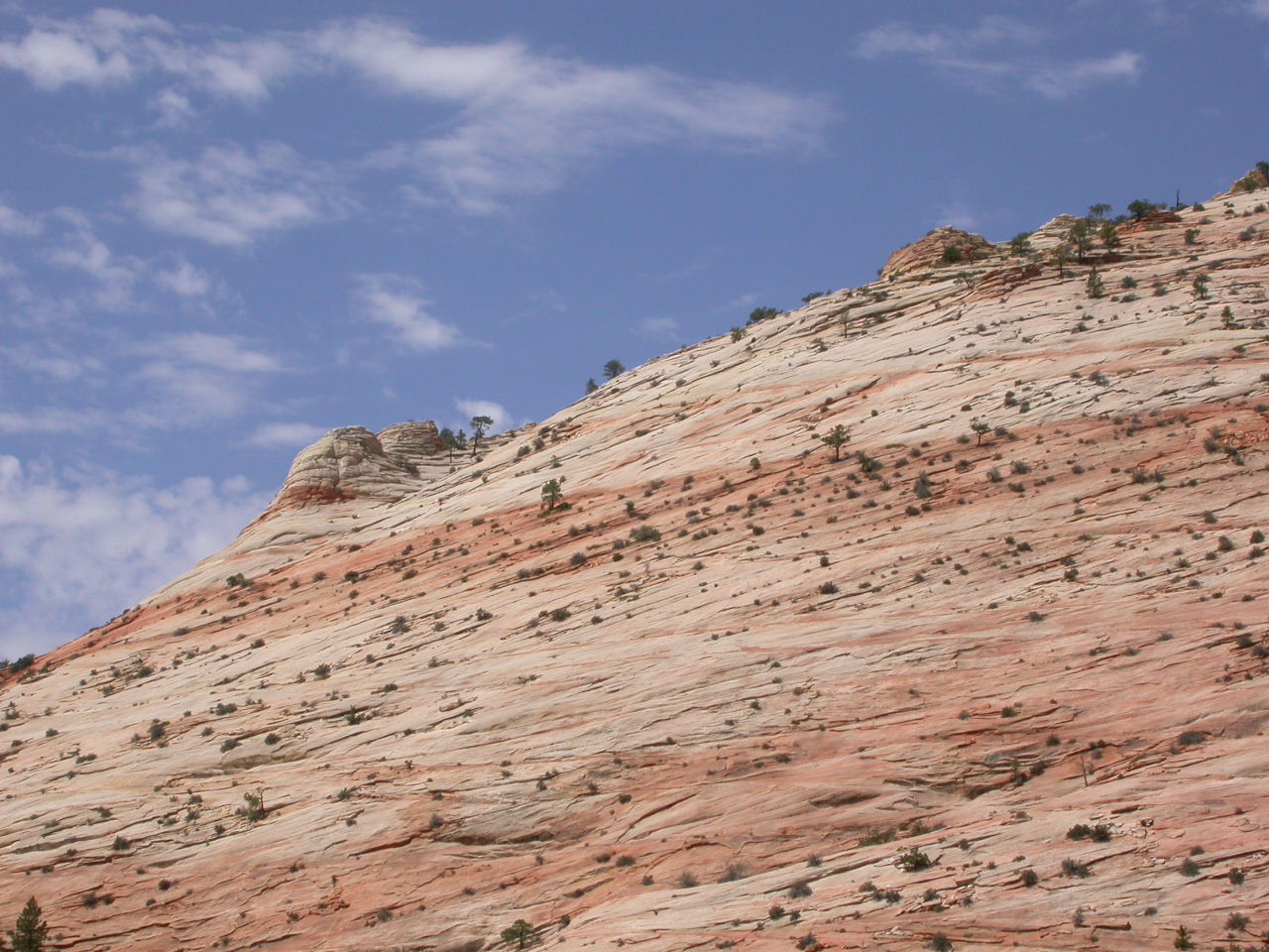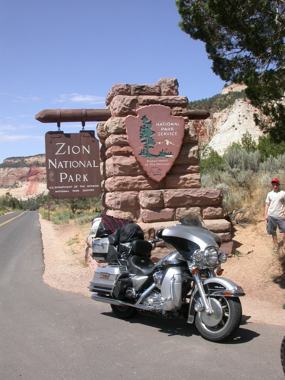 Durch den Dixie Nationalforest erreichten wir den Zion Nationalpark. Seit meinem letzten Besuch 1997 hat sich da die ganze Zugangsregelung geändert. Mit den Privatfahrzeugen ist es nämlich nun verboten in den Zion Park hinein zu fahren, dafür stehen Touristenbusse bereit.