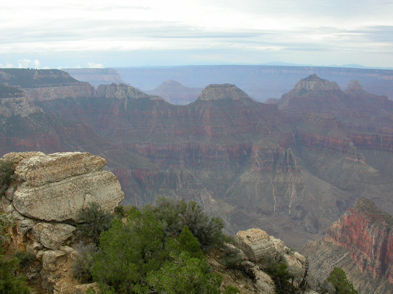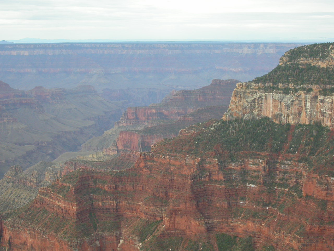 Entgegen dem üblichen und bekannten Ort, dem South Rim, mit seinen touristischen Einrichtungen, wählten wir den North Rim als Ziel. Hier in der Lodge bezogen wir unsere Blockhäuser für die Übernachtung und anschliessend liessen wir die nahe Naturgewalt auf uns wirken. Der North Rim ist meiner Meinung nach viel eindrücklicher, denn man ist hier direkt am Abgrund und die Schluchten und Berge sind hier viel näher und gewaltiger als am South Rim.