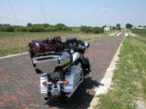 Nun ging's los, doch zuerst mussten wir unsere Maschinen holen. Andy, Joël und Urs beim Frachtbüro der SwissCargo und ich beim Händler in Villa Park. Zurück beim Hotel hiess es das Gepäck festzubinden und nun waren wir abfahrbereit.