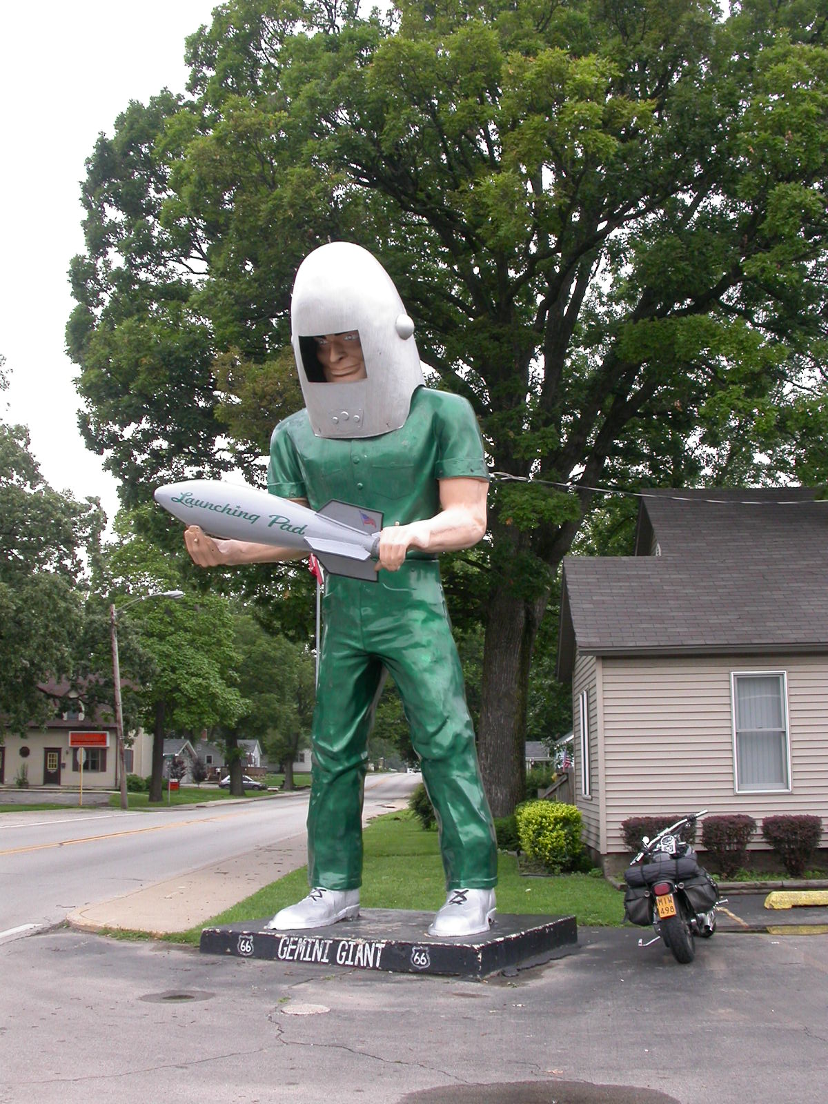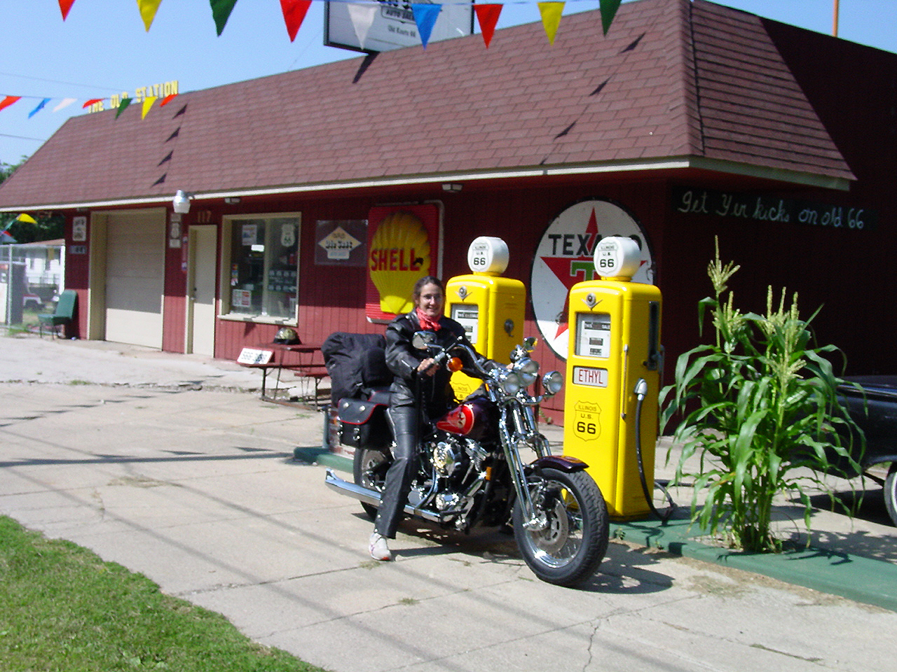 Chicago verliessen wir auf der 'Toll-Road' und nicht über die Route 66, denn sonst hätten wir zuviel Zeit im Strassen- und Ampelgewirr verloren. Schon bald trafen wir ausserhalb der Stadt auf die 'Route 66', welche wir in den nächsten zwei Tagen befuhren. Entlang der Strecke gab es viele Fotosujets (alte Tankstellen, Gebäude, Gift-Shops, etc.), die immer wieder zum Anhalten aufforderten.