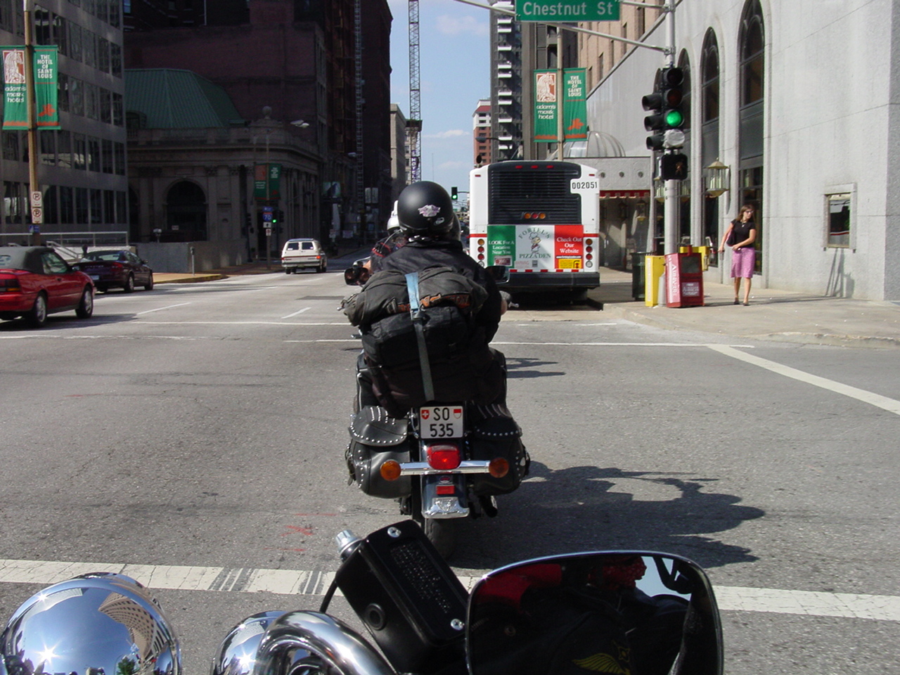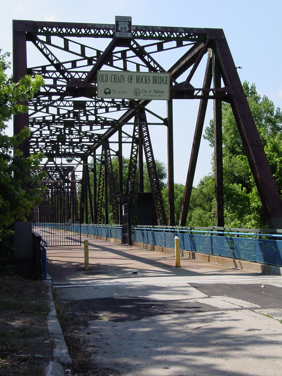 Am ersten Tag gelangten wir bis Mc Lean, wo wir im bekannten Dixies Truck Stop den Abend verbrachten. Weiter nach St. Louis ging's dann über ganz alte Stücke der Route 66, und die Originalbrücke vor St. Louis war leider nicht mehr befahrbar.