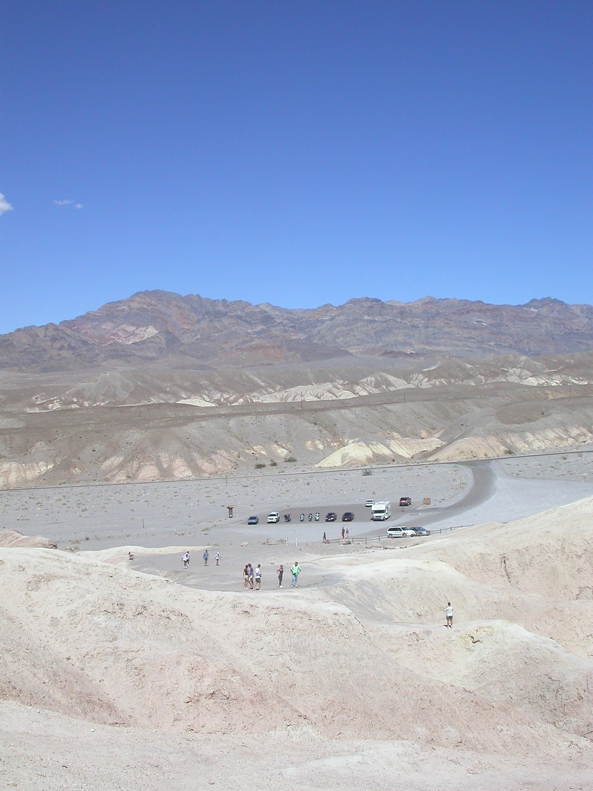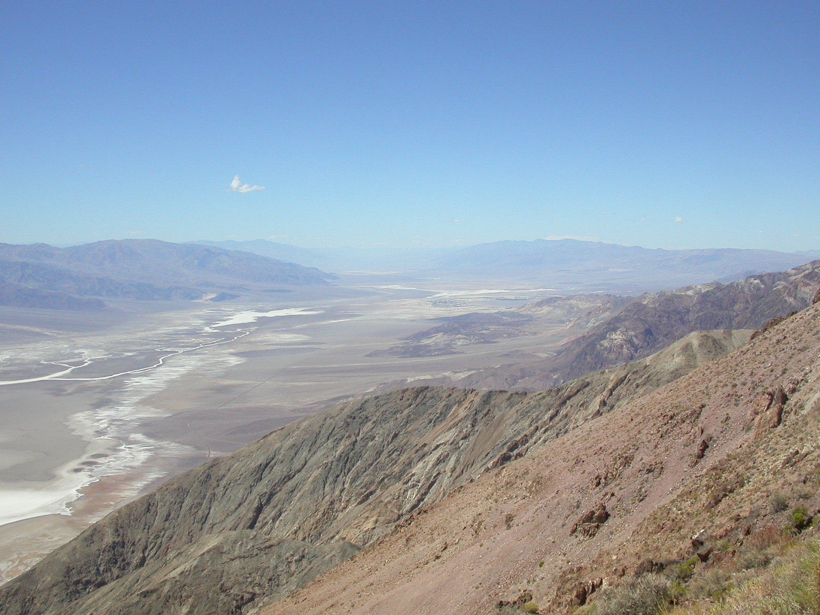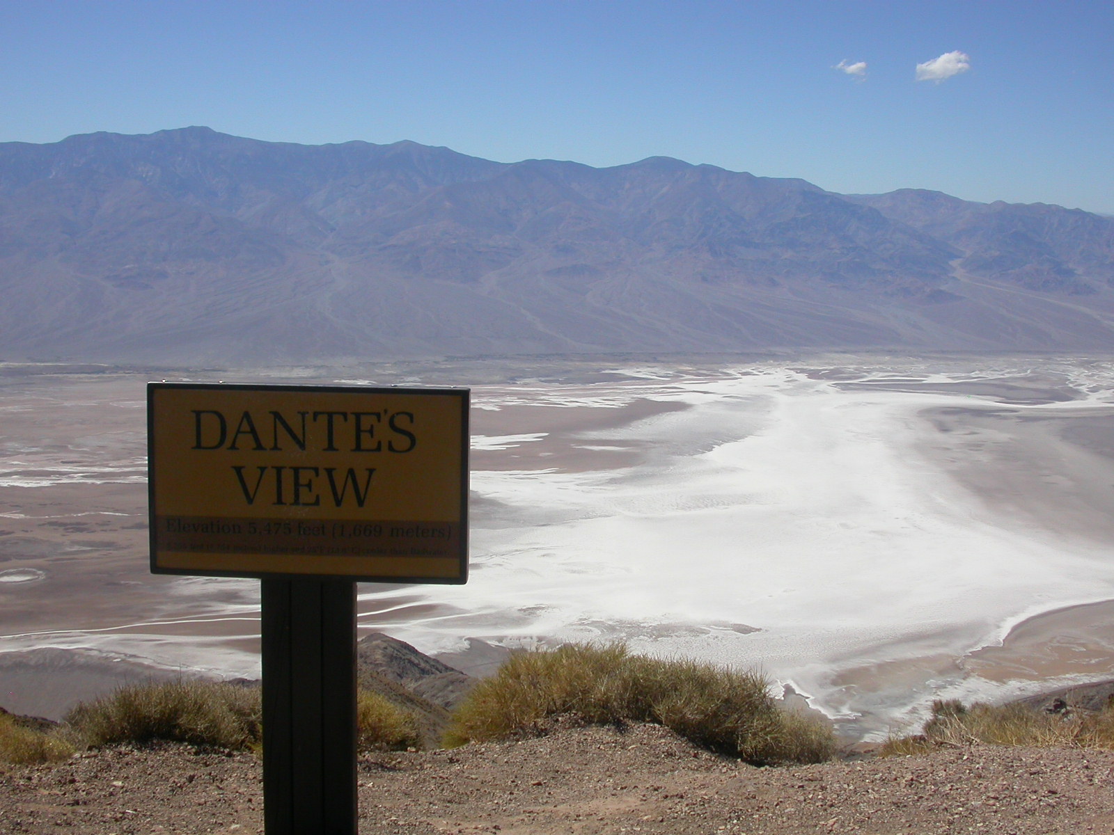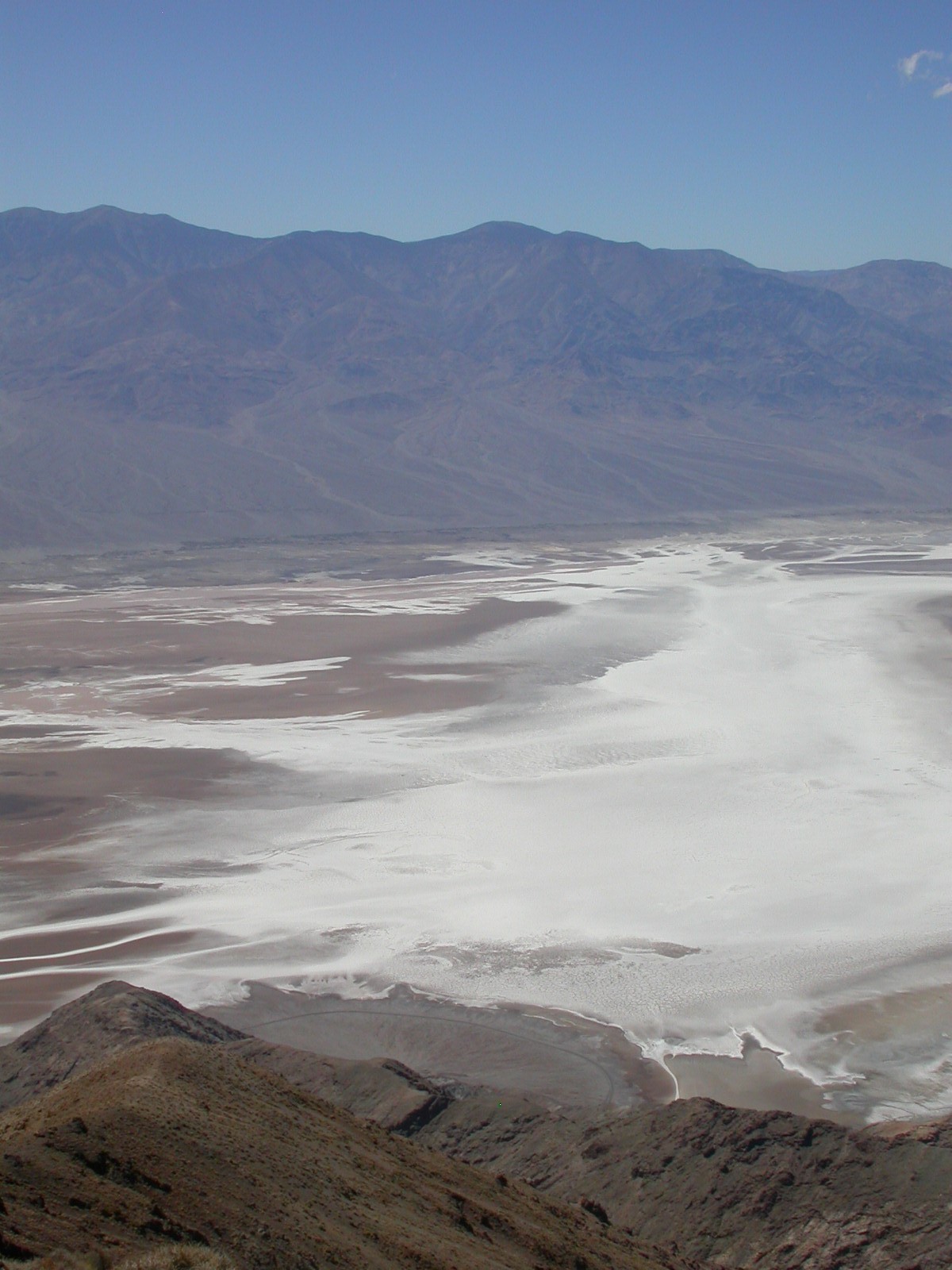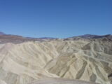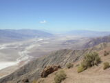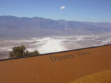 Die Lichterwüste Las Vegas verliessen wir durch den Red Rock Canyon um in die richtige Wüste, in das Tal des Todes zu gelangen. Versorgt mit reichlich Mineralwasser fuhren wir zum ersten Aussichtpunkt 'Dantes View' auf 1669 MüM. Von hier oben hat man eine imposanten Überblick über das Death Valley und hinunter in die flimmernde Hitze. Auf dieser Höhe war es noch angenehm Frisch, doch mit jedem Meter, den wir weiter in das Tal hinunterfuhren wurde es heisser.