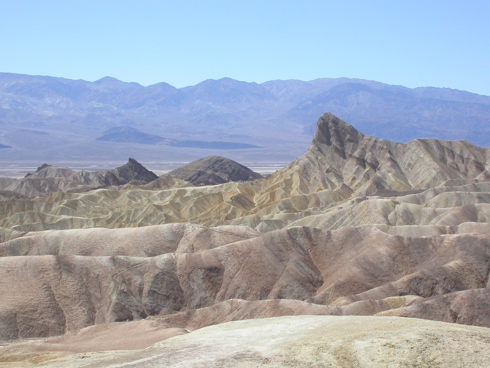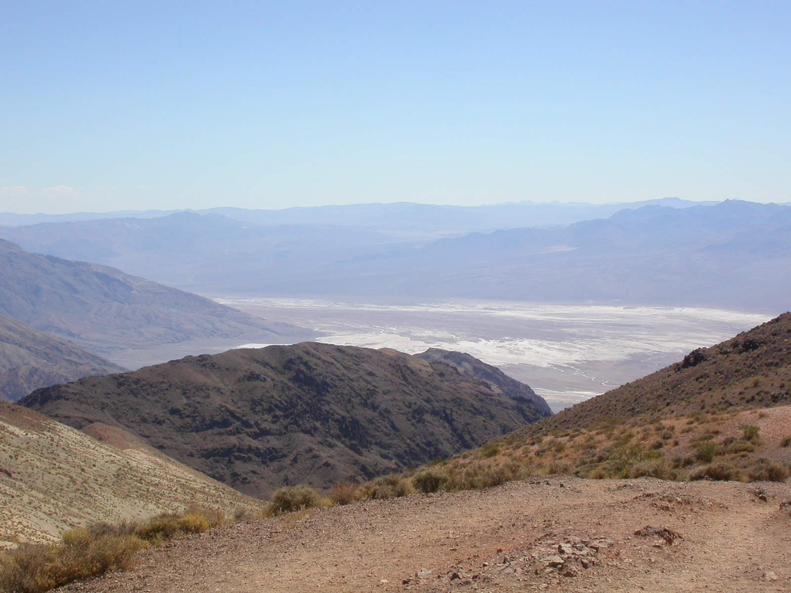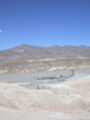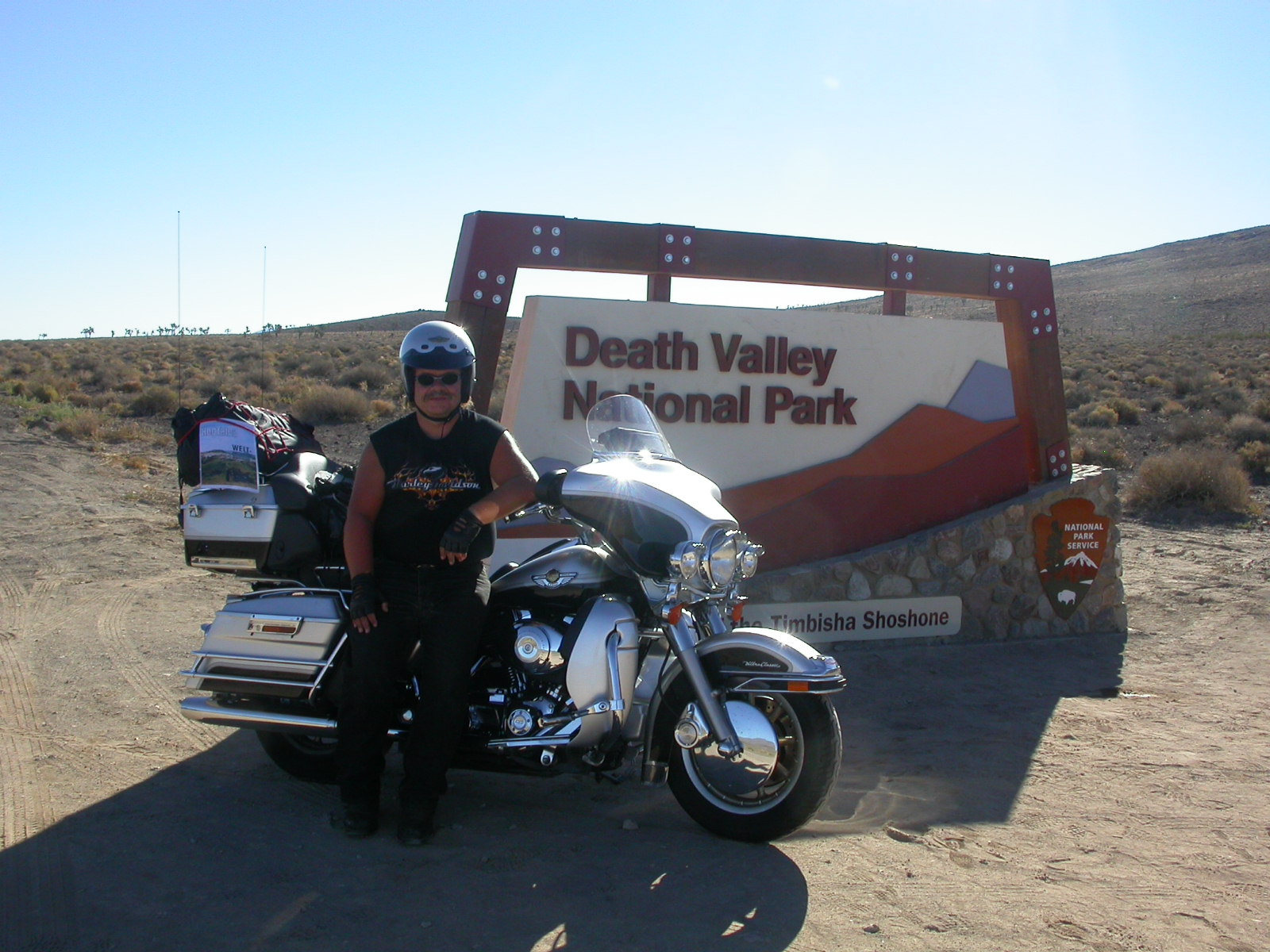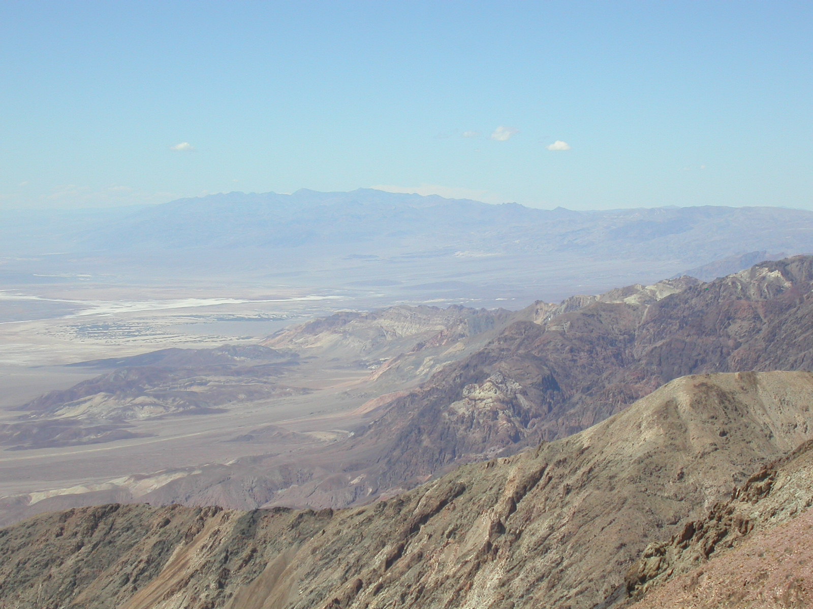 Die Lichterwüste Las Vegas verliessen wir durch den Red Rock Canyon um in die richtige Wüste, in das Tal des Todes zu gelangen. Versorgt mit reichlich Mineralwasser fuhren wir zum ersten Aussichtpunkt 'Dantes View' auf 1669 MüM. Von hier oben hat man eine imposanten Überblick über das Death Valley und hinunter in die flimmernde Hitze. Auf dieser Höhe war es noch angenehm Frisch, doch mit jedem Meter, den wir weiter in das Tal hinunterfuhren wurde es heisser.