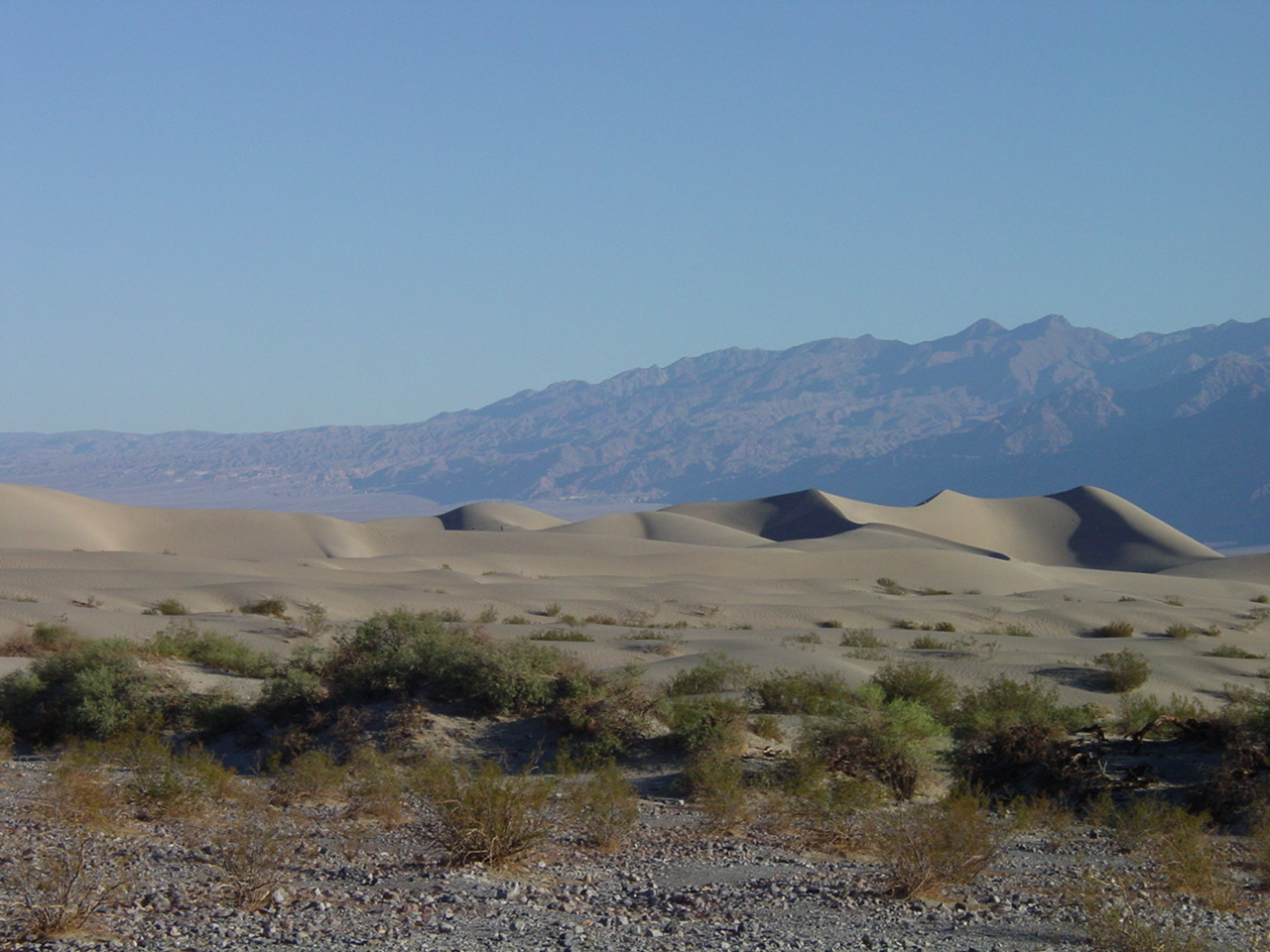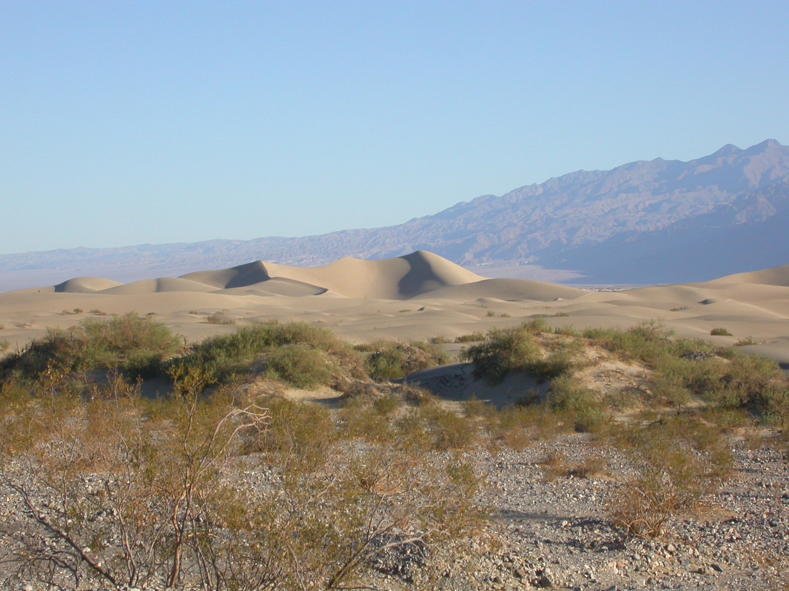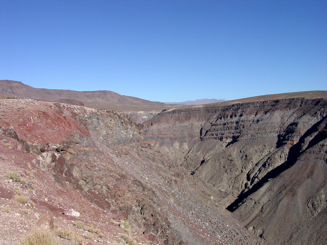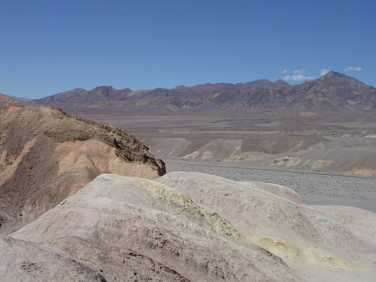 Die Lichterwüste Las Vegas verliessen wir durch den Red Rock Canyon um in die richtige Wüste, in das Tal des Todes zu gelangen. Versorgt mit reichlich Mineralwasser fuhren wir zum ersten Aussichtpunkt 'Dantes View' auf 1669 MüM. Von hier oben hat man eine imposanten Überblick über das Death Valley und hinunter in die flimmernde Hitze. Auf dieser Höhe war es noch angenehm Frisch, doch mit jedem Meter, den wir weiter in das Tal hinunterfuhren wurde es heisser.