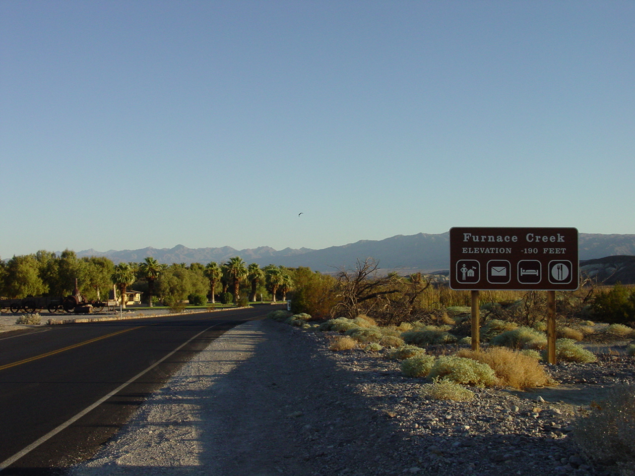 Nach dem Zimmerbezug in Furnace Creek hatte niemand mehr Lust nach Badwater, dem tiefsten Punkt 85 Meter unter Meereshöhe zu fahren, es war schlicht zu heiss und wir kühlten lieber unsere durstigen Kehlen.