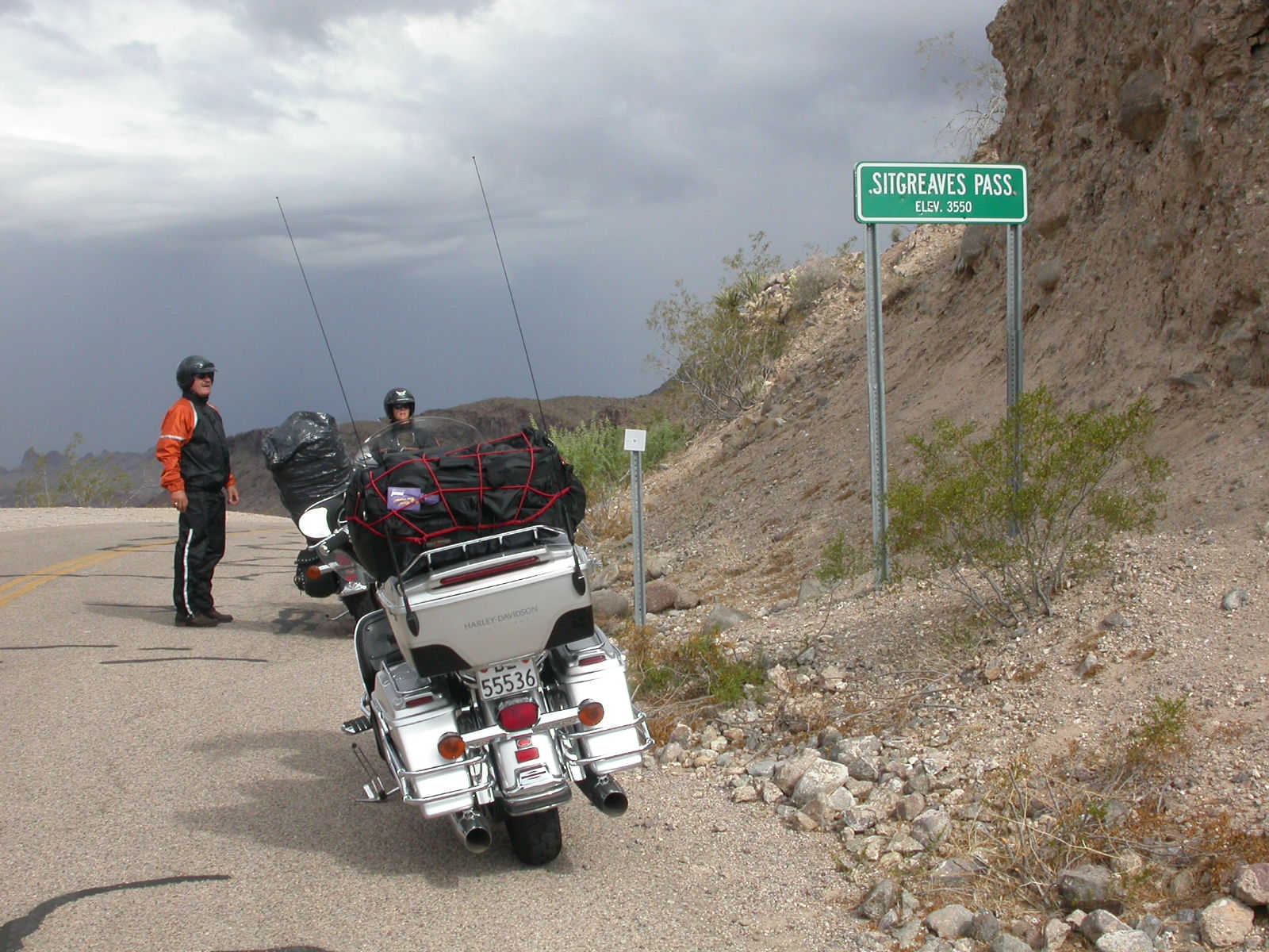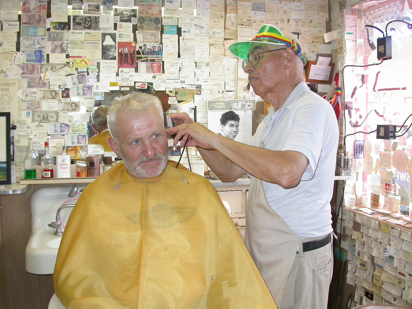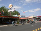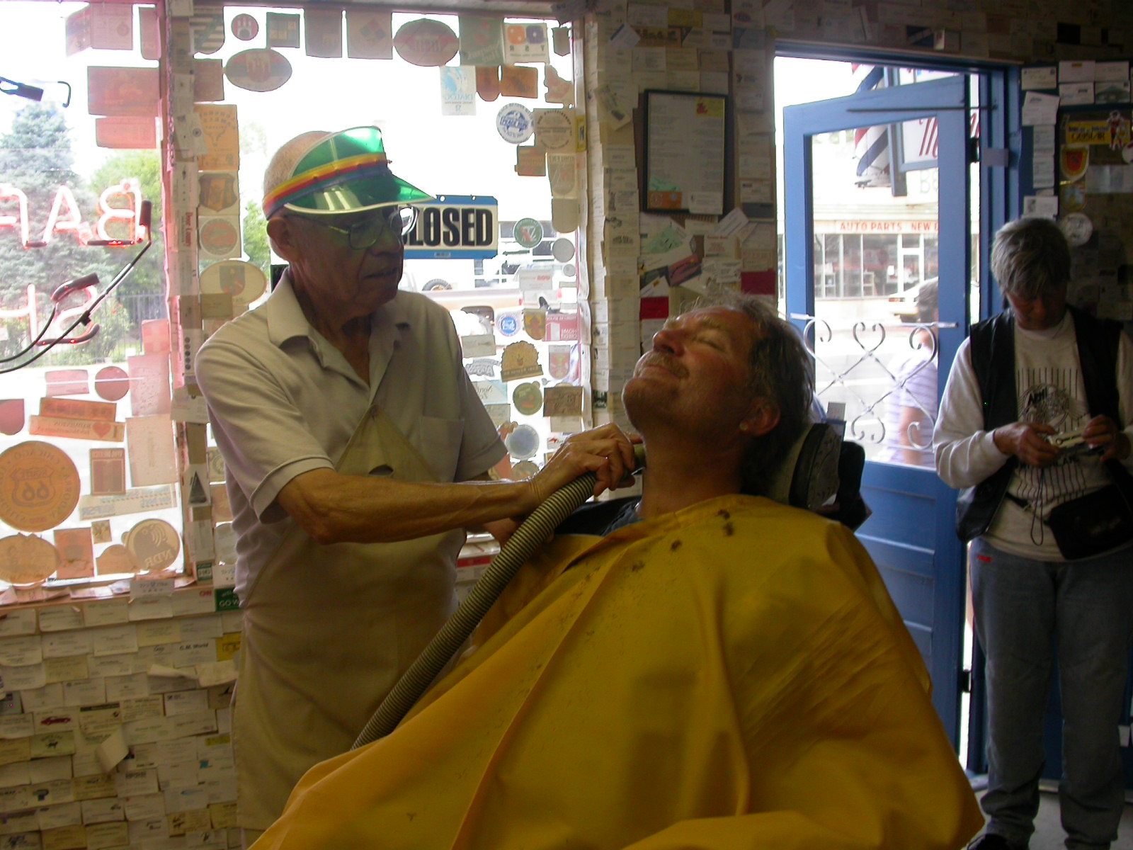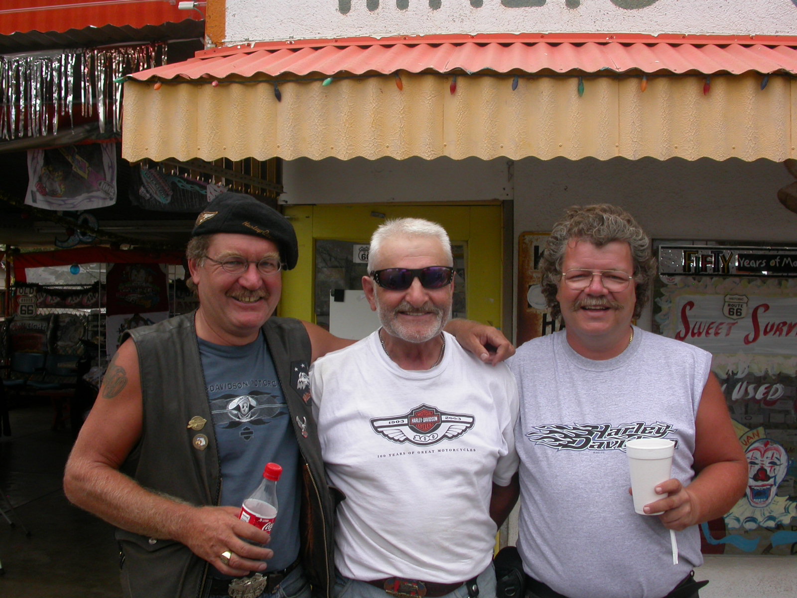 In Seligman biegt die Route 66 von der Interstate ab und hier ist das längste noch erhaltene Teilstück zu befahren. Doch bevor man dieses Teilstück befährt lohnt sich ein Halt bei den Gebrüder Delgadillo, den 'Rettern' der Route 66 in Arizona. In Juan's Snow Cap Drive-In kann man sich Verpflegen, doch Vorsicht vor seinen Spässen. Im Barber- und Gift Shop von Angel gibt's Souveniers und er beseitigt auf Wunsch auch den wilden Bart- und Haarwuchs. Diese Gelegenheit liessen wir uns nicht nehmen und nahmen auf dem Barbierstuhl für eine Behandlung Platz. Plötzlich gab es eine grosse Aufregung und ein ganzer Pulk Harleys fuhr vor den Lokalen auf. Darunter war auch Willy G. Davidson mit seiner Familie. Sie waren auf dem 'Ride Home', der Sternfahrt zu Harleys 100tem Geburtstag. Wir kamen mit ihnen in Kontakt und es war ganz interessant mal mit den Fabrikbesitzern direkt zu sprechen.