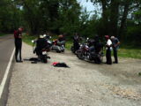 Auf den Spuren von 'Louis und Clark' fuhren wir entlang des Missouri Richtung Kansas City. Unterwegs hatte plötzlich Andys Springer keinen Strom mehr und wir waren froh, dass der nächste Händler nicht all zu weit weg war. Doch zu früh gefreut, er hatte keine Möglichkeit Andy's Bike zu transportieren, also musste zuerst ein Abschleppdienst organisiert werden.