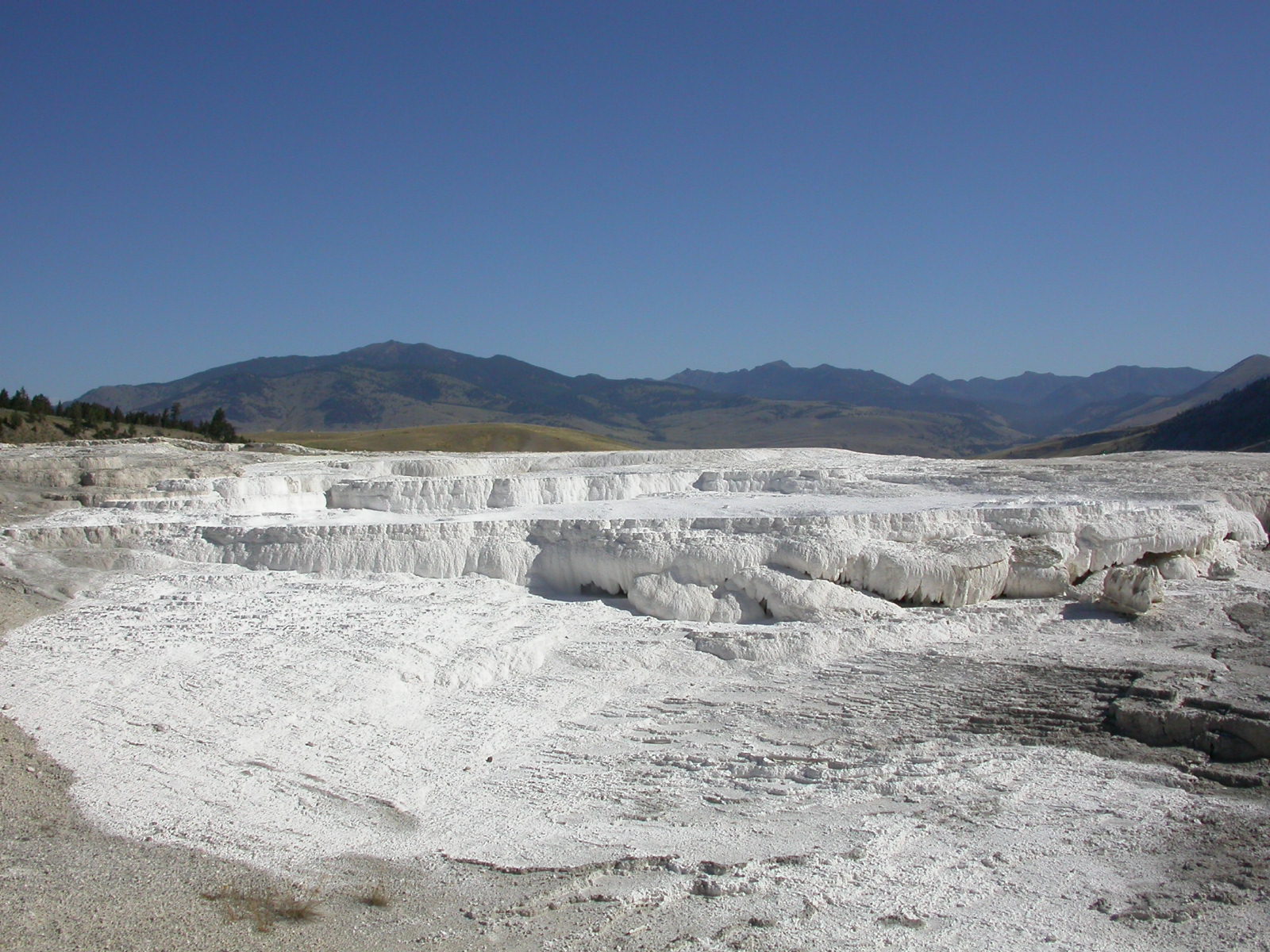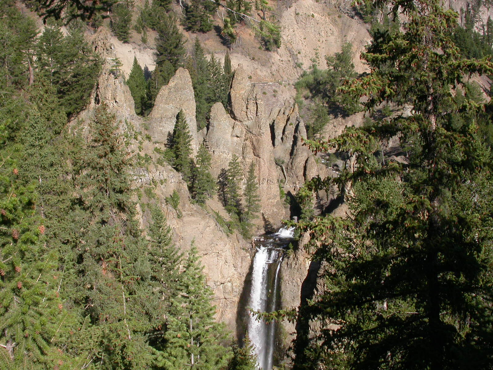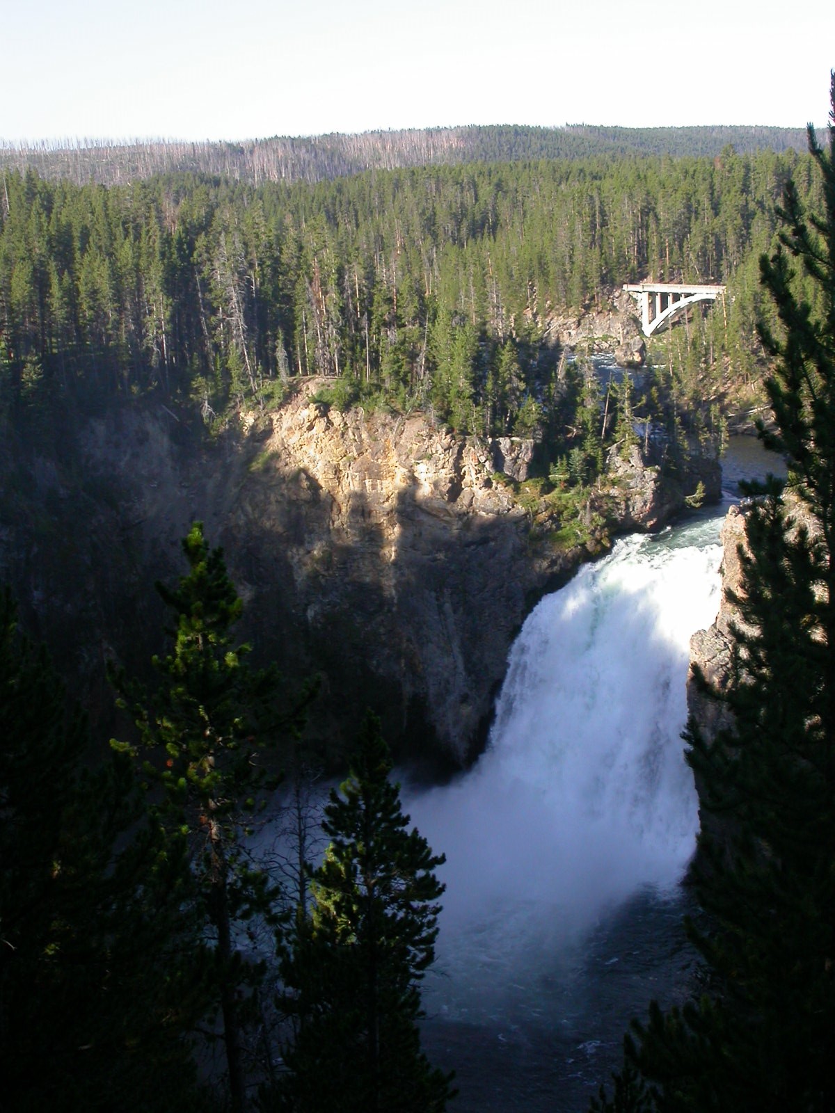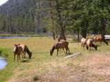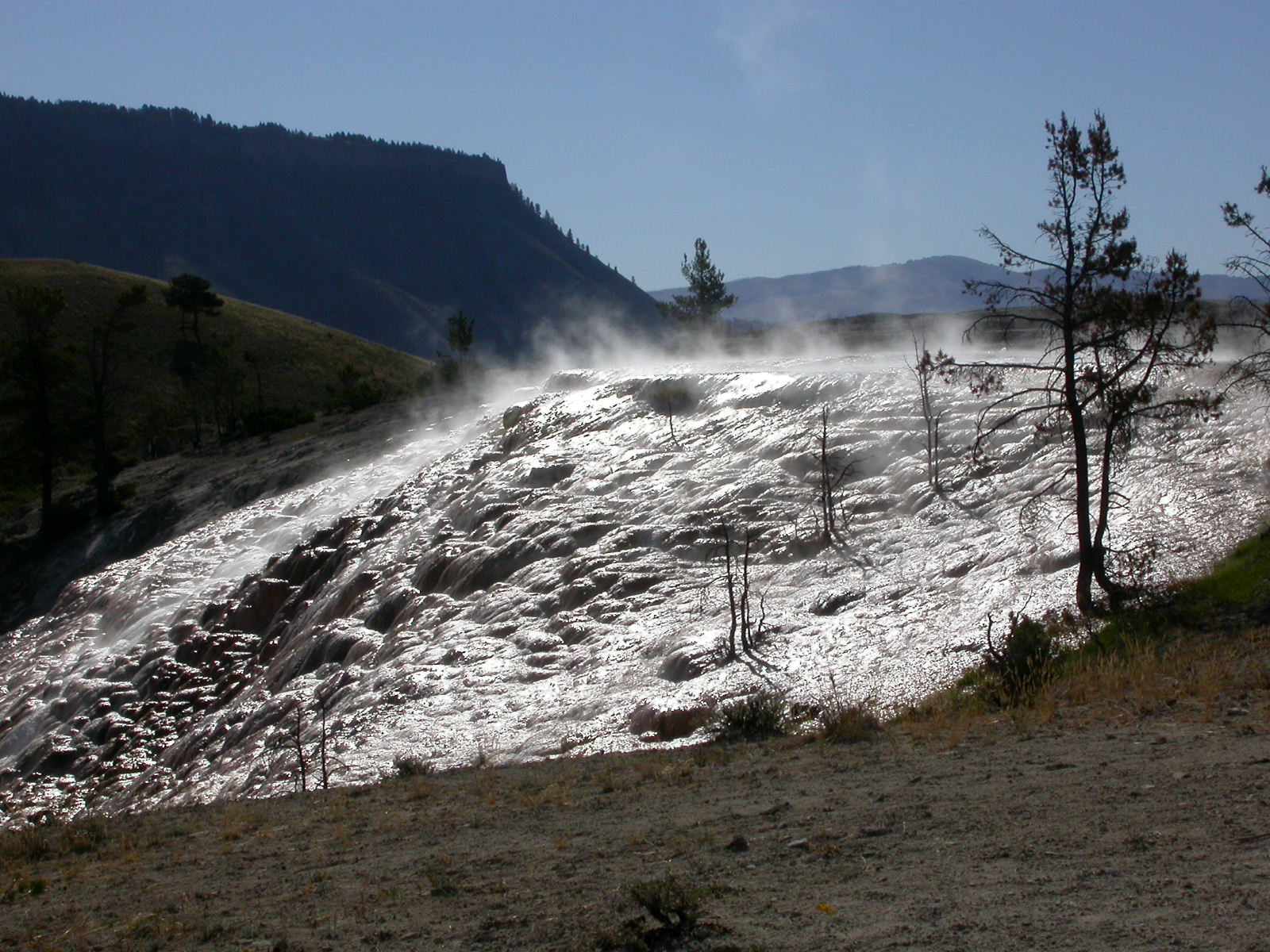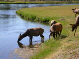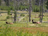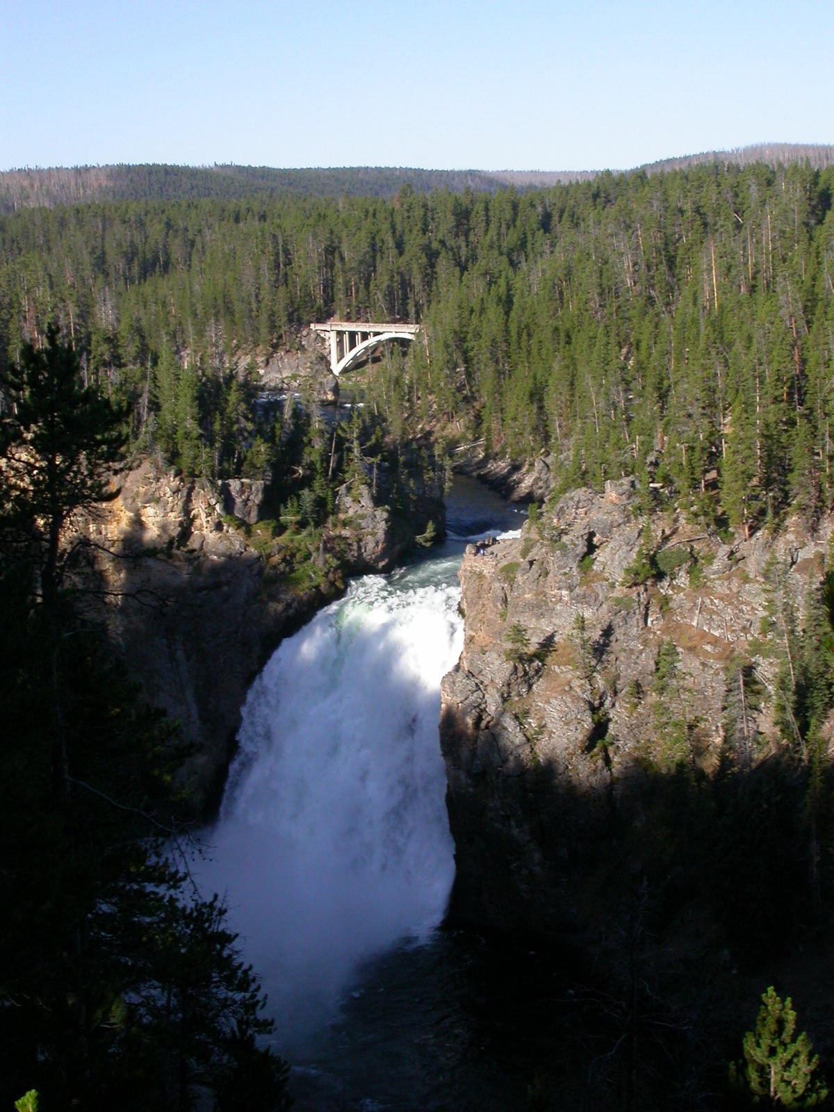 Hier im Yellowstone Nationalpark war Natur pur angesagt. Auf der grossen Rundfahrt (ca. 220 km) werden dem Besucher unvergessliche Bilder geboten. Wilde Tiere wie Bisons, Hirsche, Bären, etc. über die heissen vulkanischen Quellen mit den farbenprächtigen Steinablagerungen bis zum aktiven Old Faithful Geisyr. Dieser schiesst im Stundenrhytmus seine Fontäne in die Höhe, wobei er es dabei recht spannend macht. Das ganze Spektakel dauert ca. eine viertel stunde und jedesmal wenn er ein bisschen 'hustet', meint der Zuschauer es geht los und schiesst Foto um Foto, bis er sich nach zahlreichen 'Fehlalarmen' endlich in die Höhe ergiesst.