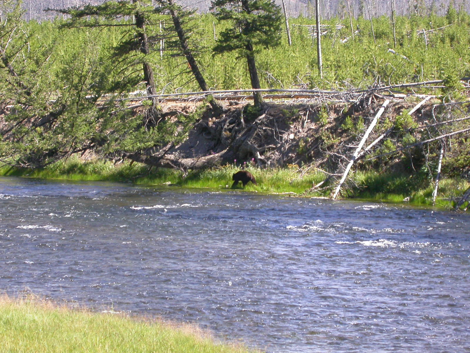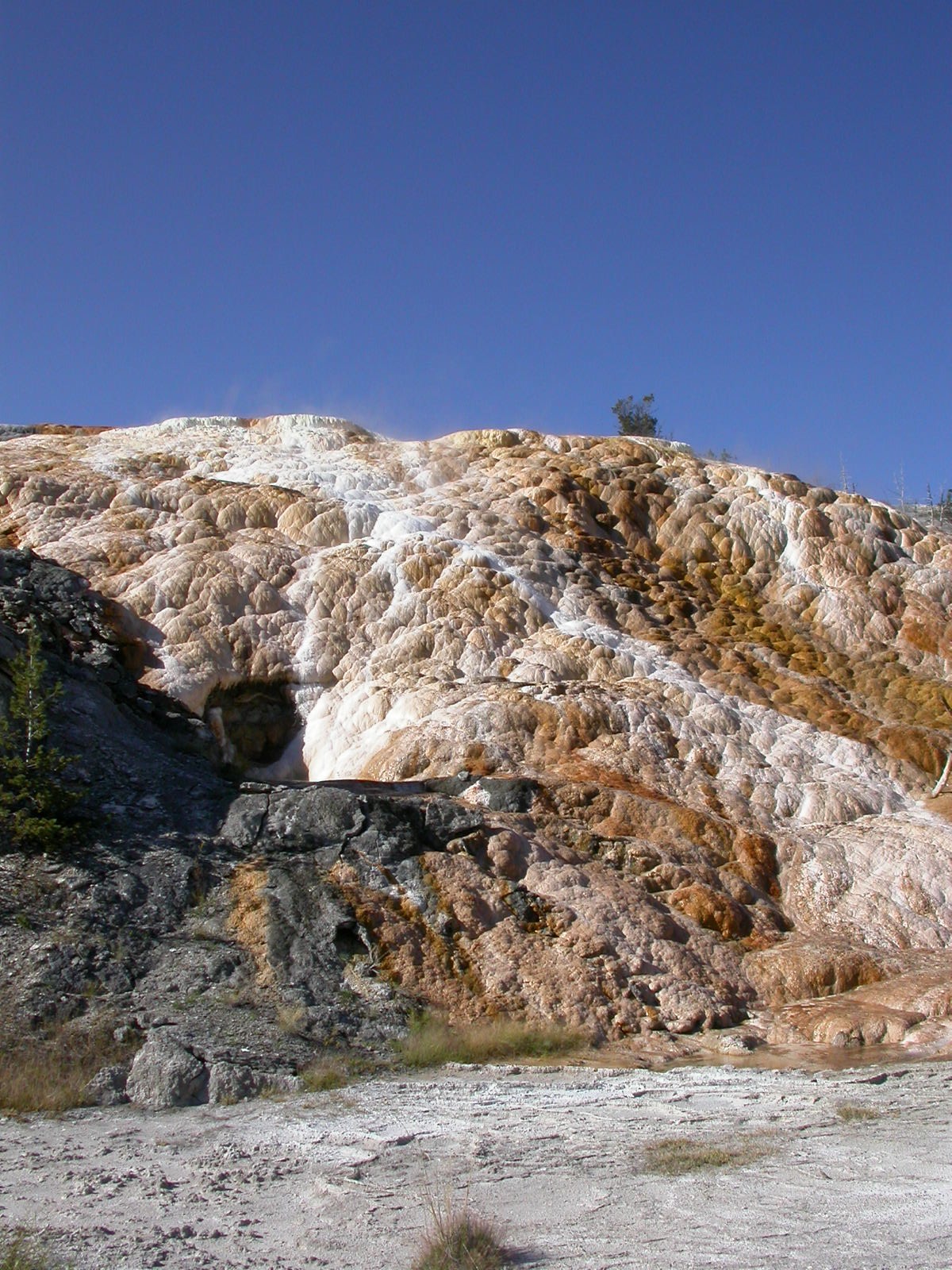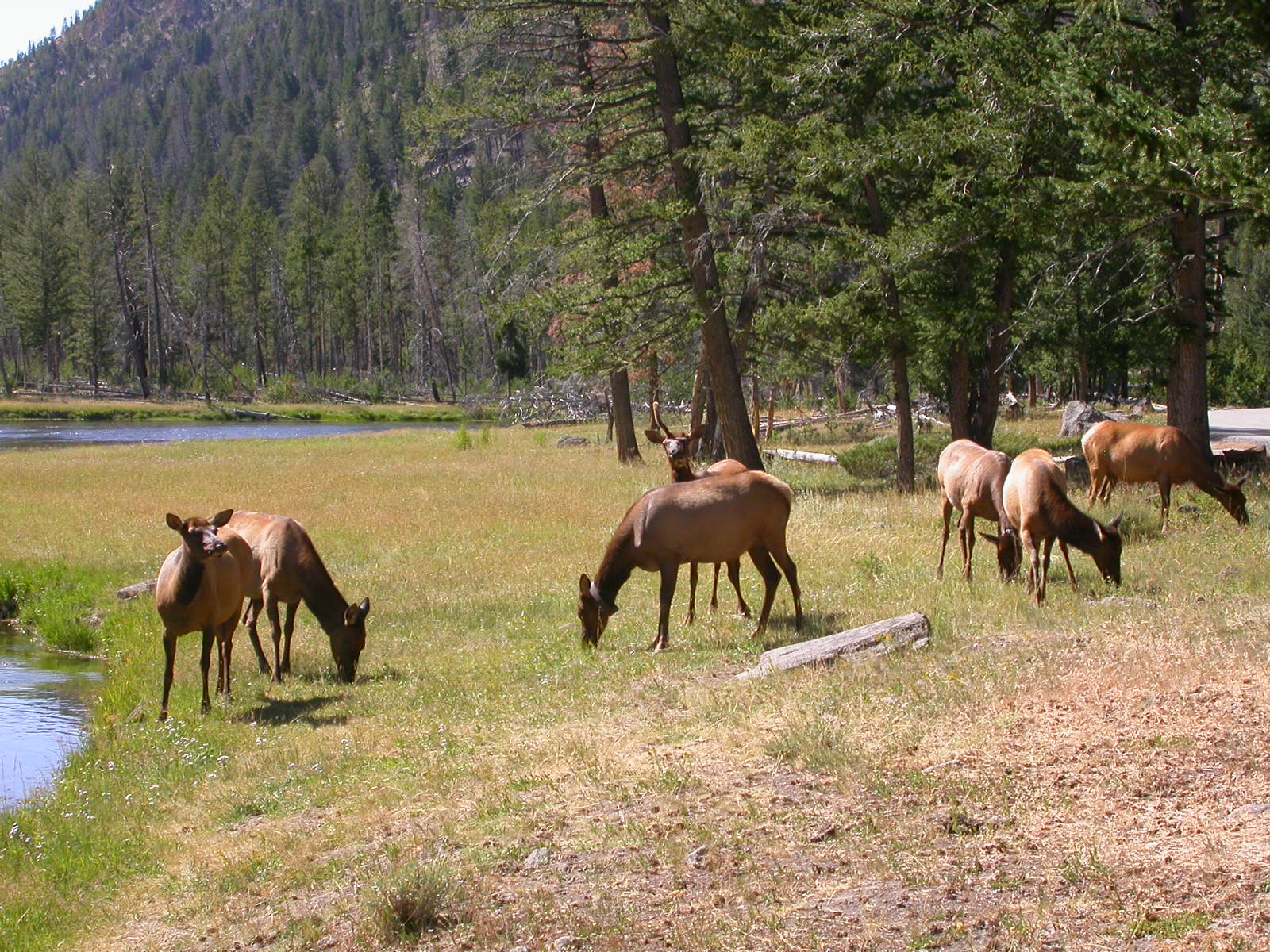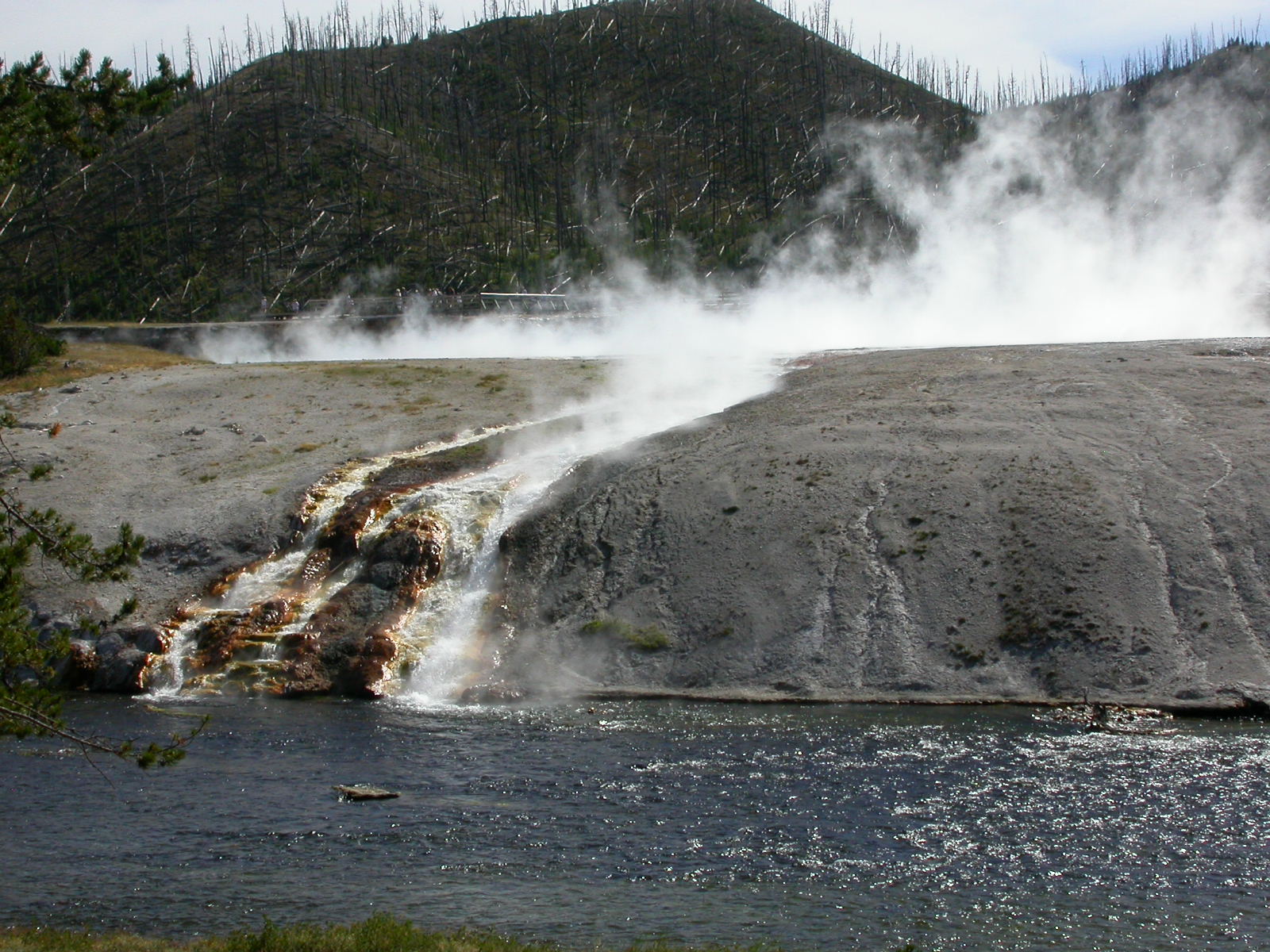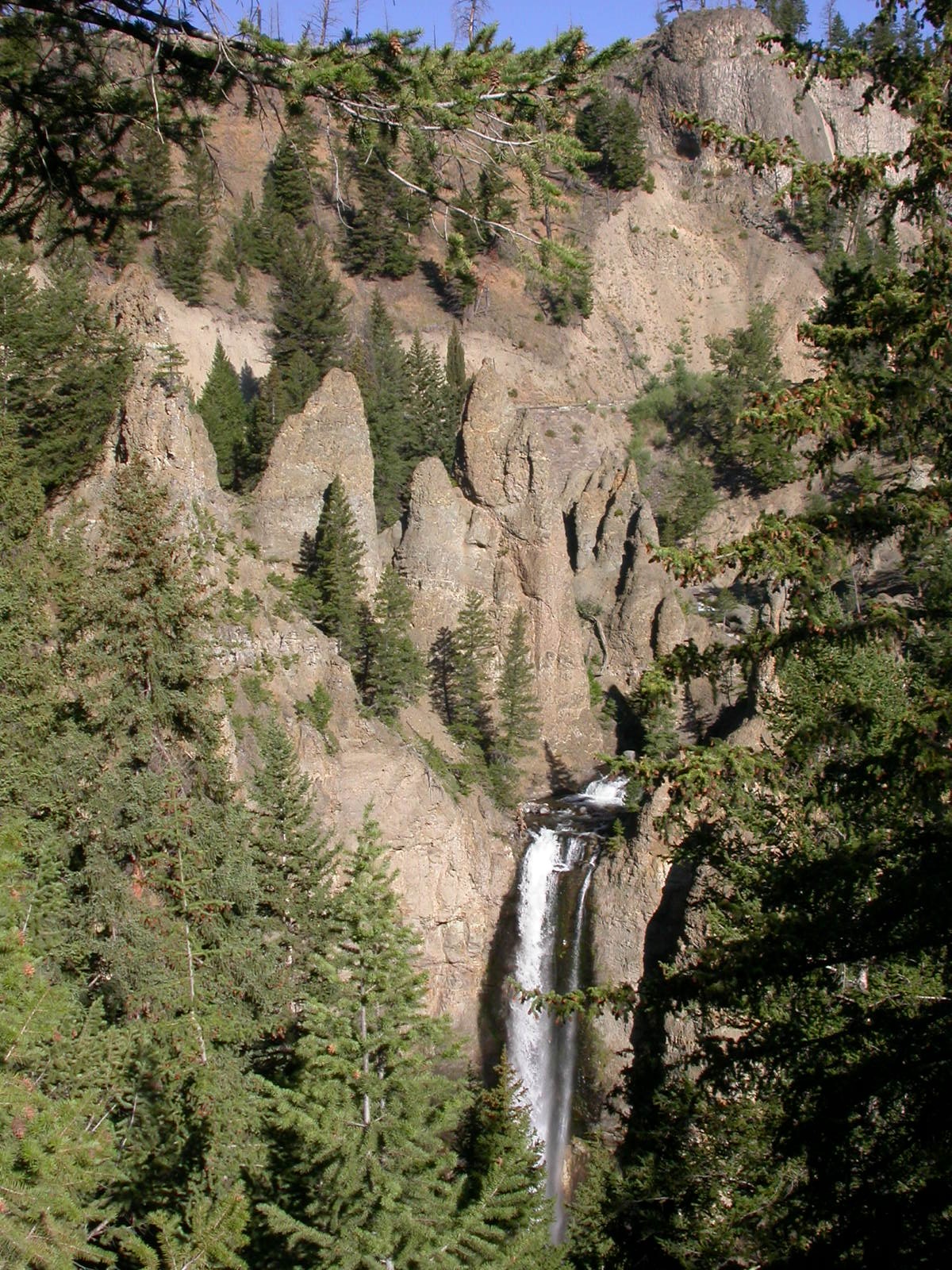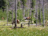 Hier im Yellowstone Nationalpark war Natur pur angesagt. Auf der grossen Rundfahrt (ca. 220 km) werden dem Besucher unvergessliche Bilder geboten. Wilde Tiere wie Bisons, Hirsche, Bären, etc. über die heissen vulkanischen Quellen mit den farbenprächtigen Steinablagerungen bis zum aktiven Old Faithful Geisyr. Dieser schiesst im Stundenrhytmus seine Fontäne in die Höhe, wobei er es dabei recht spannend macht. Das ganze Spektakel dauert ca. eine viertel stunde und jedesmal wenn er ein bisschen 'hustet', meint der Zuschauer es geht los und schiesst Foto um Foto, bis er sich nach zahlreichen 'Fehlalarmen' endlich in die Höhe ergiesst.