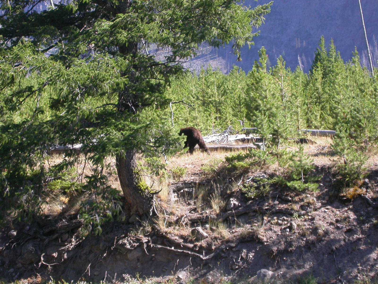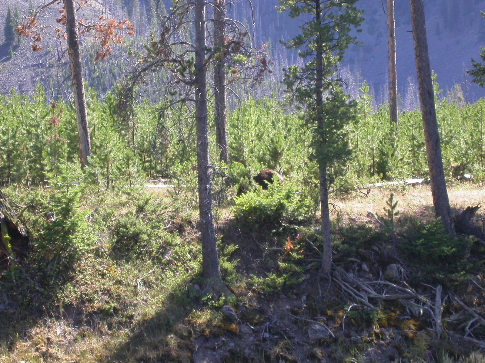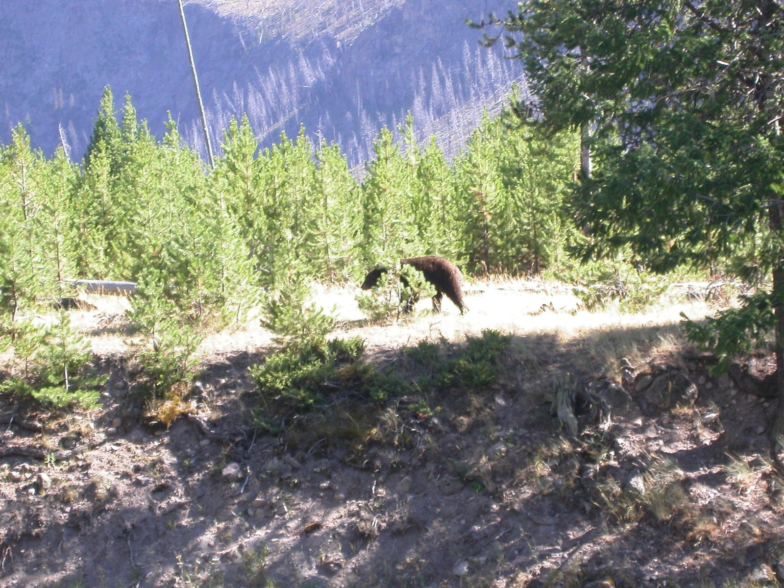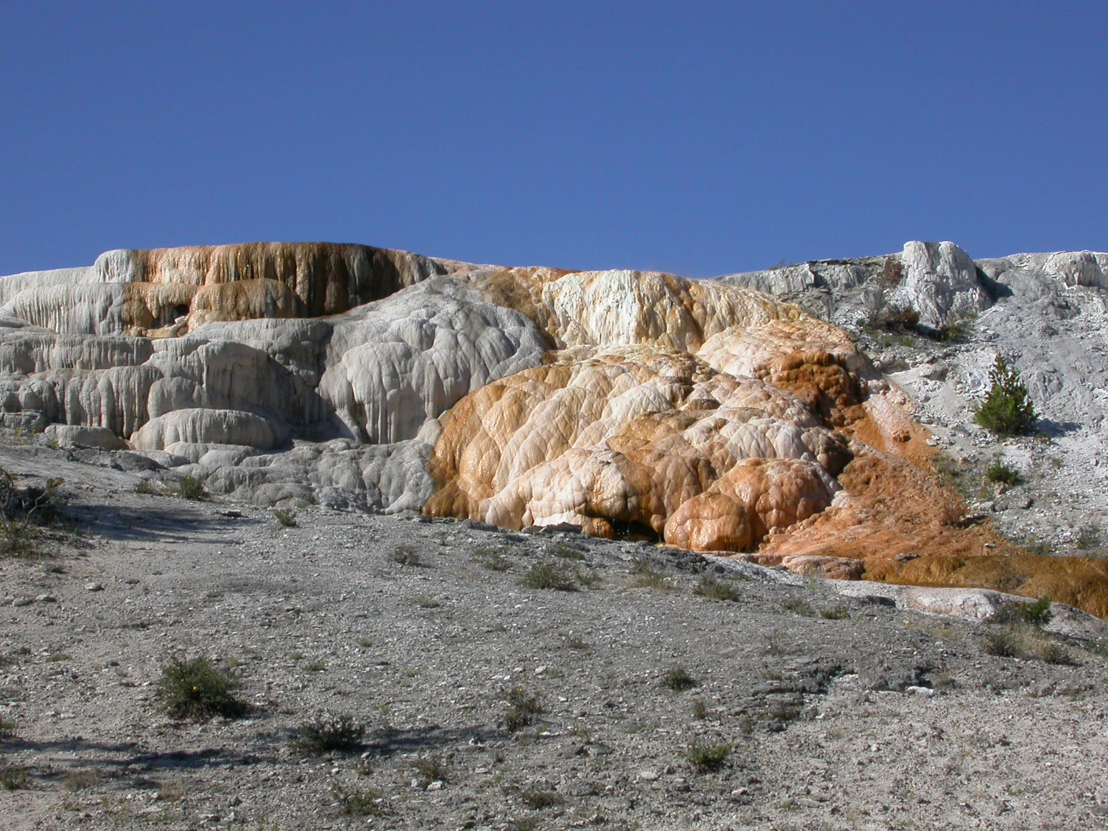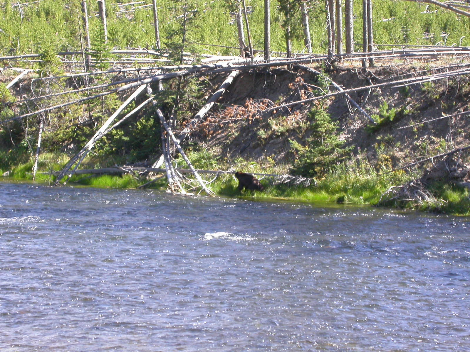 Hier im Yellowstone Nationalpark war Natur pur angesagt. Auf der grossen Rundfahrt (ca. 220 km) werden dem Besucher unvergessliche Bilder geboten. Wilde Tiere wie Bisons, Hirsche, Bären, etc. über die heissen vulkanischen Quellen mit den farbenprächtigen Steinablagerungen bis zum aktiven Old Faithful Geisyr. Dieser schiesst im Stundenrhytmus seine Fontäne in die Höhe, wobei er es dabei recht spannend macht. Das ganze Spektakel dauert ca. eine viertel stunde und jedesmal wenn er ein bisschen 'hustet', meint der Zuschauer es geht los und schiesst Foto um Foto, bis er sich nach zahlreichen 'Fehlalarmen' endlich in die Höhe ergiesst.