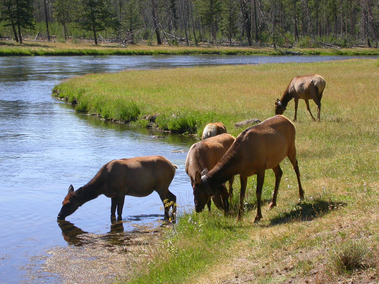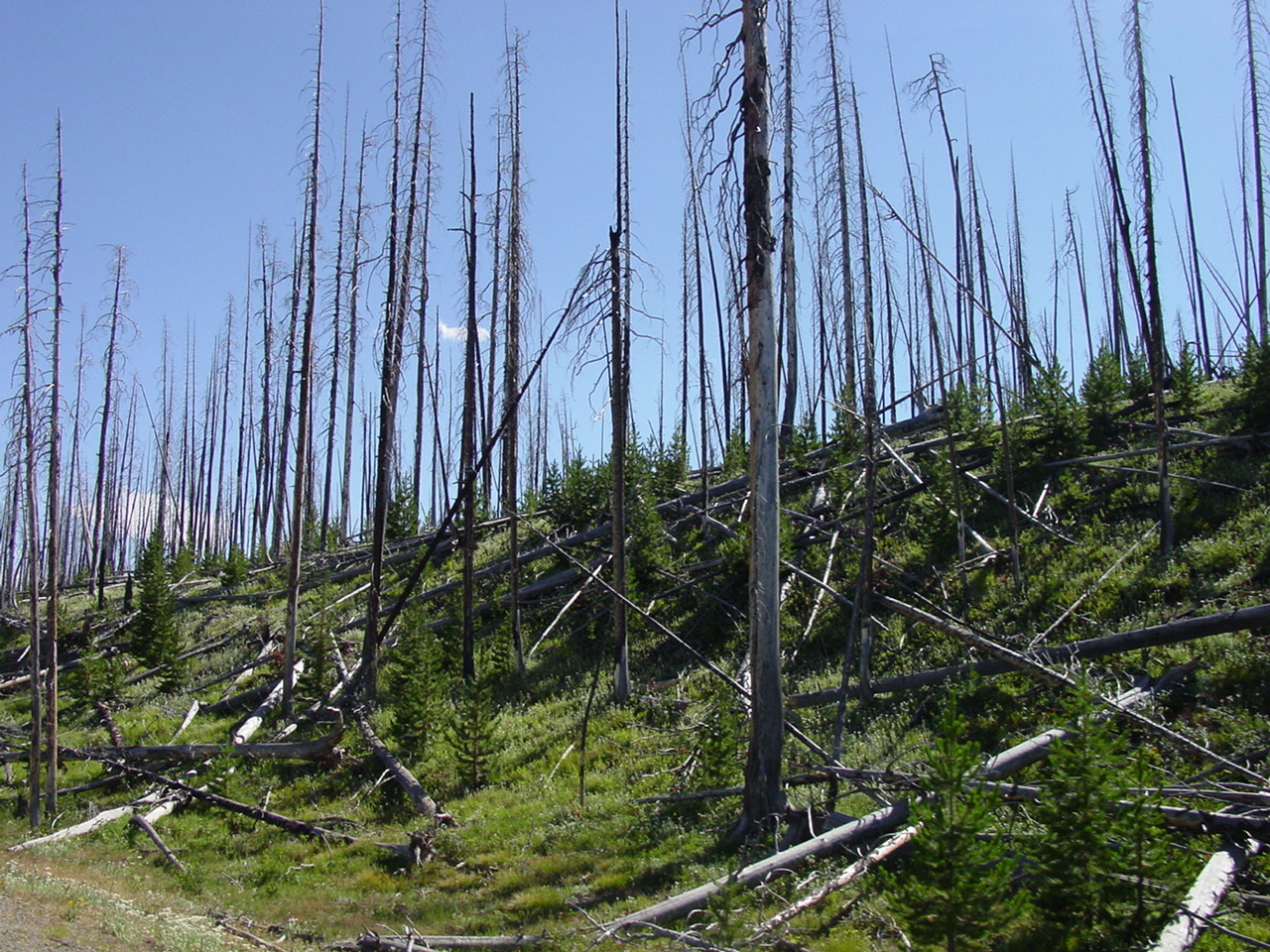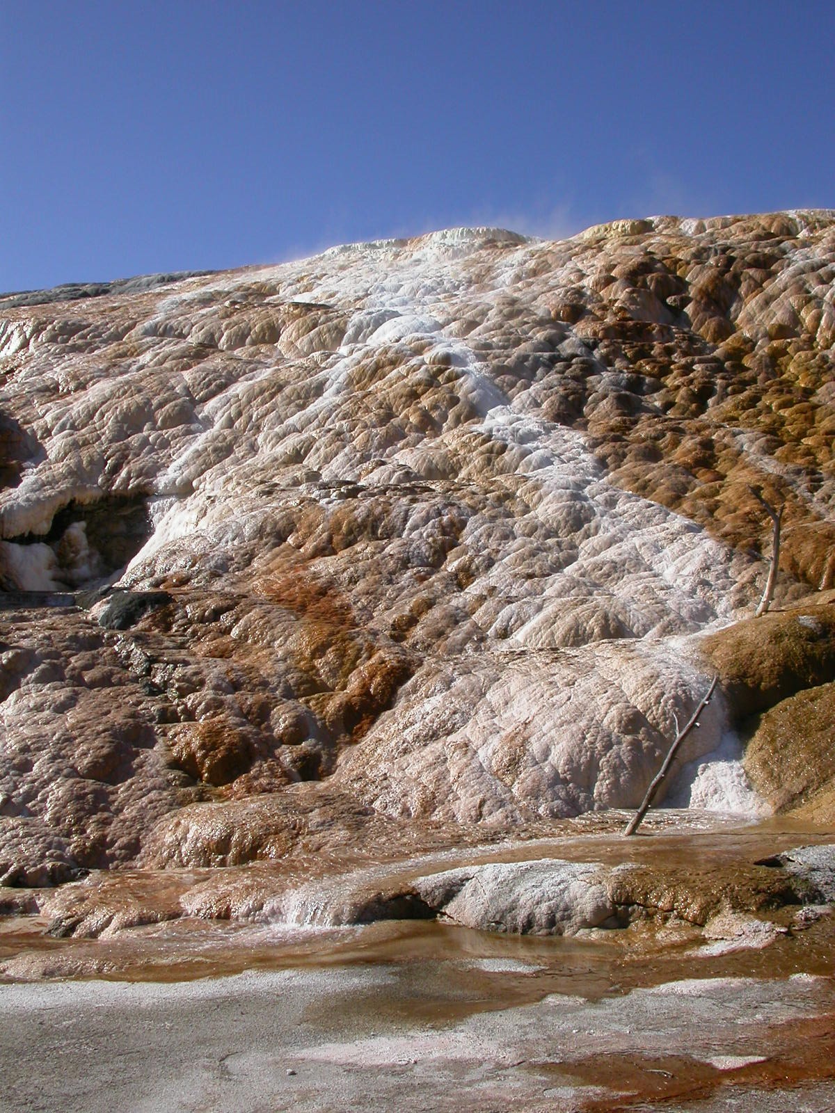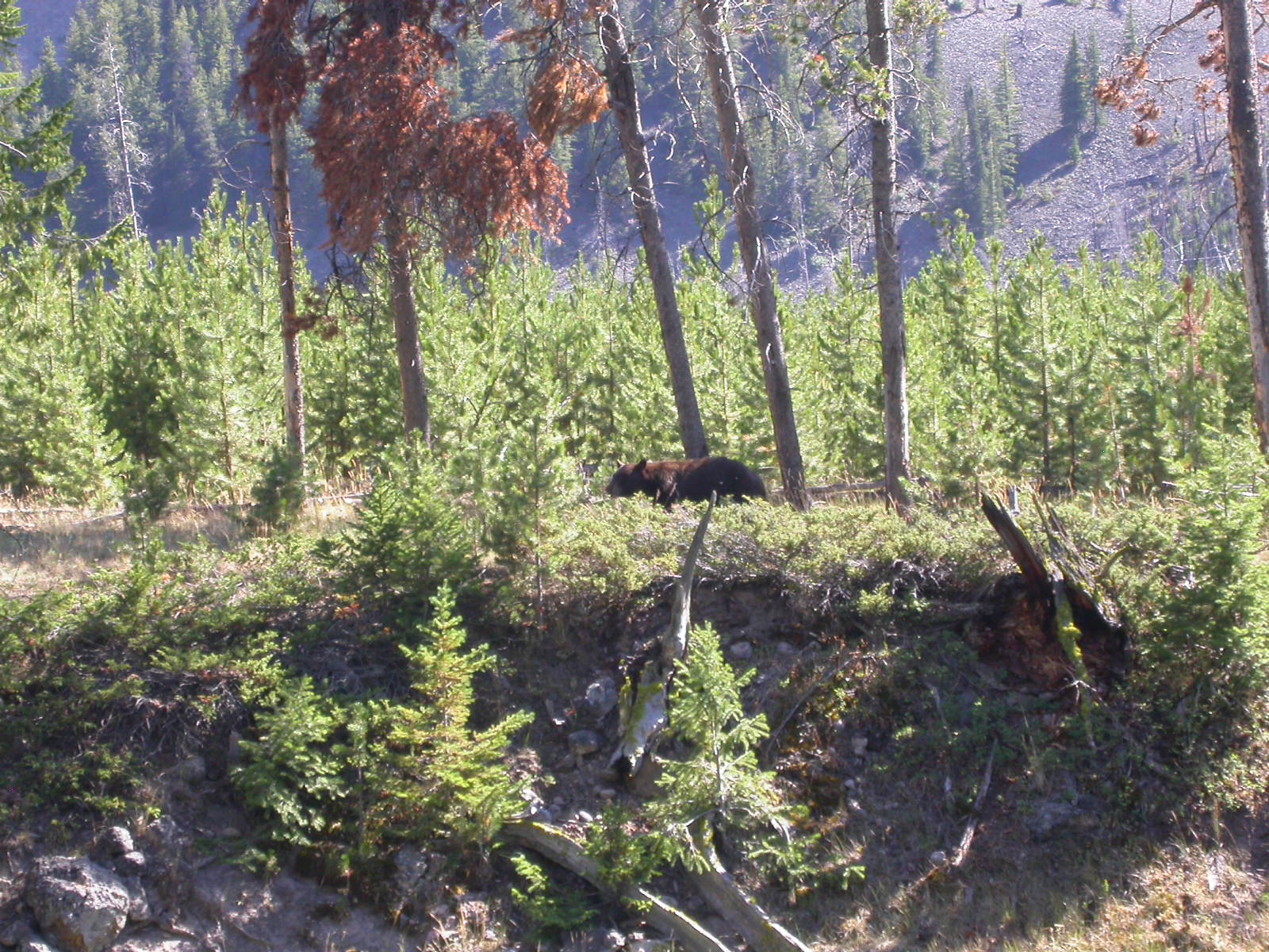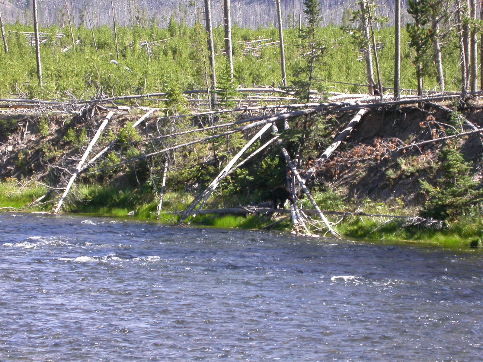 Hier im Yellowstone Nationalpark war Natur pur angesagt. Auf der grossen Rundfahrt (ca. 220 km) werden dem Besucher unvergessliche Bilder geboten. Wilde Tiere wie Bisons, Hirsche, Bären, etc. über die heissen vulkanischen Quellen mit den farbenprächtigen Steinablagerungen bis zum aktiven Old Faithful Geisyr. Dieser schiesst im Stundenrhytmus seine Fontäne in die Höhe, wobei er es dabei recht spannend macht. Das ganze Spektakel dauert ca. eine viertel stunde und jedesmal wenn er ein bisschen 'hustet', meint der Zuschauer es geht los und schiesst Foto um Foto, bis er sich nach zahlreichen 'Fehlalarmen' endlich in die Höhe ergiesst.