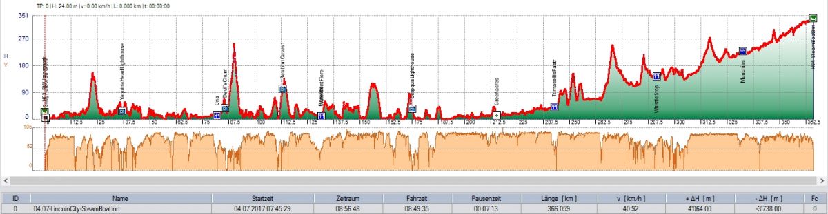 Bei der Winchester Bucht und dem Umpqua Leuchtturm verlassen wir den 1er ins Landesinnere und erreichen das Steamboat Inn gegen Abend.