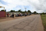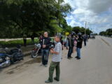 In einem grösseren Dorf war Markt und die Strasse mehr als die Hälfte durch die Marktstände belegt. Mit den Bikes fanden wir noch genügend Platz um durch zu kommen, der Begleitbus musste aber infolge Platzmangels eine andere Route durch das Dorf suchen. Manchen von uns hat es hier gelüstet an zu halten und sich auf dem Markt um zu sehen, doch leider wollte unser Tourguide wohl so schnell wie möglich wieder aus dem Dorf hinaus, um dann auf dem Vorplatz einer alten Fabrik in der Hitze auf den Bus zu warten.