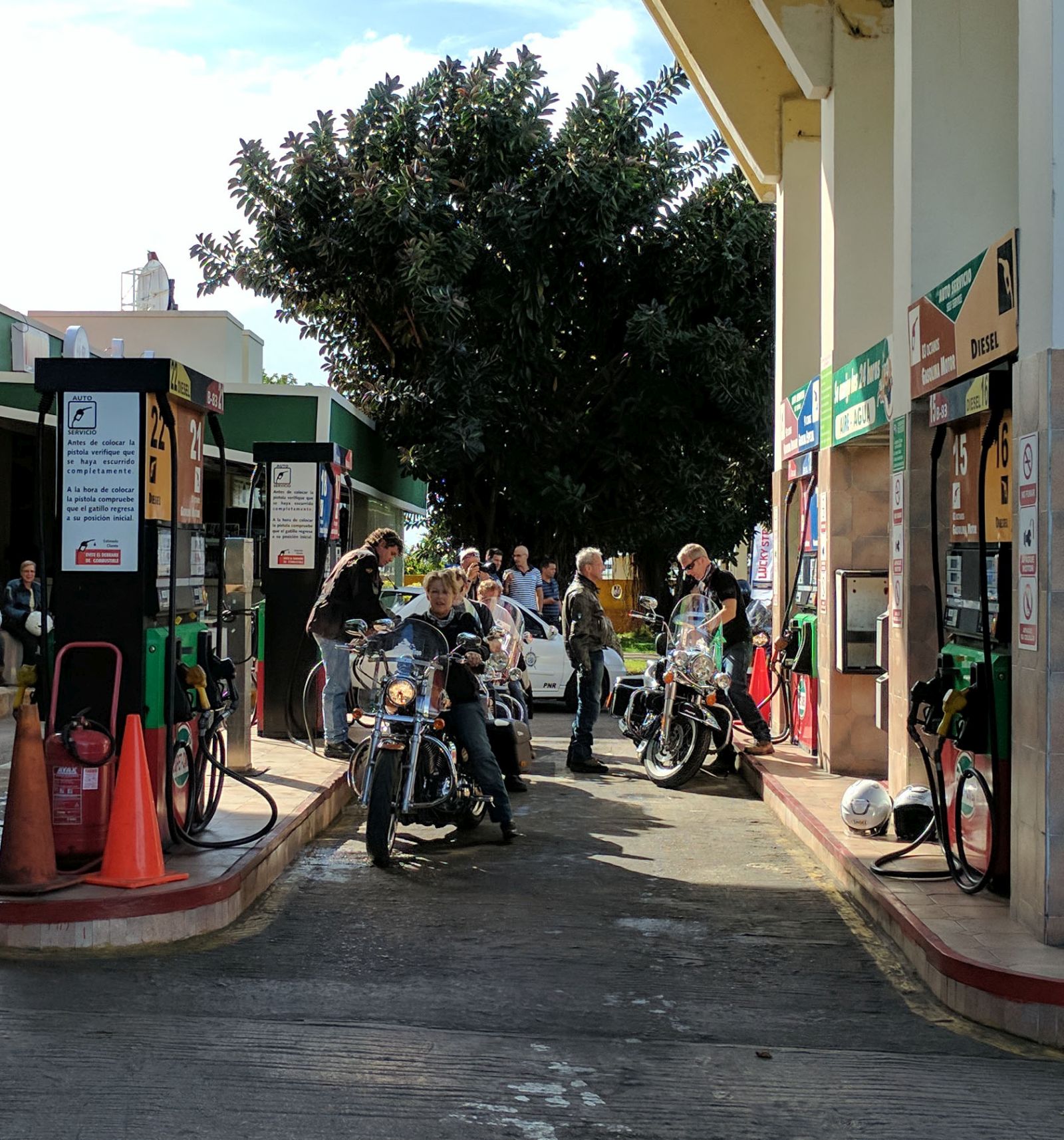 Nach der morgentlichen Orientierung fuhren wir als Erstes zum Tanken. Hanival organisierte sofort zwei Zapfsäulen und die 19 Bike waren recht flott aufgetankt. Es hätte eigentlich los gehen können, aber wir warteten und warteten - bis wir vernahmen, dass jede einzelne Note von der Kassiererin aufgeschrieben werden musste, und das dauerte.