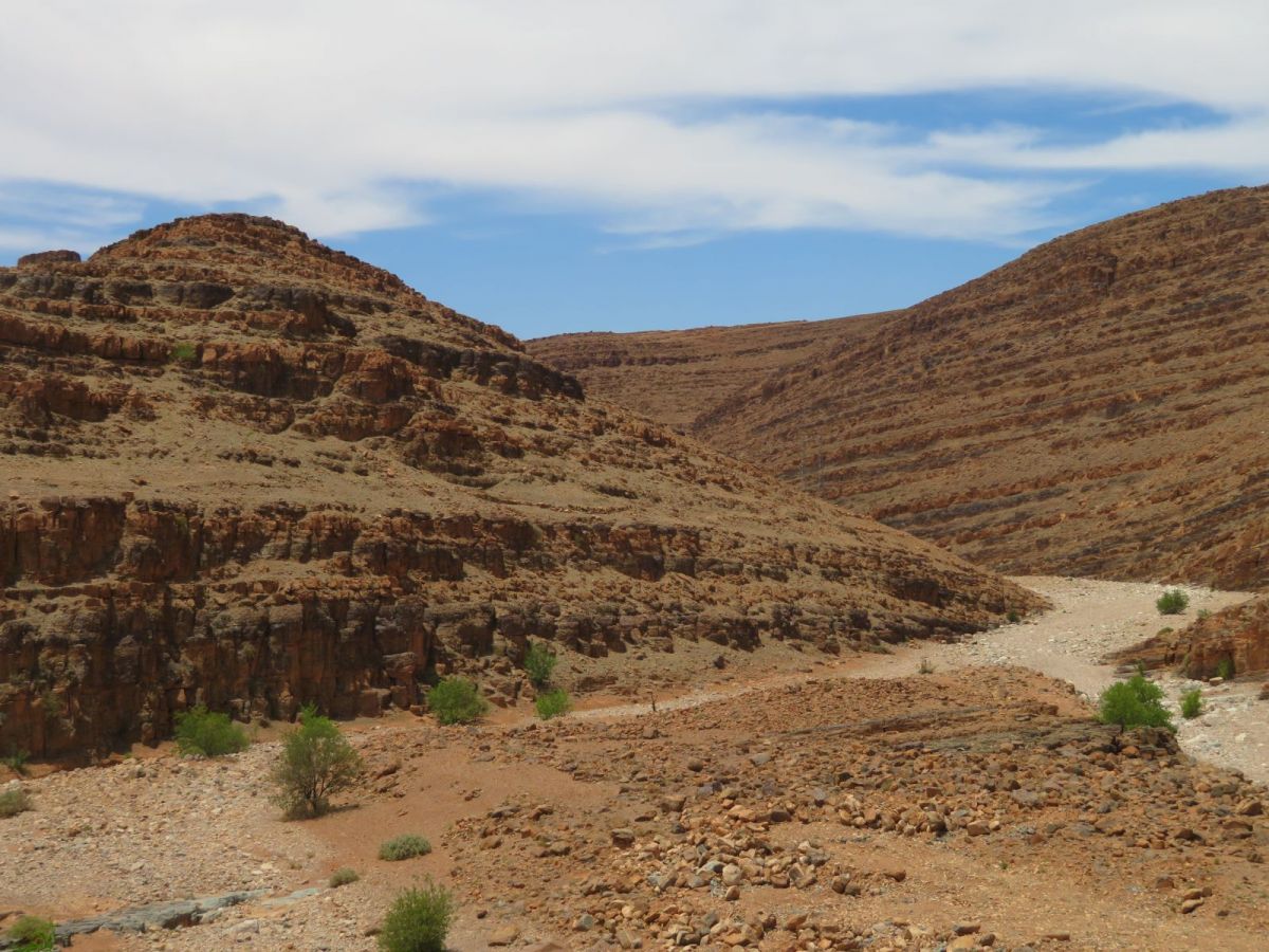 Weiter ging die Fahrt durch das schöne Akkatal gesäumt von pitoresk geformten Bergen nach Tata. Von hier aus begann dann die Wüste und auf vorwiegend gerader Strecke erreichten wir die einsam gelegene Kasbah Tissint.