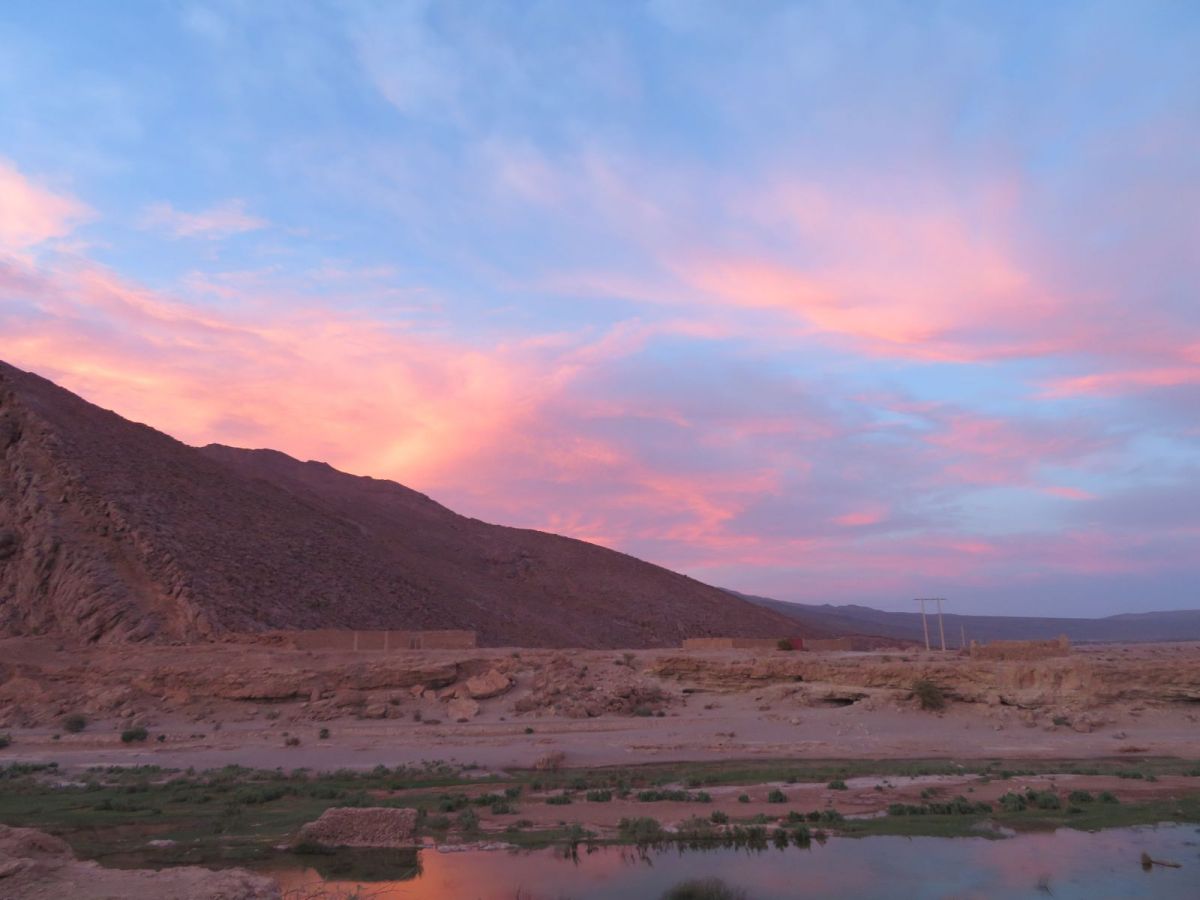 Nach einem kühlen Happy Landing kühlten wir uns auch noch im schönen Swimmingpool ab. Mangels Alternativen blieben wir im Kasbah und assen da bei herrlichem Sonnenuntergang das Nachtessen und verweilten noch lange am ruhigen Pool.
