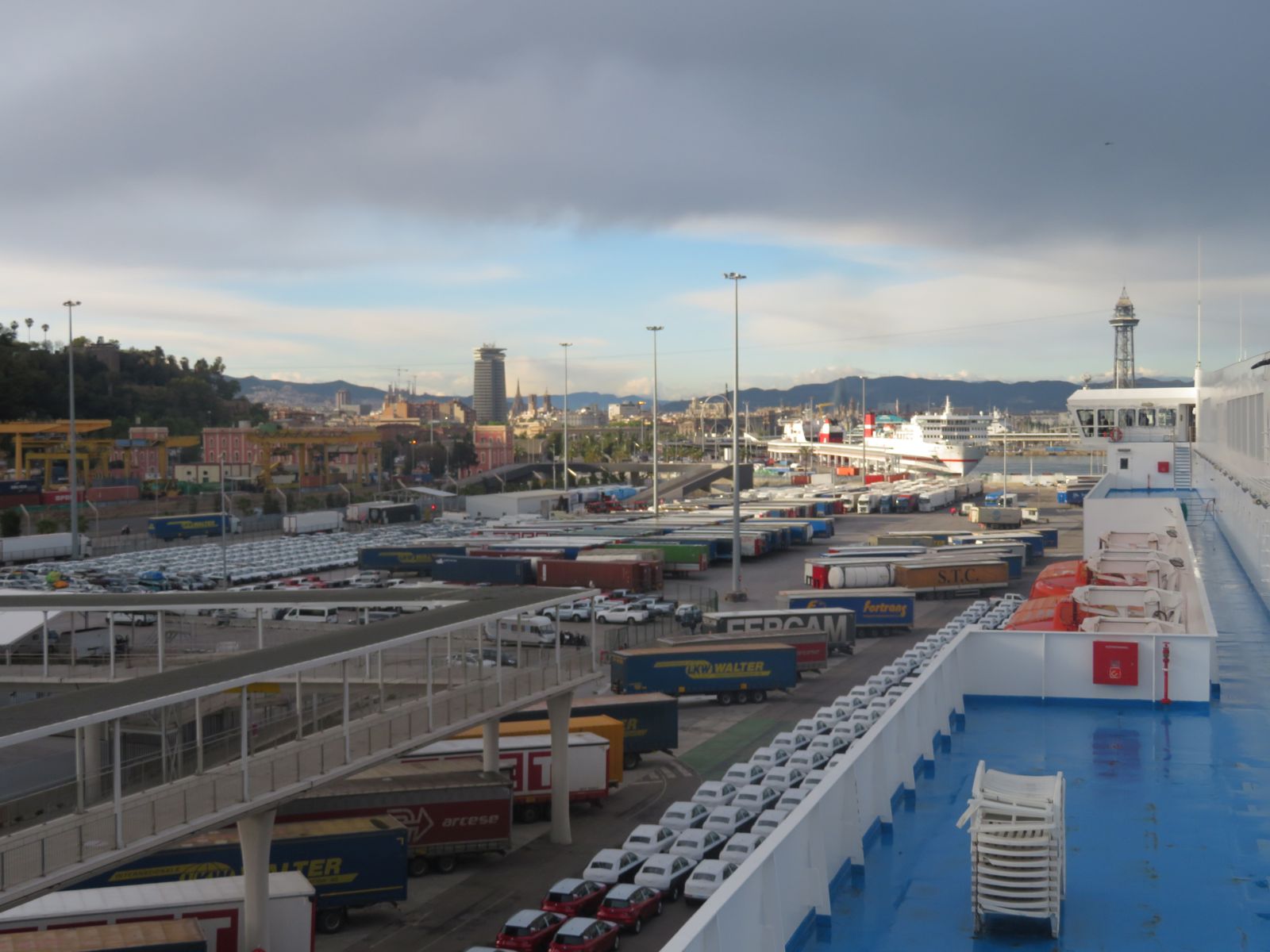 Die Fahrt nach Tanger Med wurde durch einen Halt in Barcelona unterbrochen und schliesslich kamen wir in Marokko um Mitternacht an.