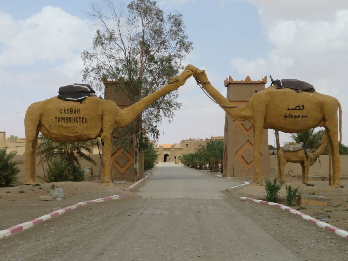 Das Riad Mamouche liegt am Rande dieser Siedlung direkt vor der grossen Düne, wo die Kamele auf Kundschaft warten. In dieser Siedlung machten sich einmal mehr die andere Seite des Ramadan bemerkbar, denn es gab ausserhalb des Riads nichts zu Essen oder Trinken. Auch im Riad selber war es recht schwierig ausserhalb gewisser Zeiten etwas zum Trinken zu erhalten. Schlussendlich erhielten wir aber doch noch unsere Verpflegung.