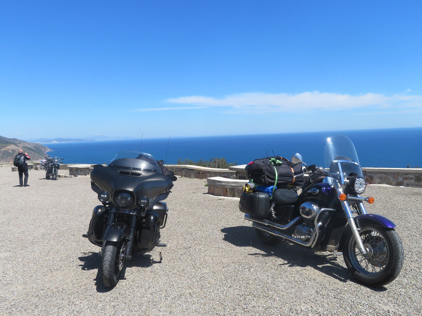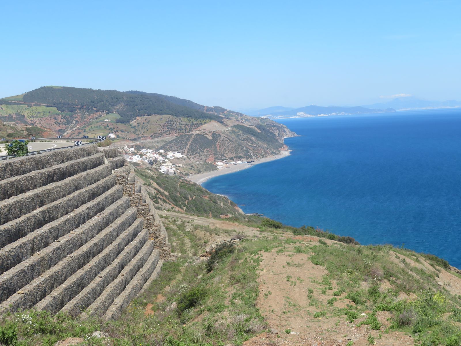 Da die Nacht doch recht kurz war und wir was von Chefchauen sehen wollten entschlossen wir uns zu der kürzeren Route. Diese führte uns erstmals auf einer Nebenstrasse durch die Hügel nach Tetouan. Hier erreichten wir das Mittelmeer wo die neu gebaute Küstenstrasse zu zügigem Kurvenfahren einlud.