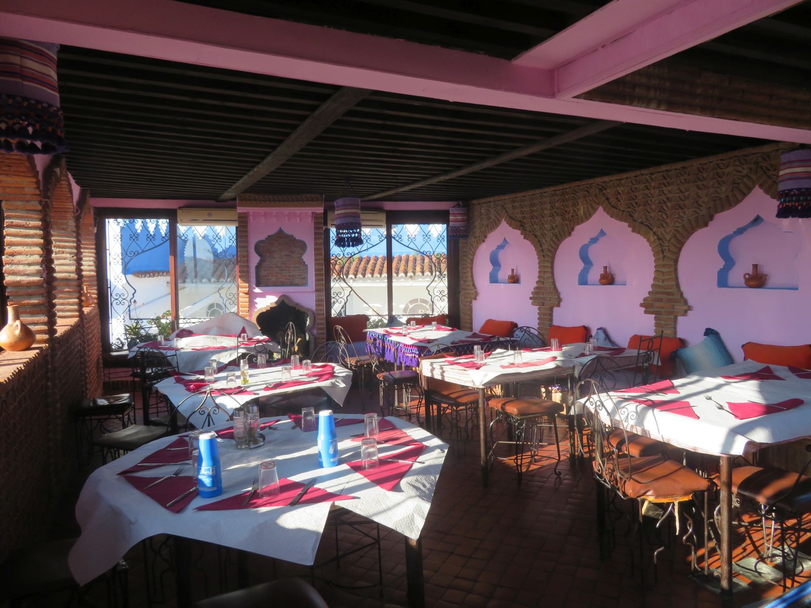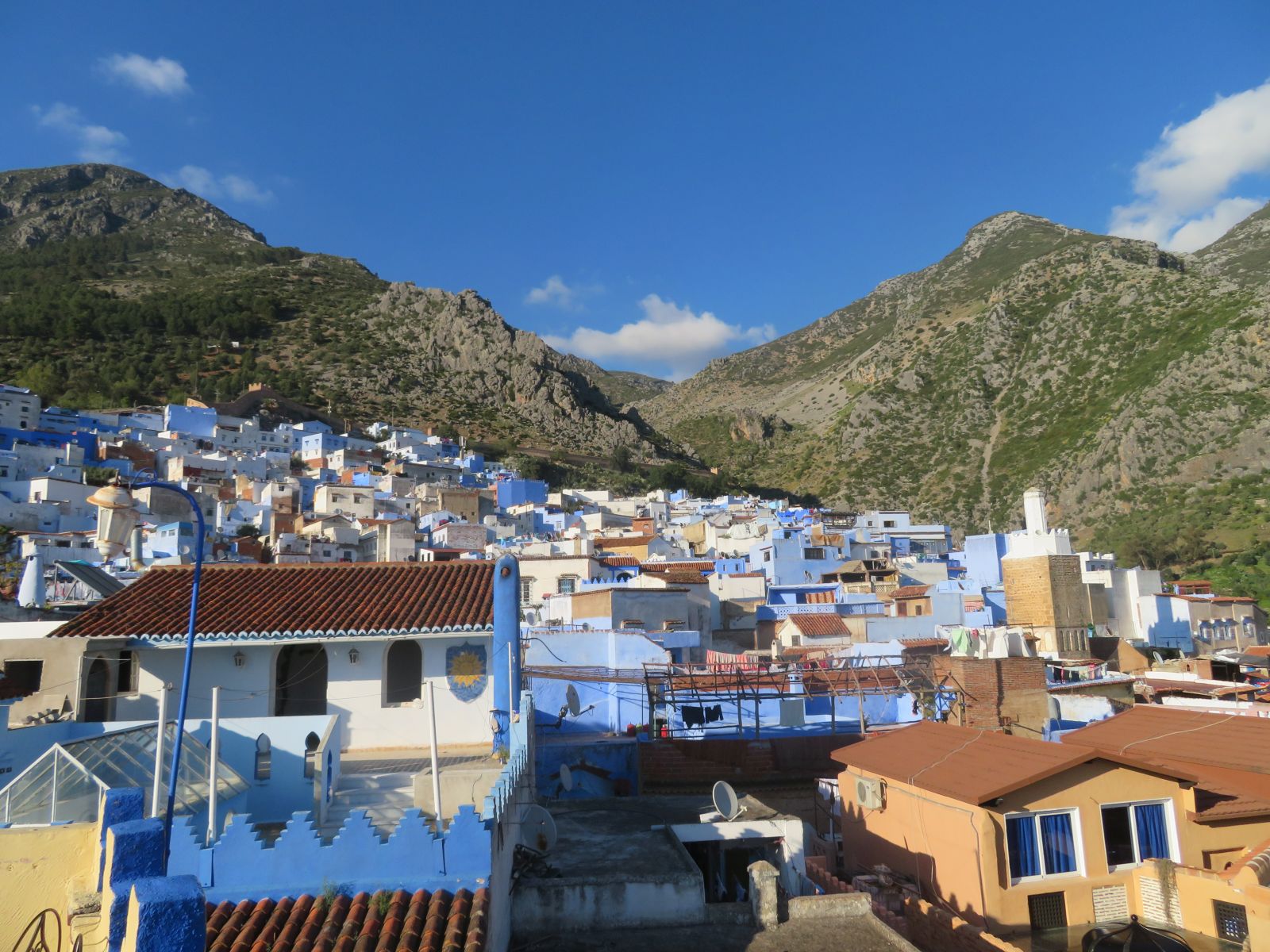 Schon bald erreichten wir Qued Laou, hier bogen wir ins Riffgebirge ab und am frühen Nachmittag kamen wir in Chefchauen an. Unsere Unterkunft, der Parador von Chefchauen, liegt optimal gelegen im Zentrum nahe des Marktplatzes. Nach dem Zimmerbezug schlenderten wir durch die Gassen und das Nachtessen genossen wir auf einer hoch über dem Platz gelegenen Terrasse des Restaurants ‘Casa Aladin’.